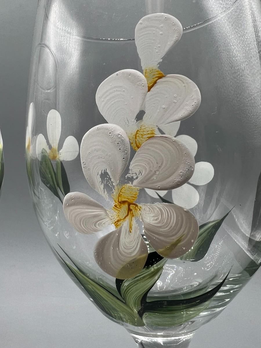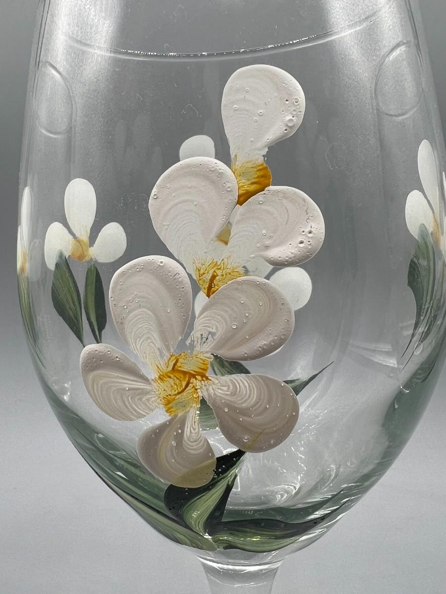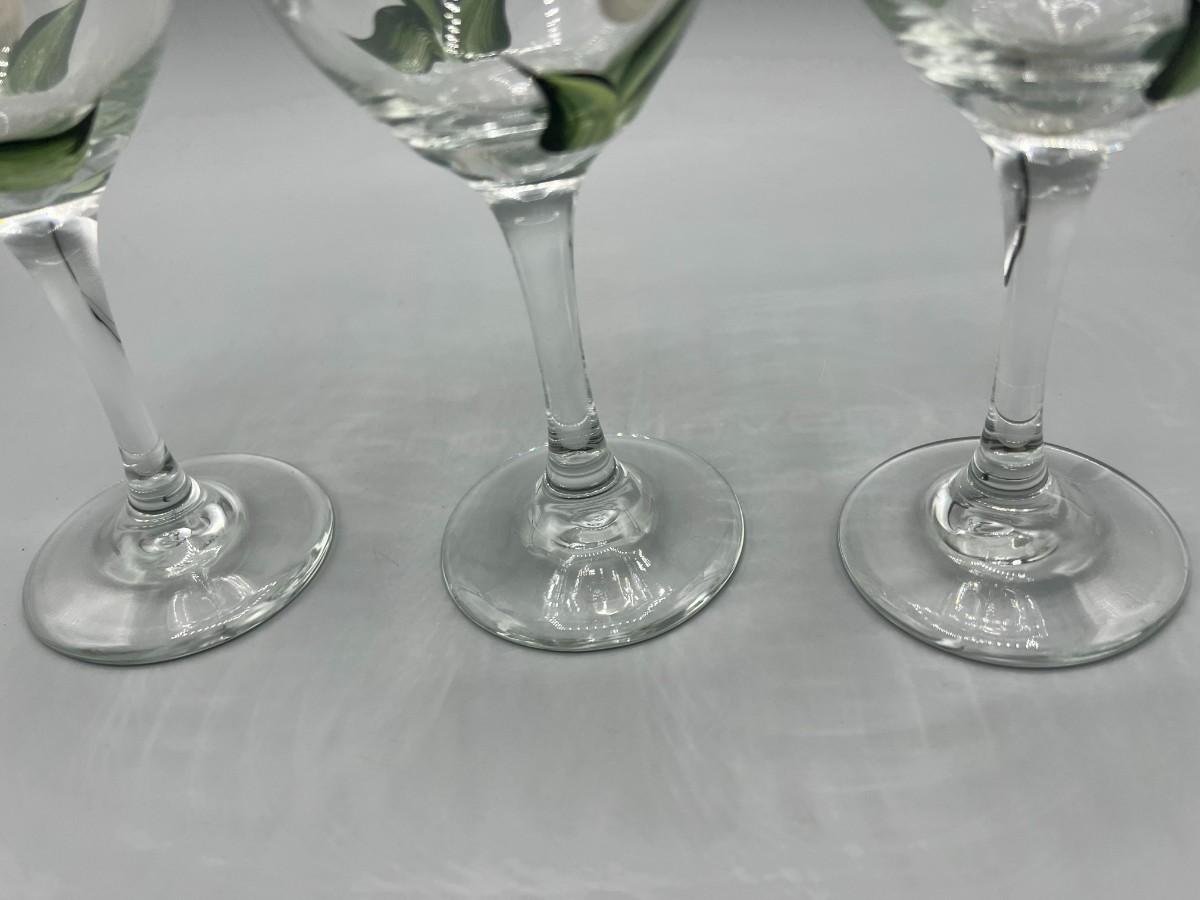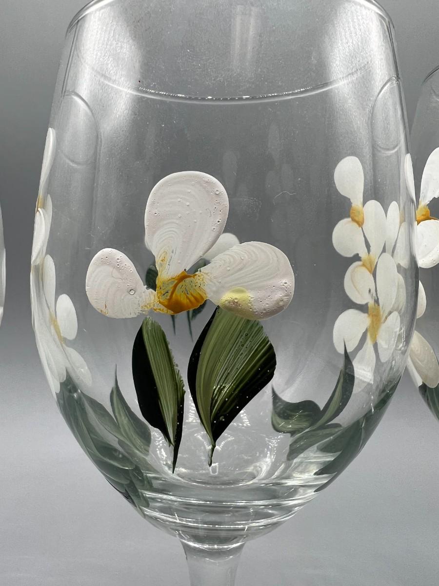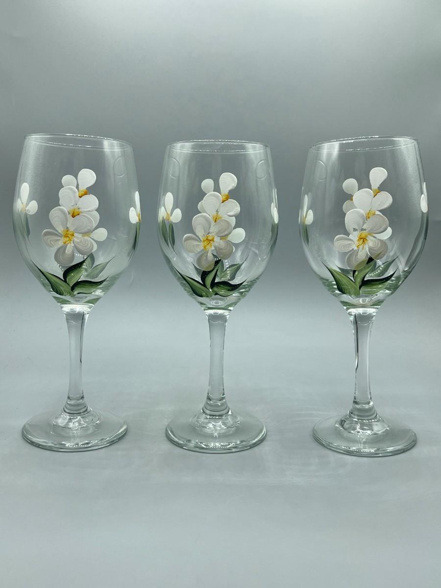 Set of Vintage Hand Painted White Daisy Flowers Stemmed Drinking Vino Wine Glasses