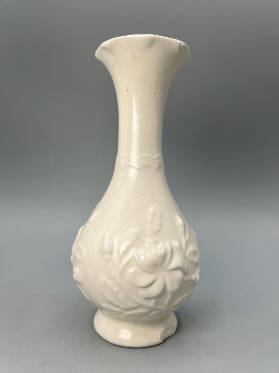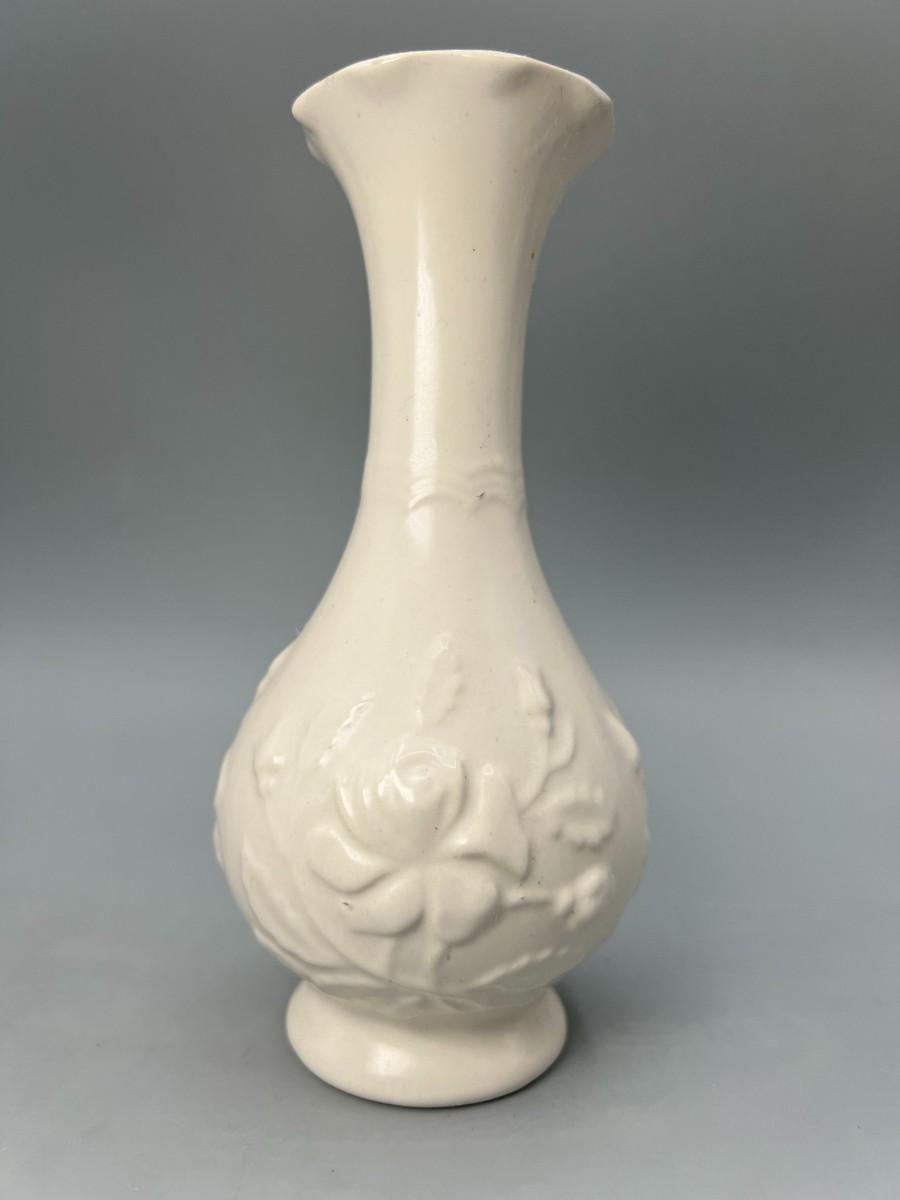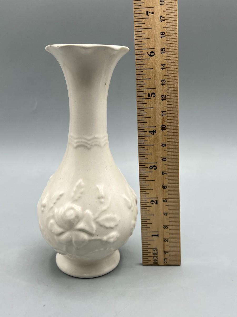 Small Retro Handmade Ceramic Pottery Off White Rose Flower Vase