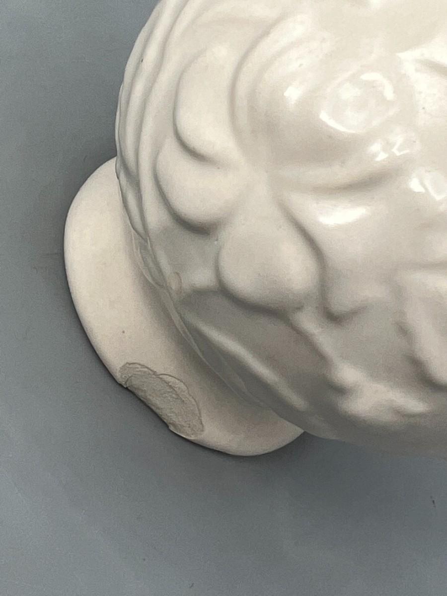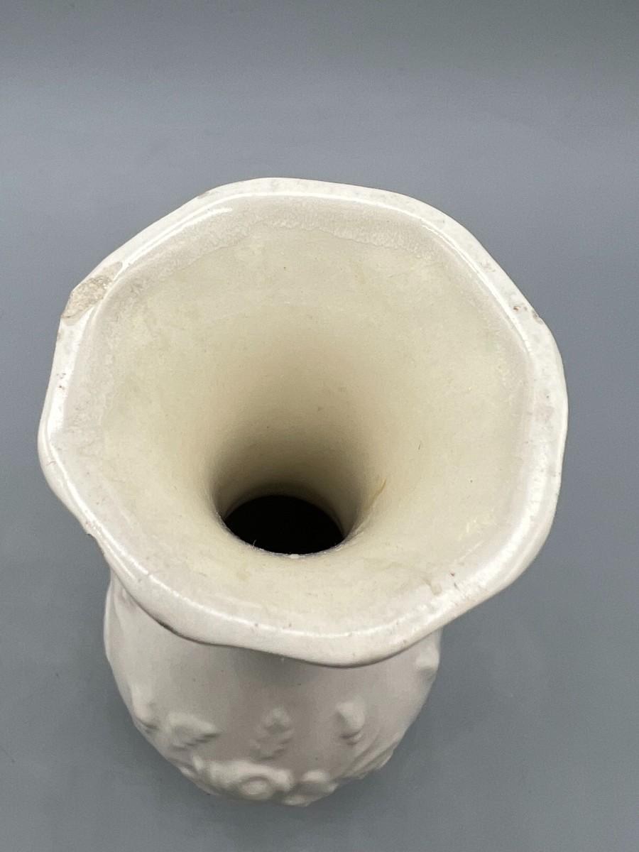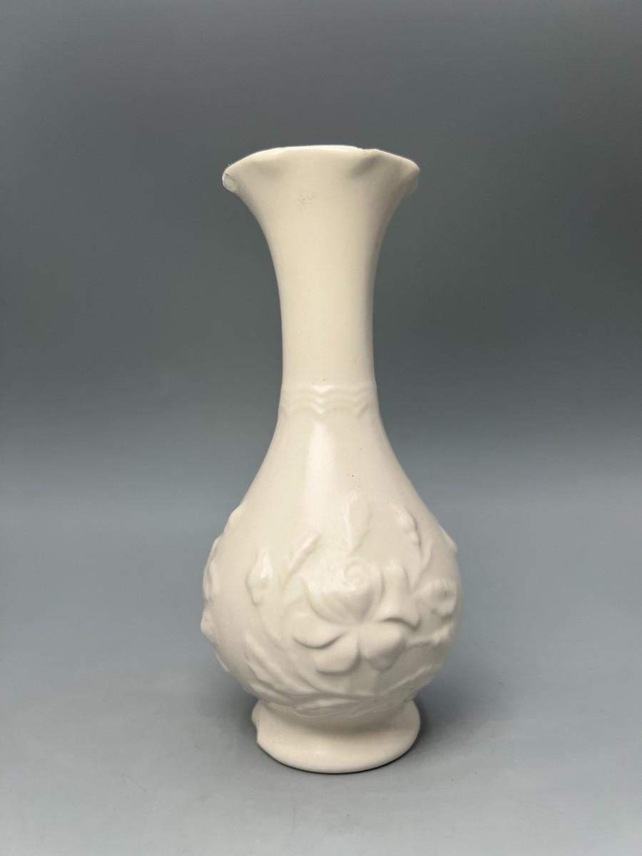 Small Retro Handmade Ceramic Pottery Off White Rose Flower Vase