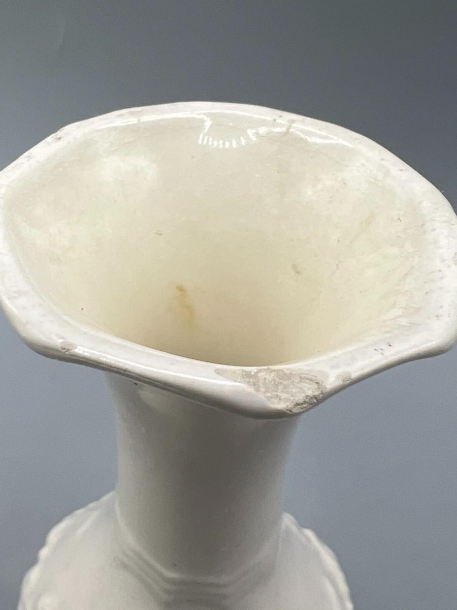 There are two light chips to the vase, but there is no significant damage and is in overall good collectible or displayable condition. Check pictures for more details and for siznig.