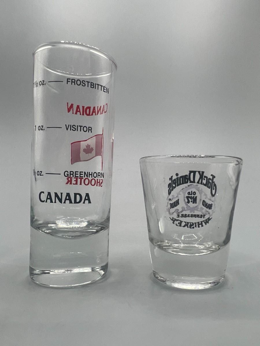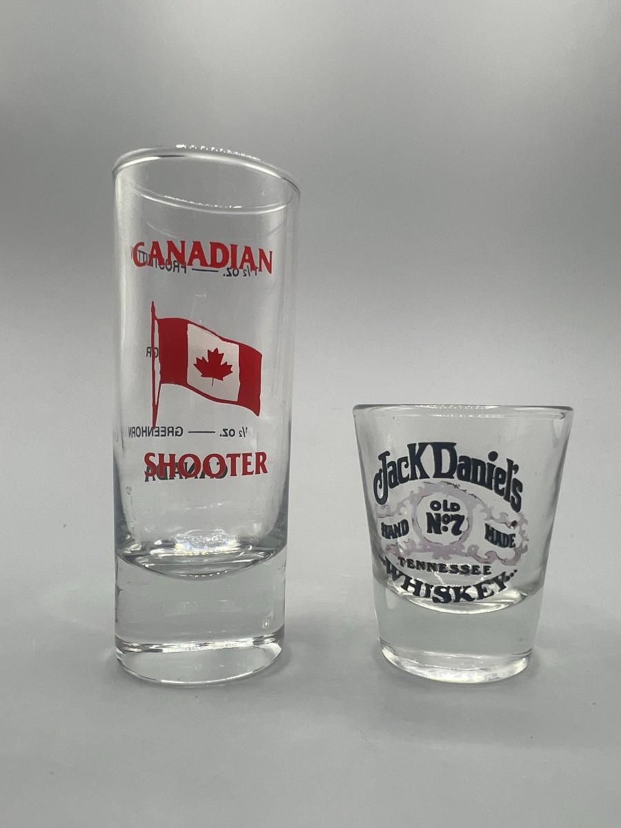 Short & Tall Glass Canadian Jack Daniels Liquor Shot Glasses