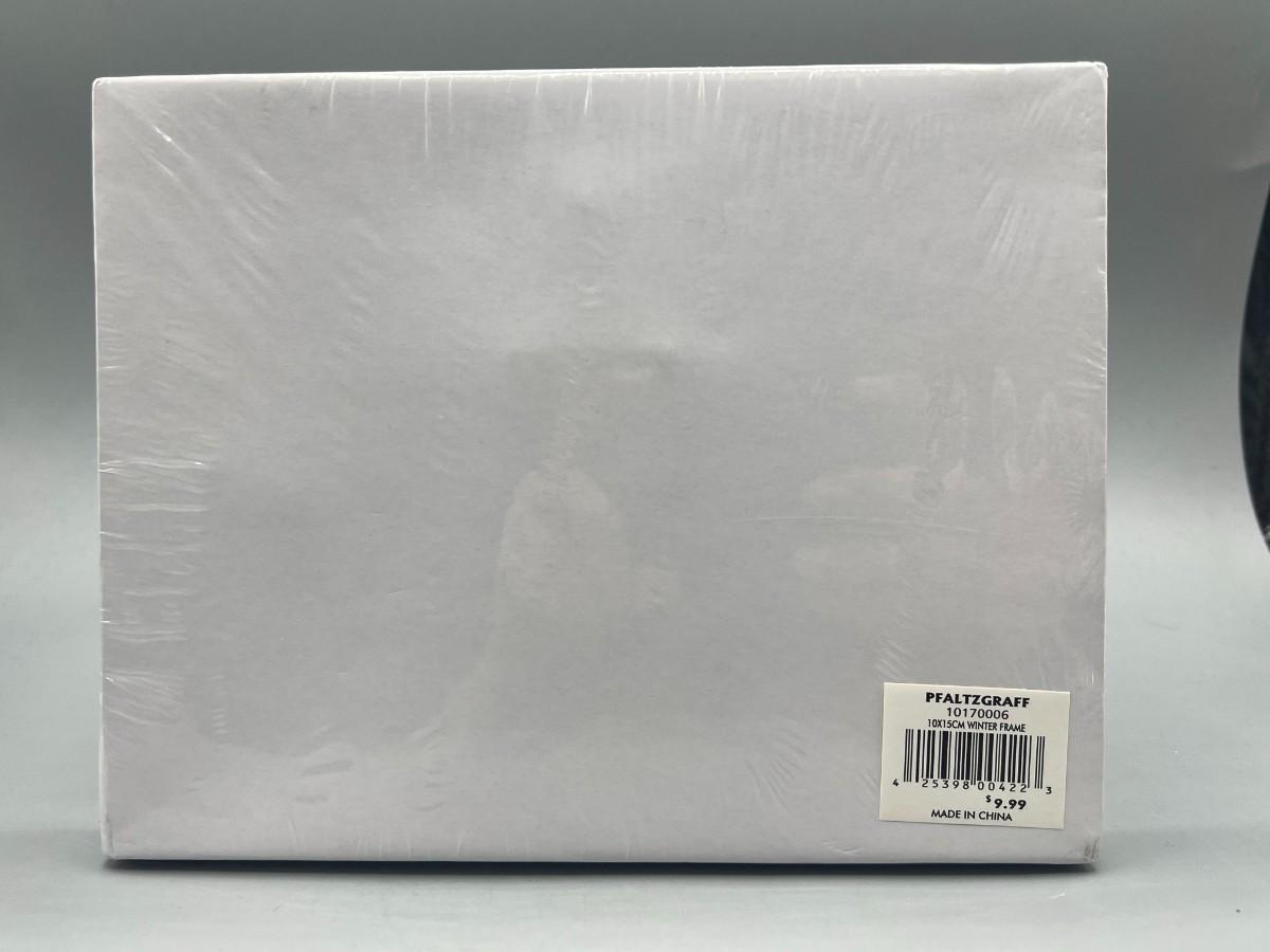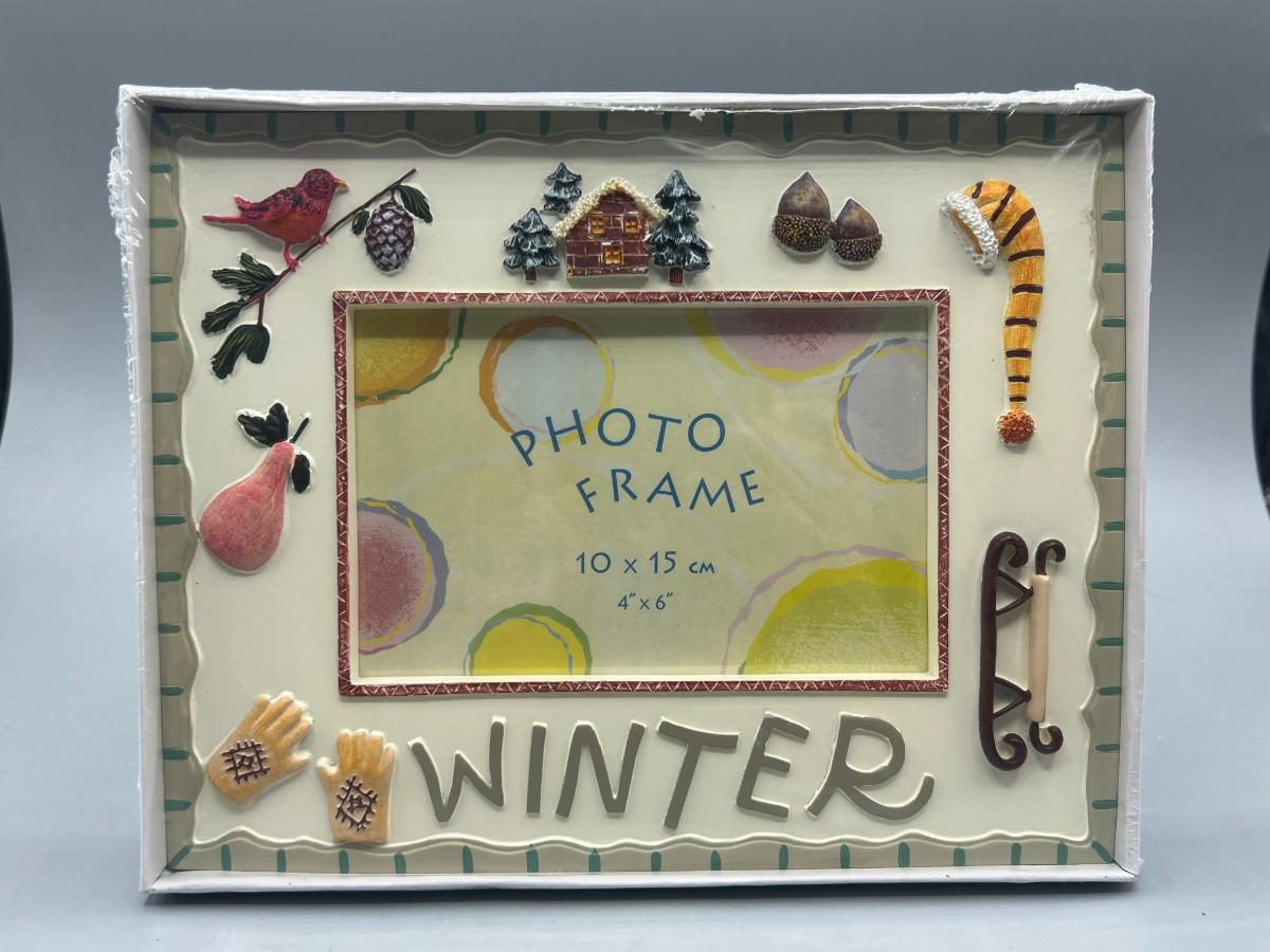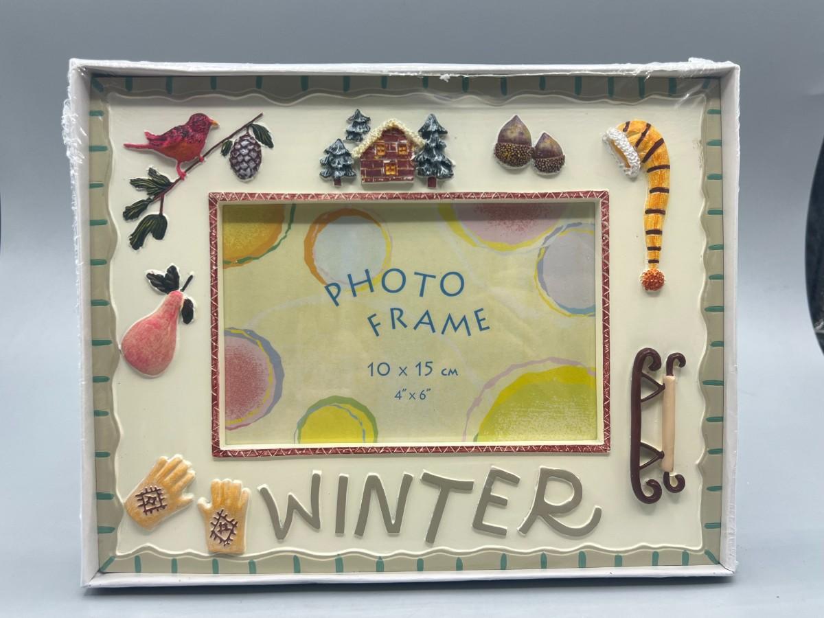 Pfaltzgraff Ceramic Winter Themed Novelty Photo Picture Frame. 4x6 photo holder. Good condition.
