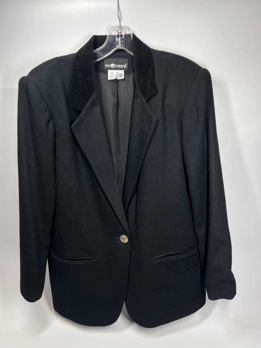 Ladies Womans Sag Harbor Black 100% Wool Blazer Coat Suit Business Jacket. Good previously worn condition. Size 12.