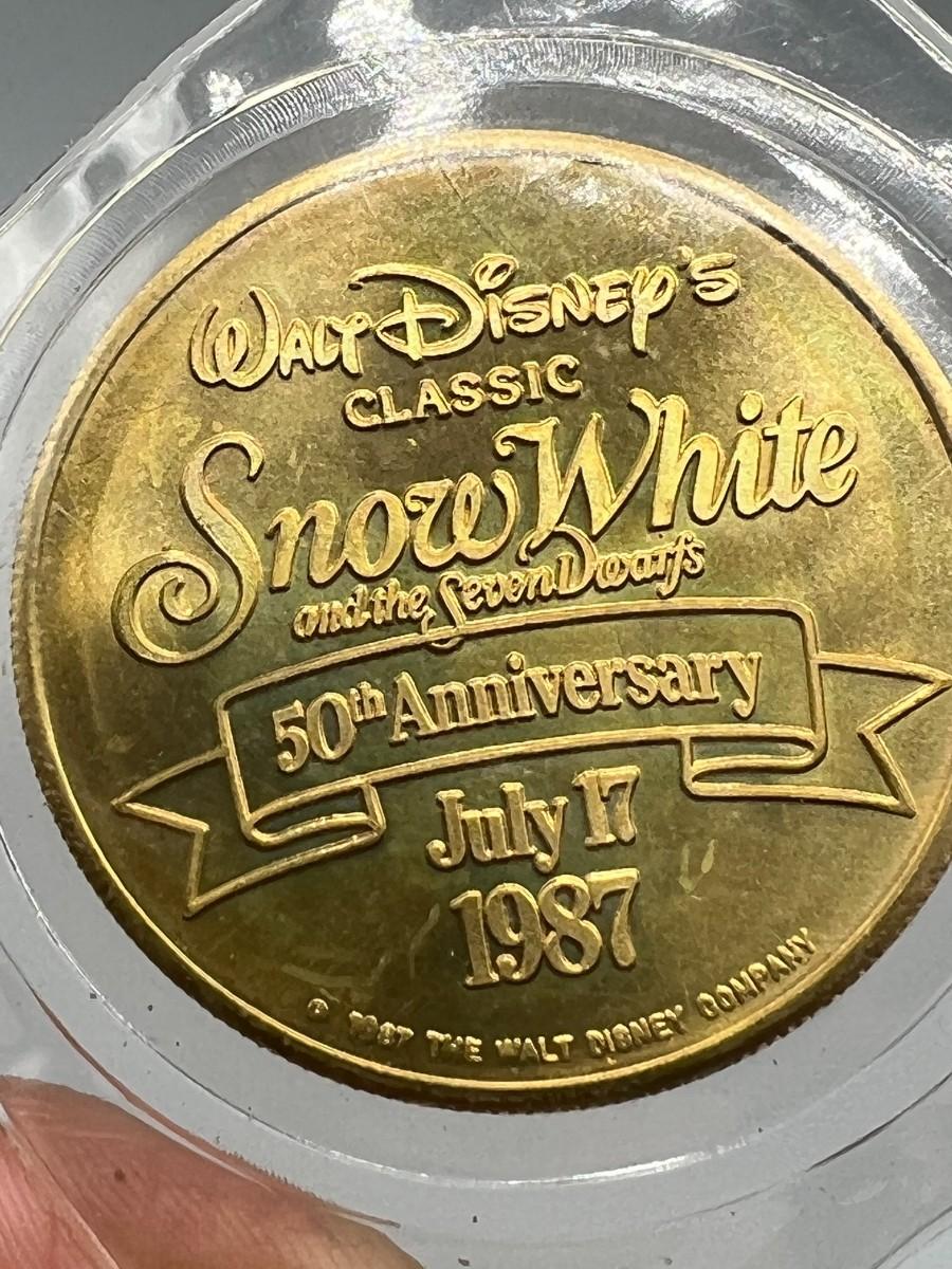 1987 Walt Disney's Snow White & the Seven Dwarfs 50th Anniversary Collector Coin Sealed Package. Coin is about 1.5" size.