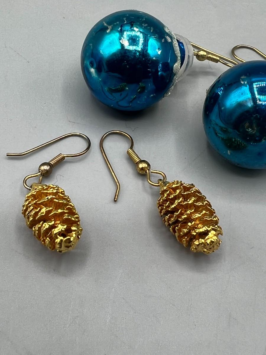 Two Pairs of Holiday Christmas Fashion Earrings Ornaments Pinecones. Good condition.