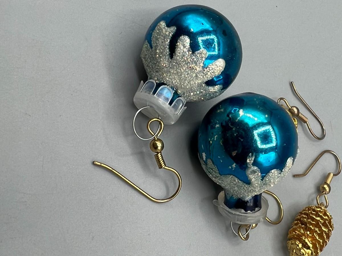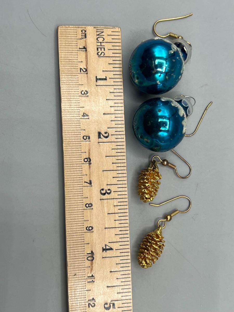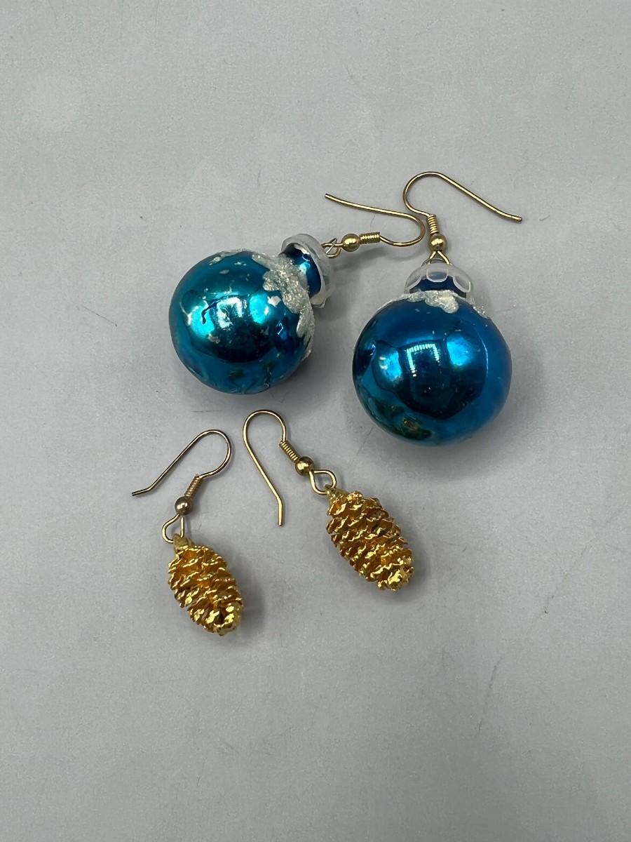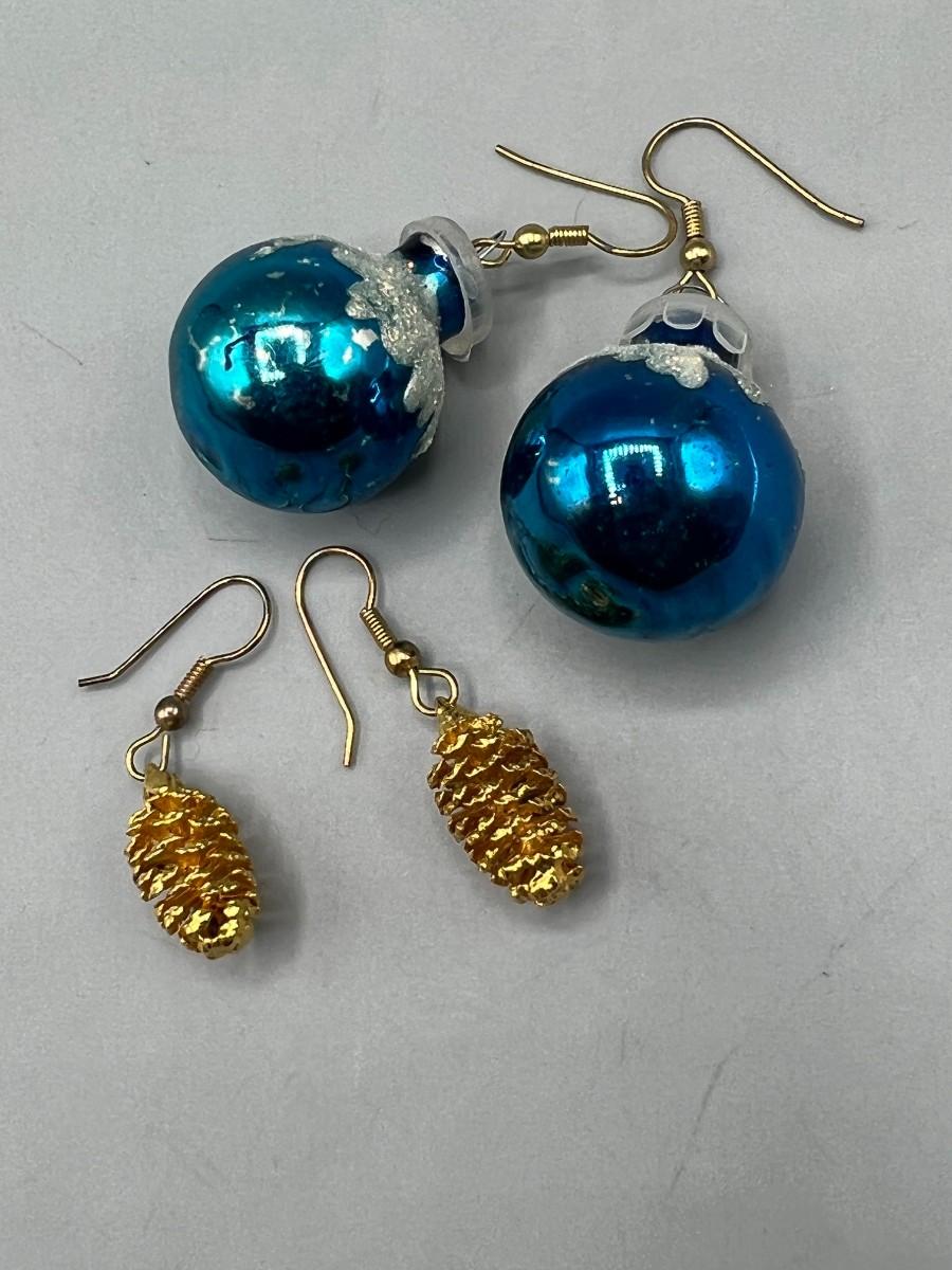 Two Pairs of Holiday Christmas Fashion Earrings Ornaments Pinecones