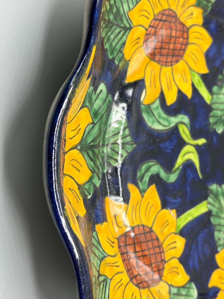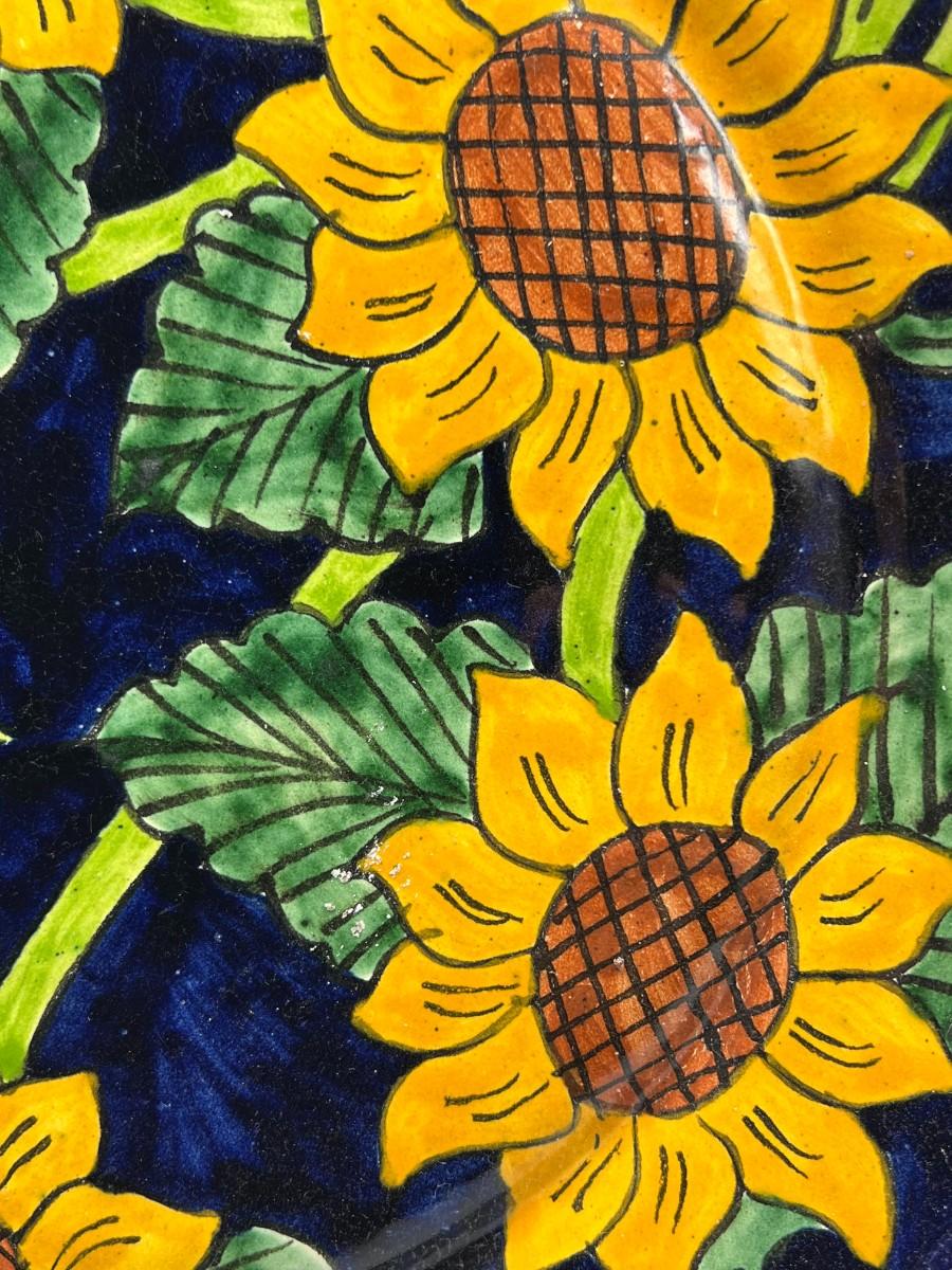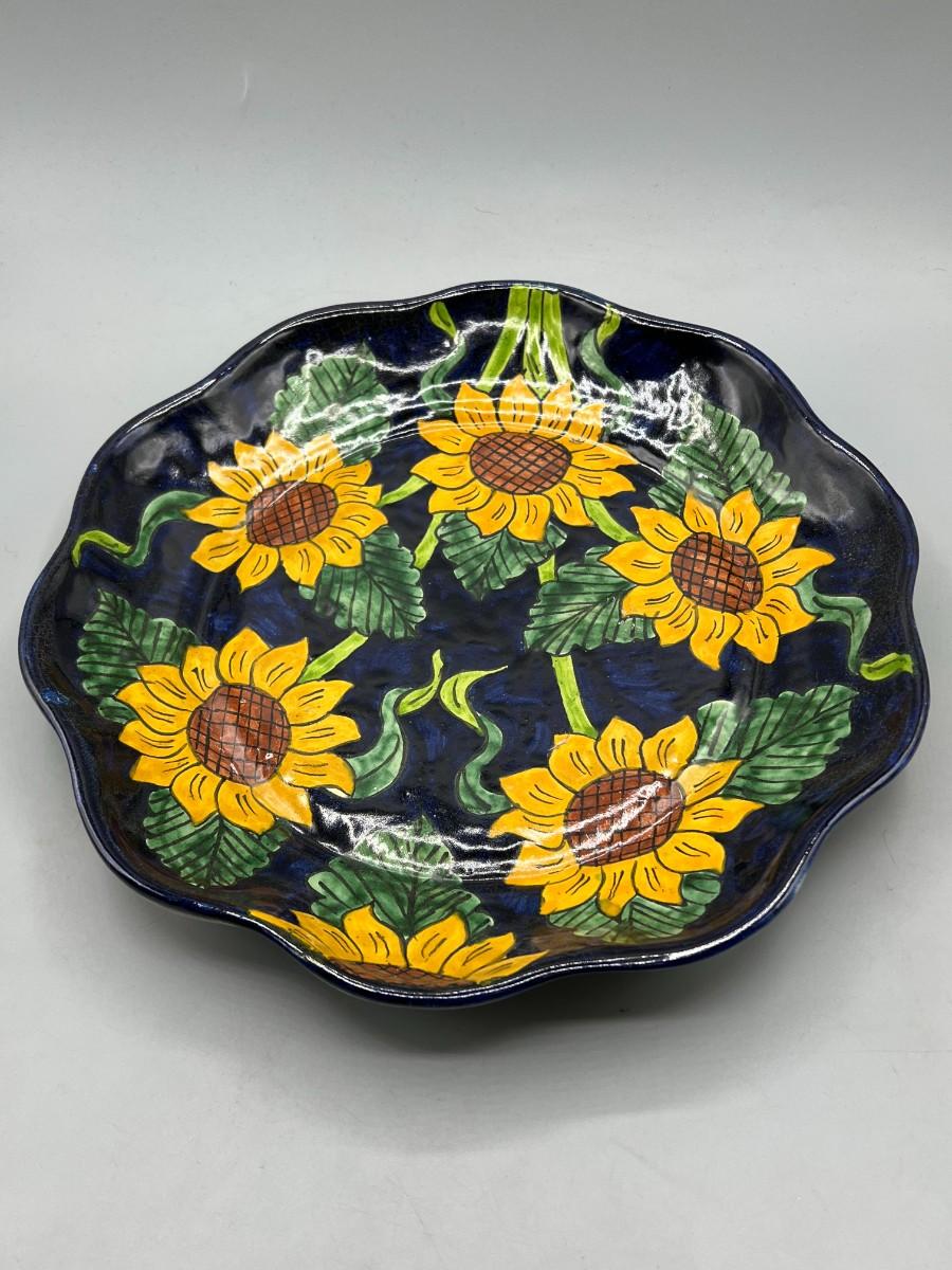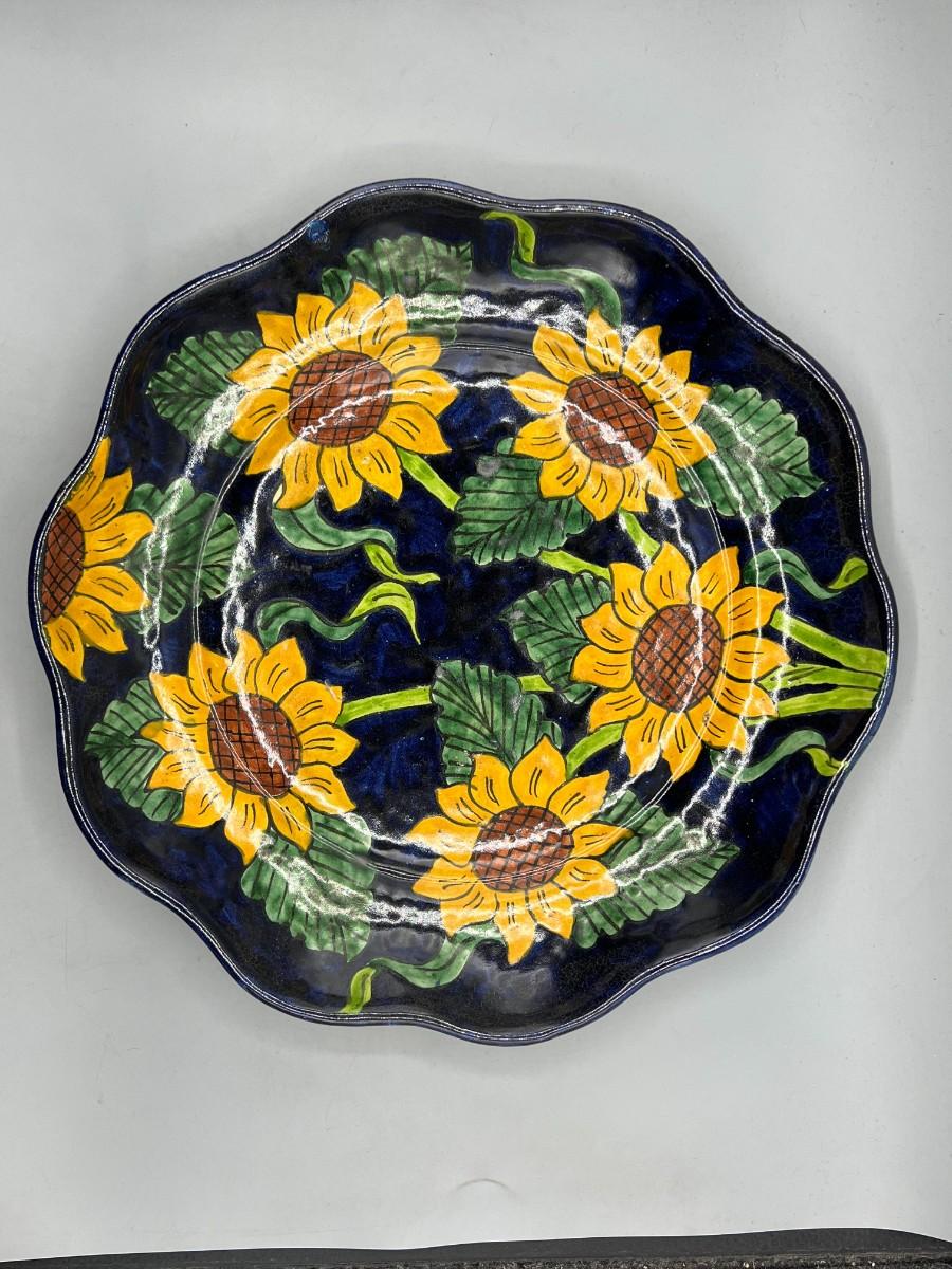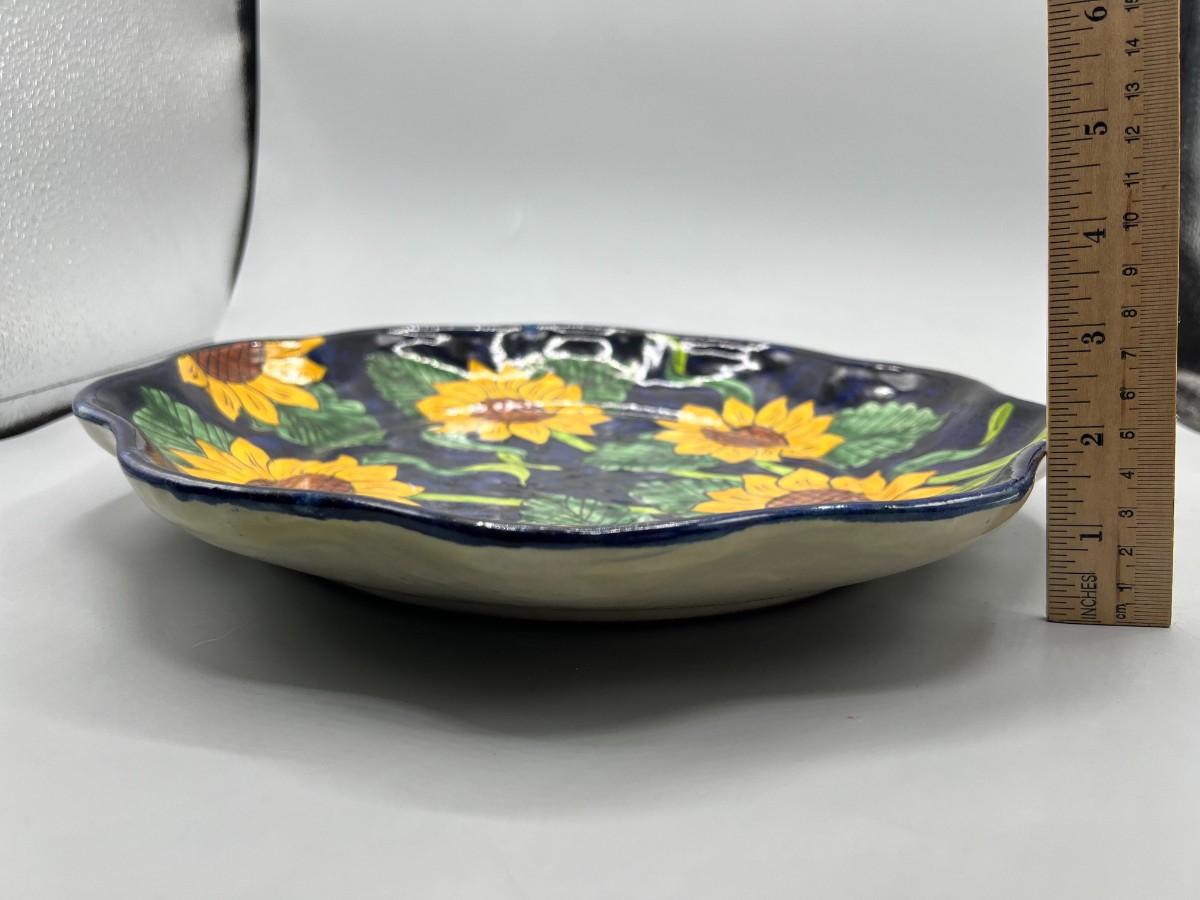 Vintage Handcrafted Pottery Art Sunflower Wall Hanging Plate Decor