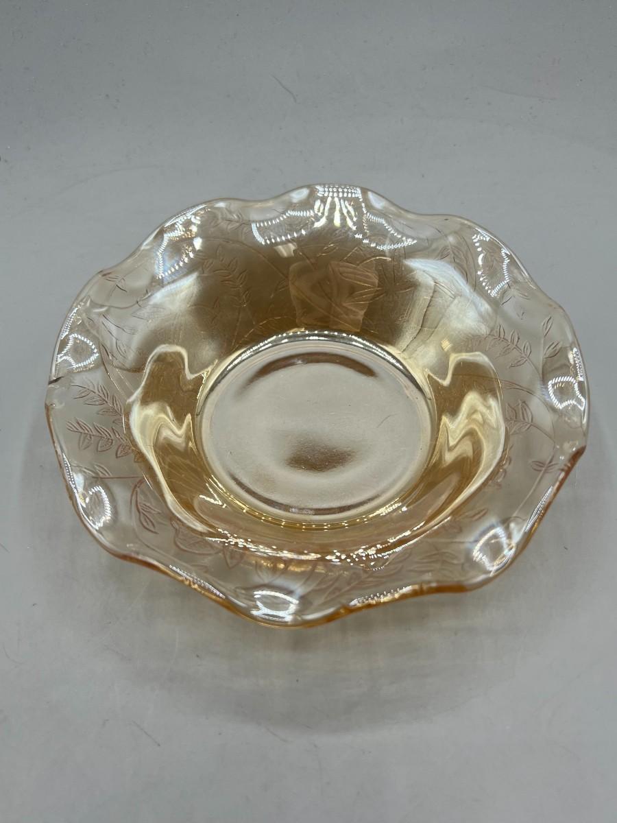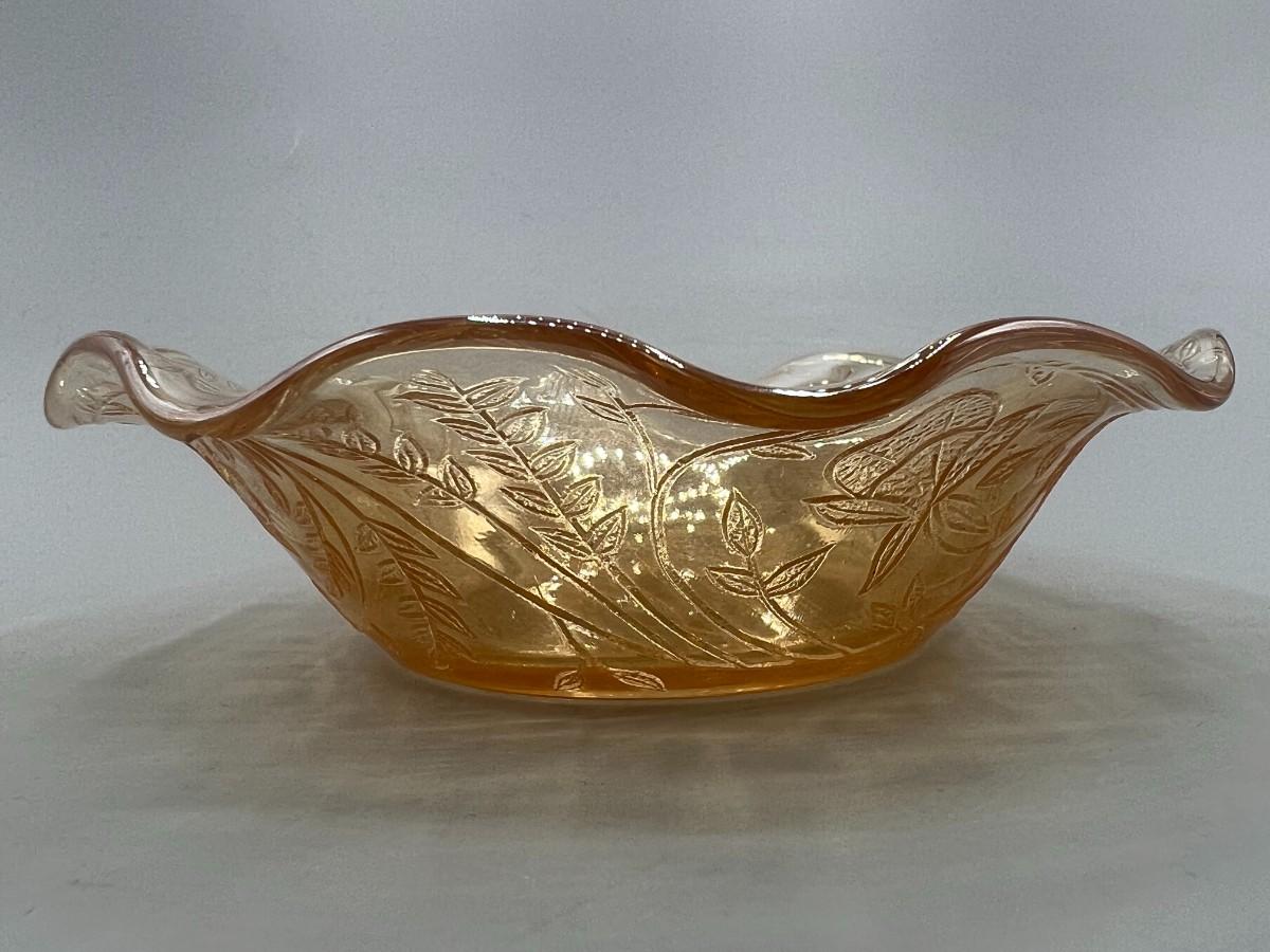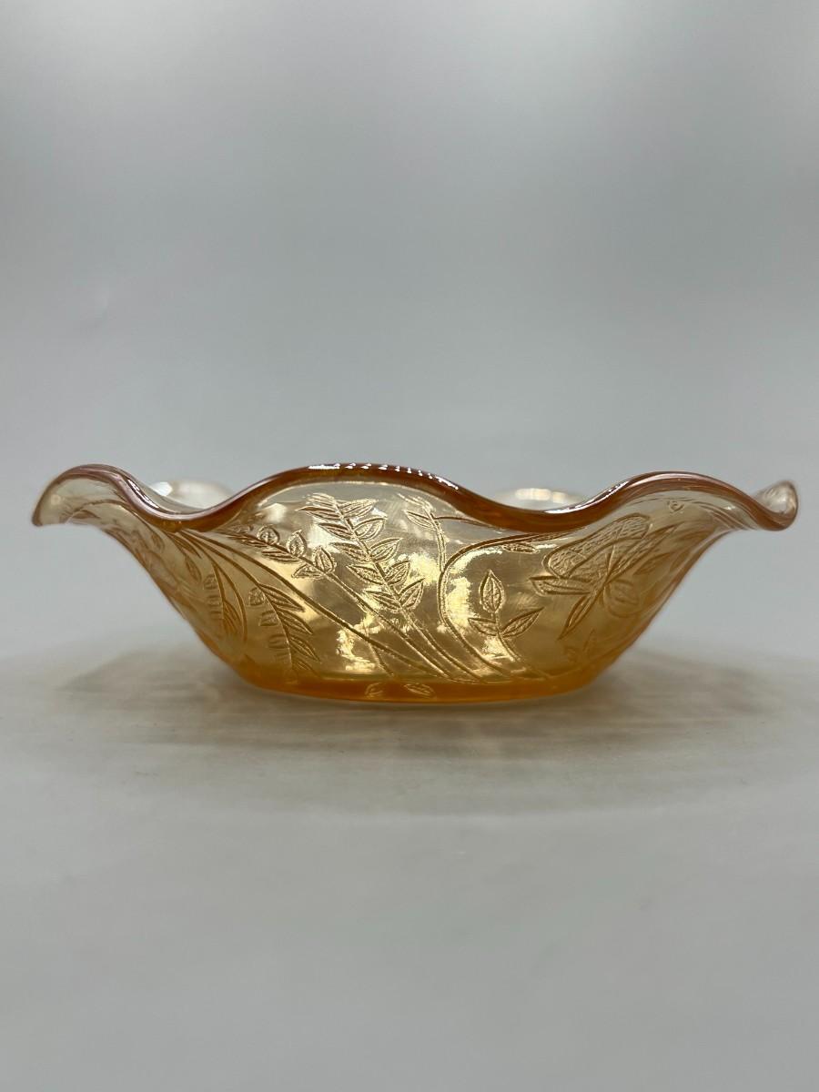 Vintage Ruffled Edge Small Marigold Carnival Glass Trinket Dish