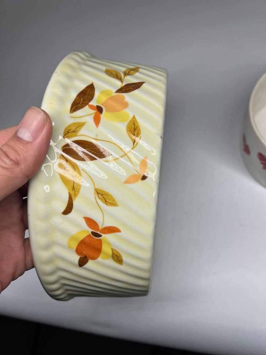 Pair of Seasonal Themed Shallow Serving Trinket Console Bowls. Hall Pottery and FTD. Good used condition.