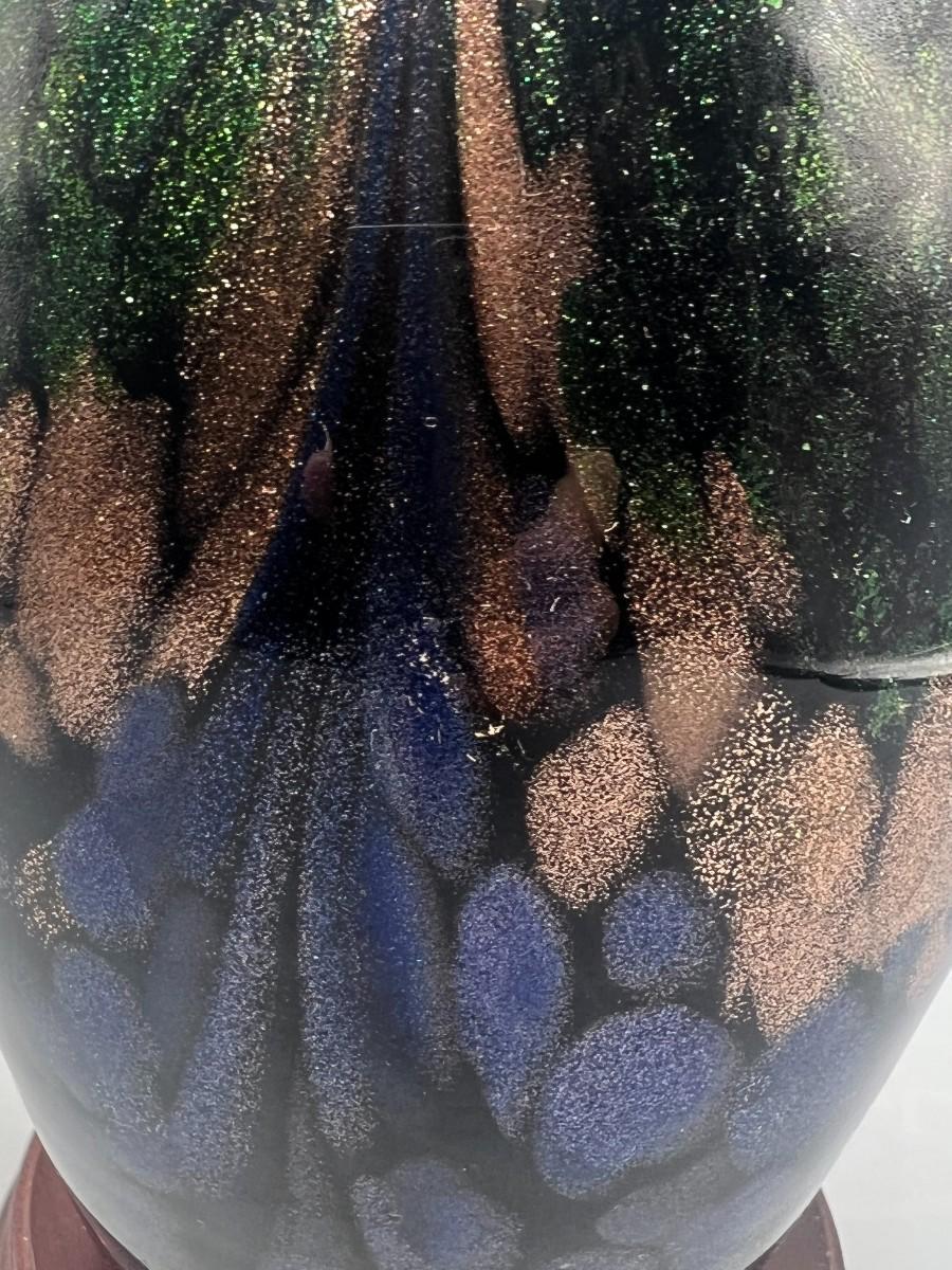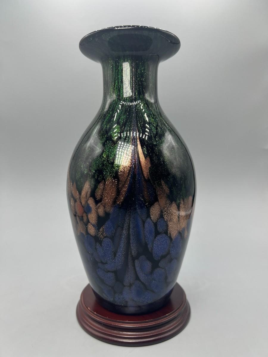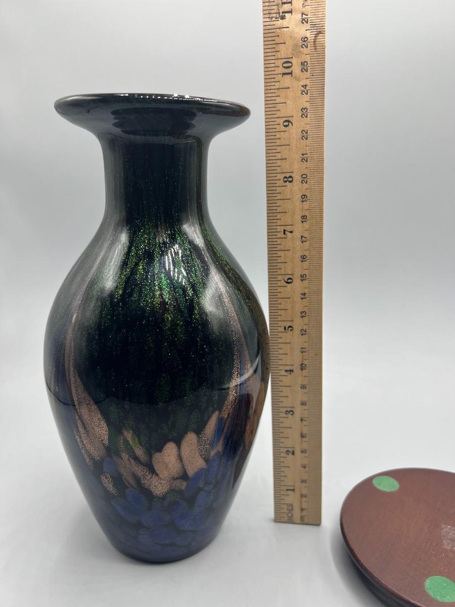 Vintage Dale Tiffany Mardi Gras Favrile Glitter Art Glass Vase with Display Stand
