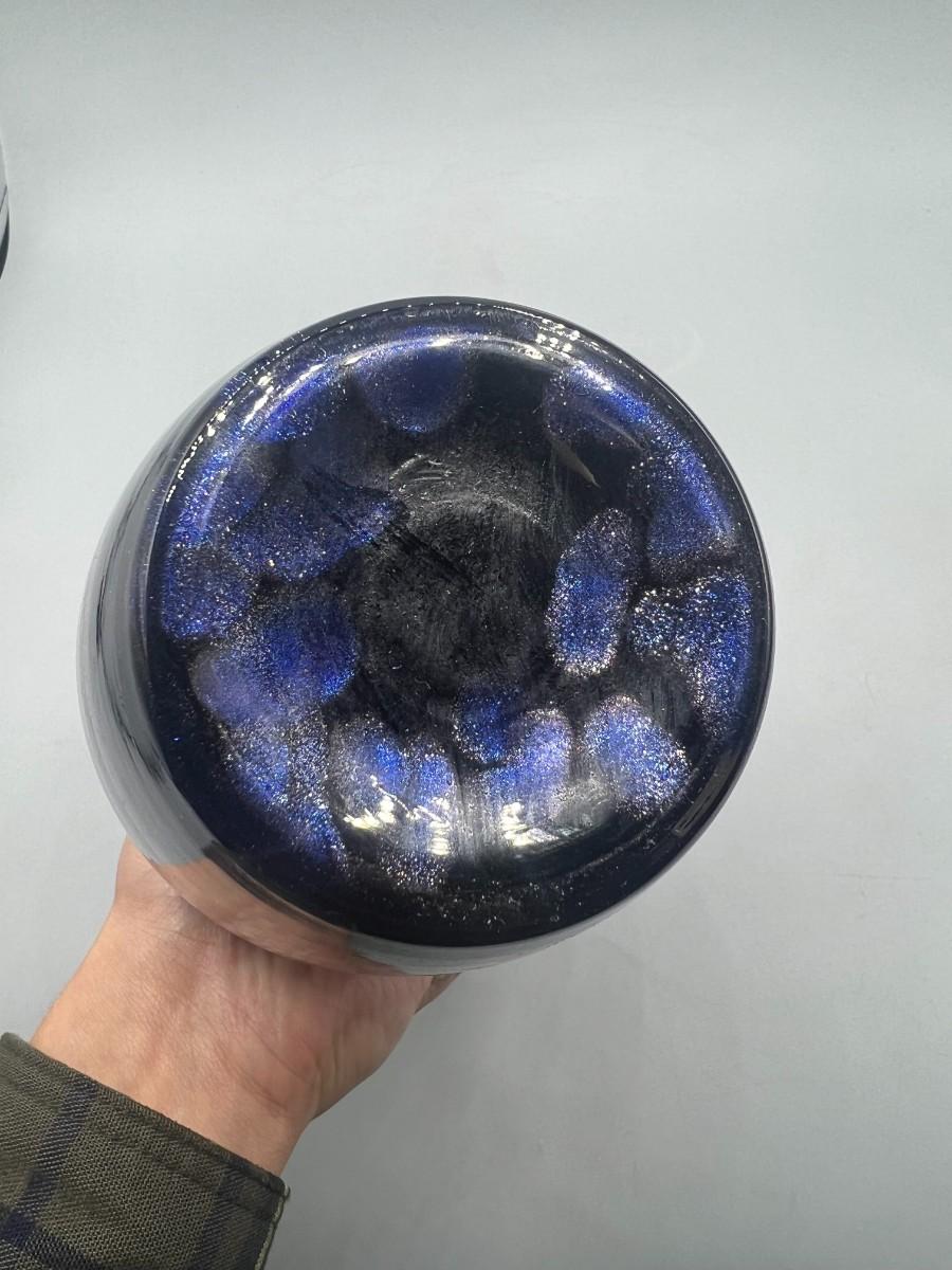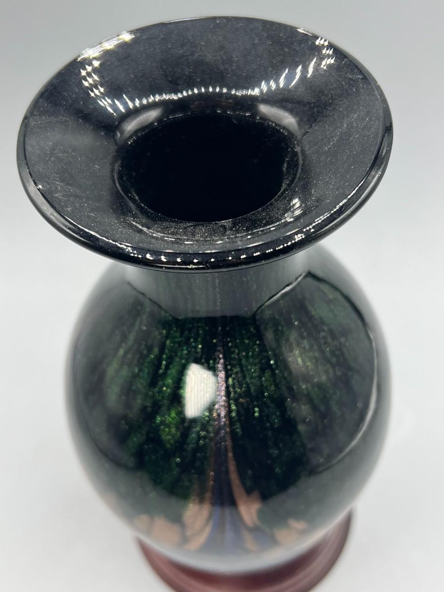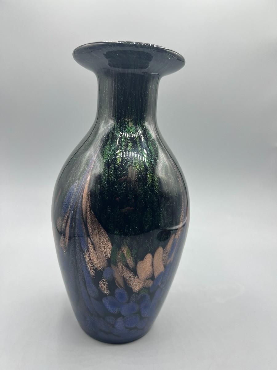 Vintage Dale Tiffany Mardi Gras Favrile Glitter Art Glass Vase with Display Stand