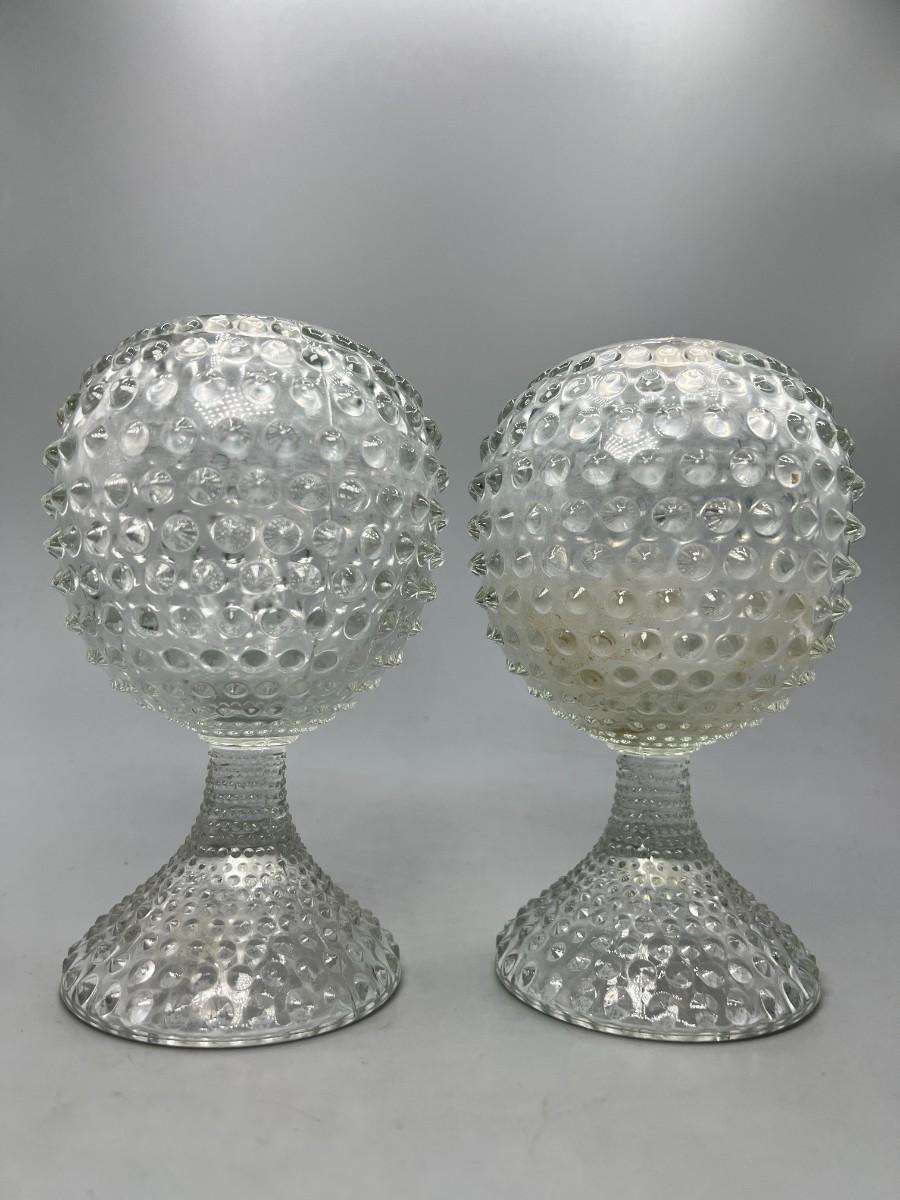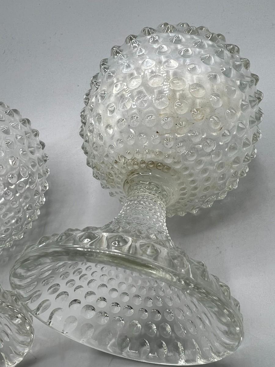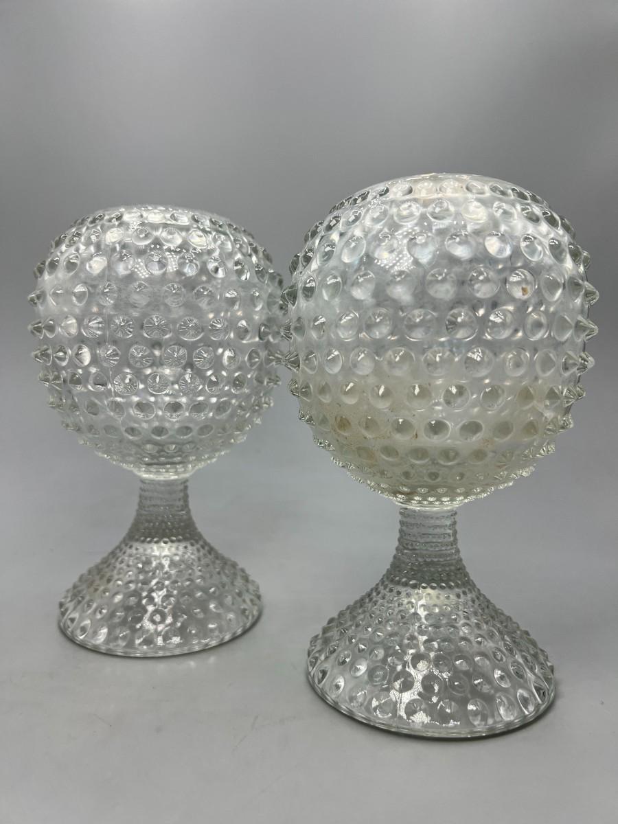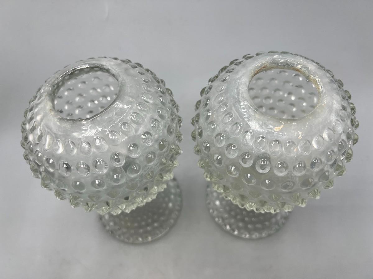 Pair of Vintage Hobnail Glass Ivy Ball Mid Century Globe Vases