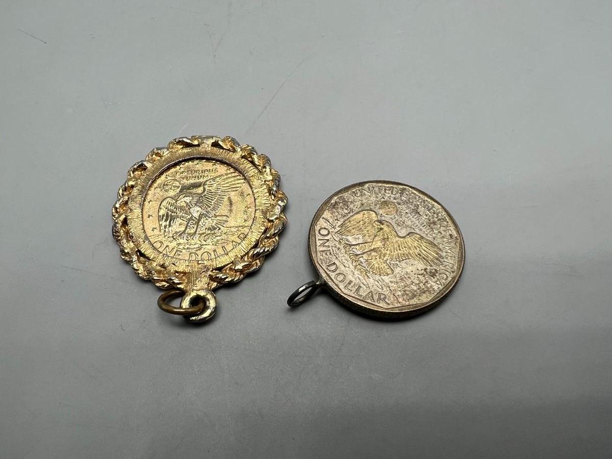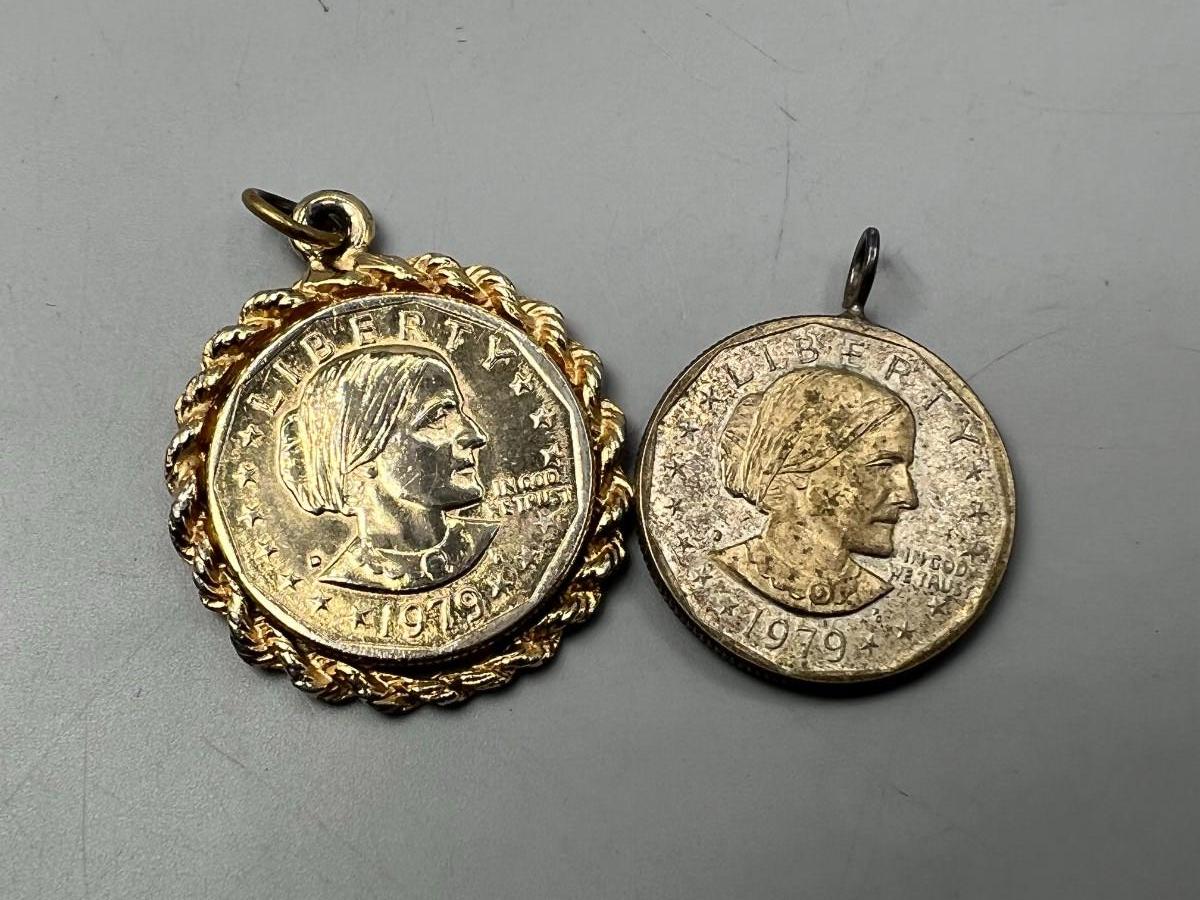 Pair of Vintage Susan B. Anthony 1979 One Dollar Coin Necklace Charms