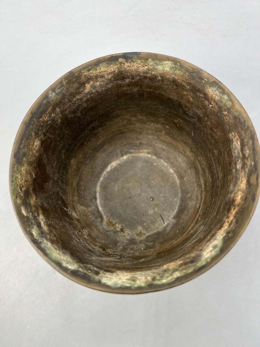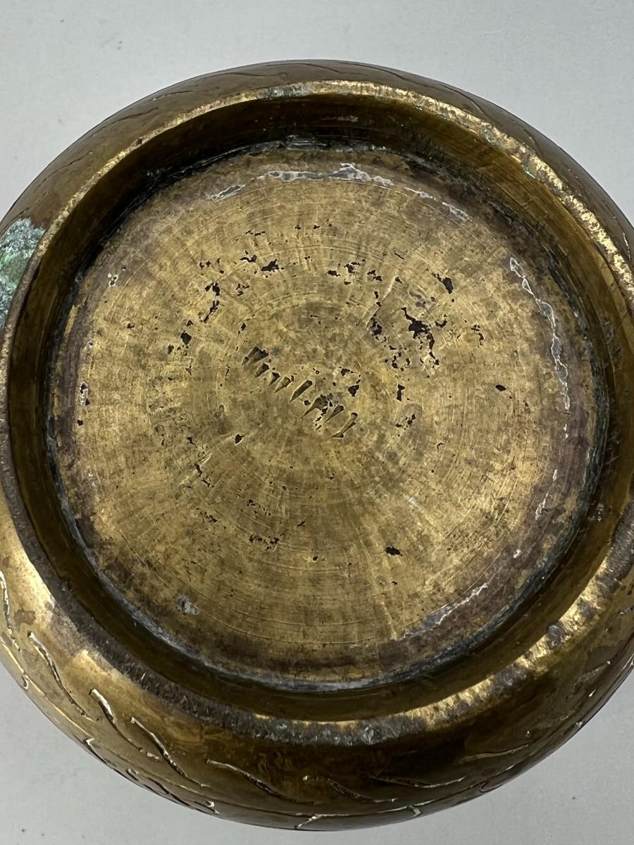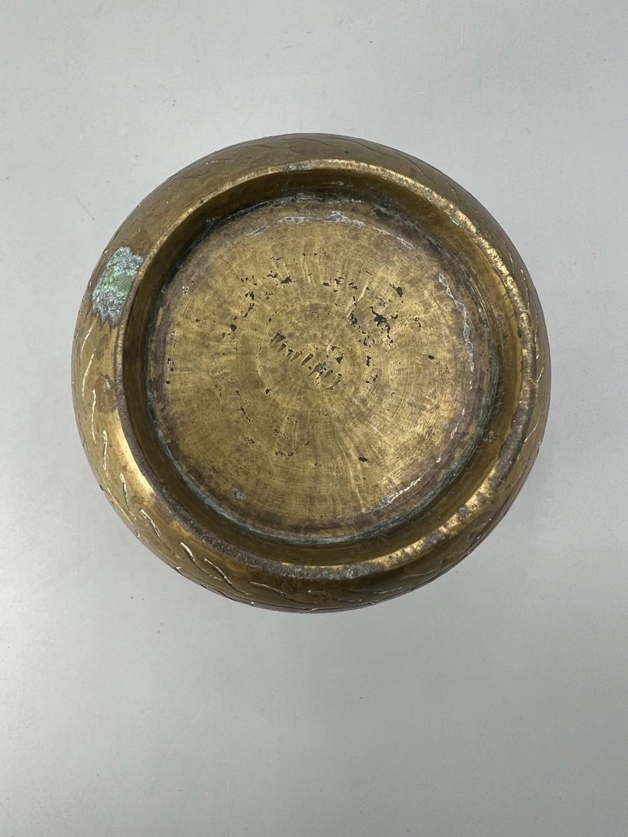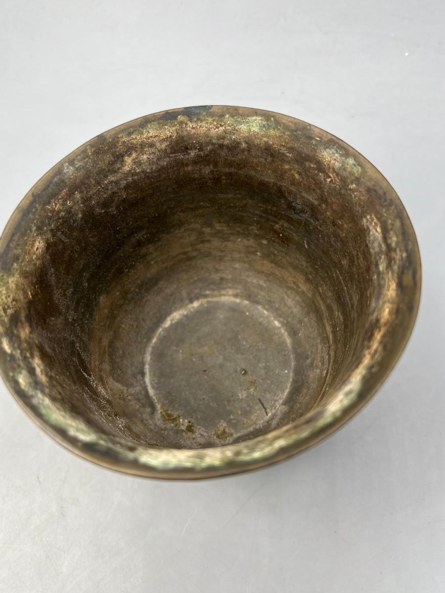 Vintage Etched Brass Artifact Mortar Grinding Bowl