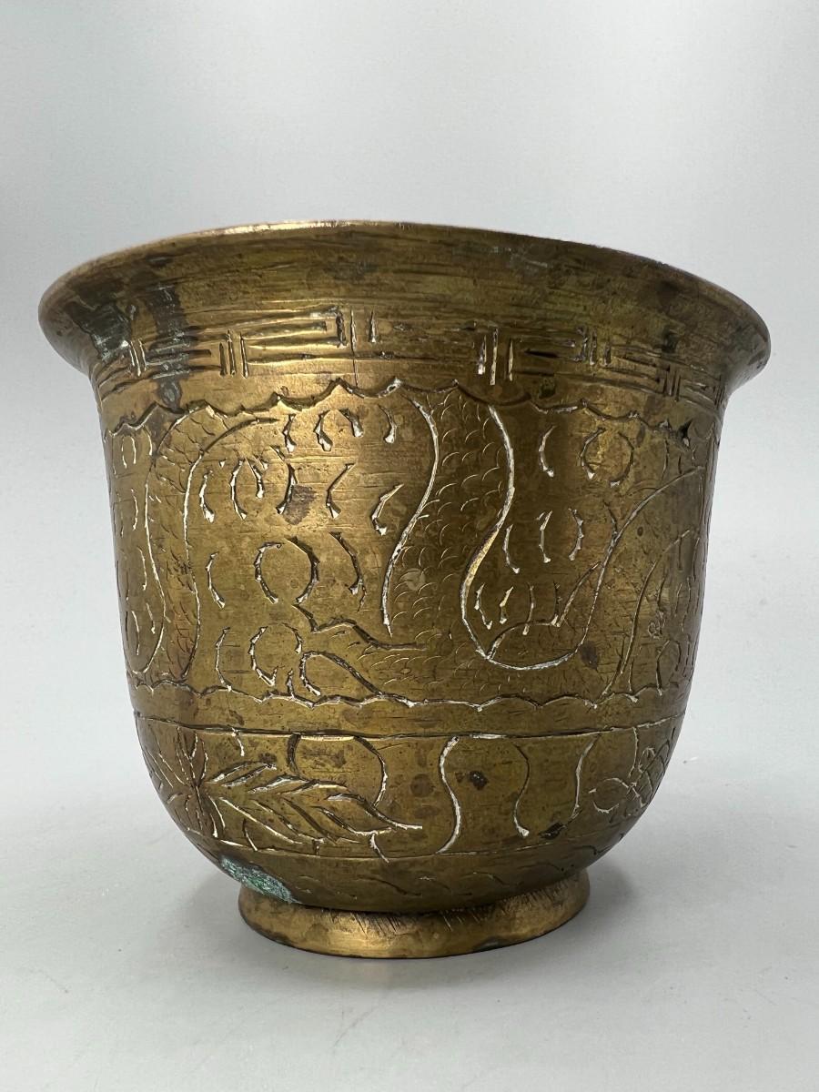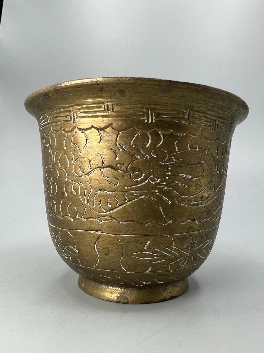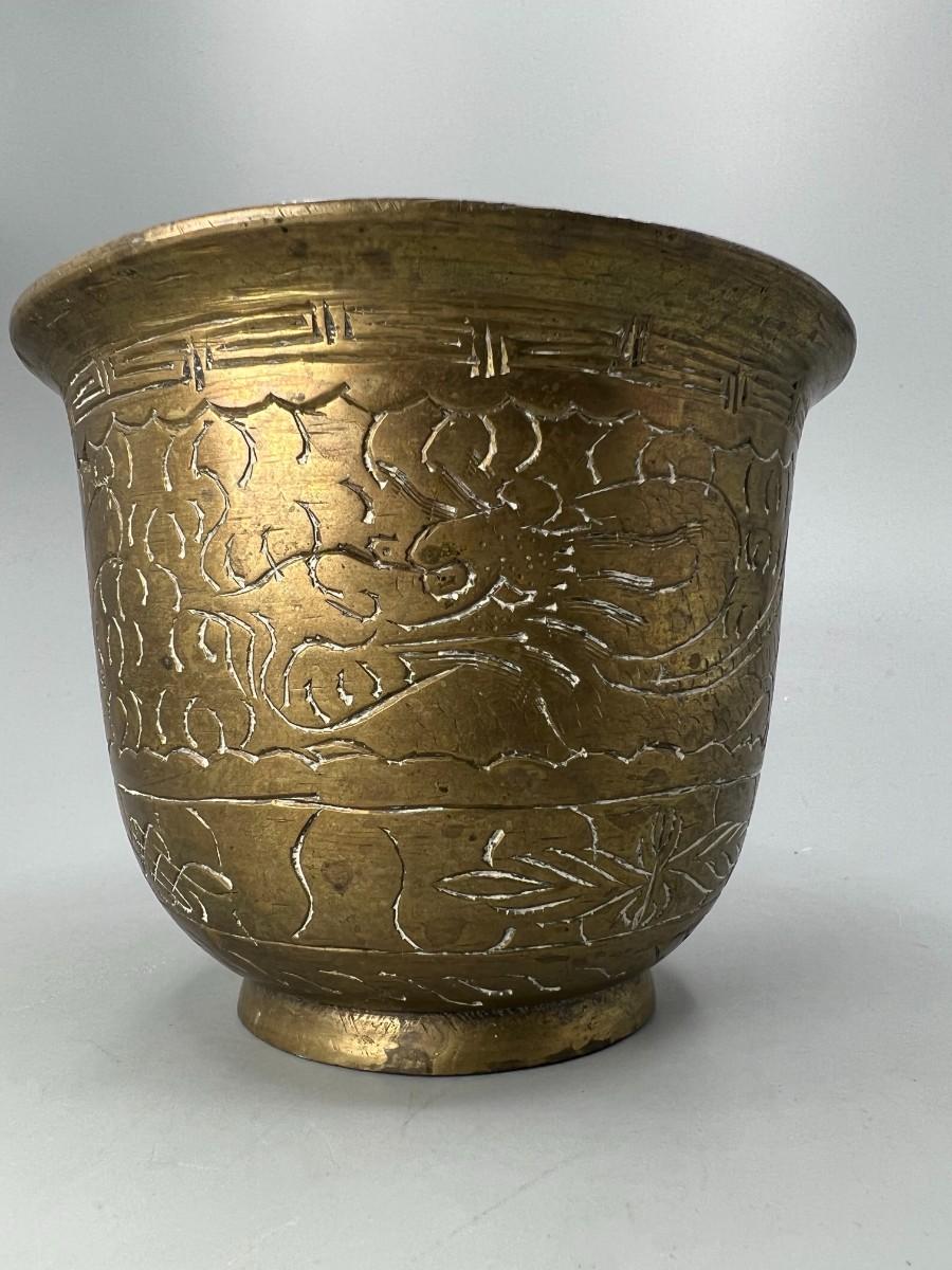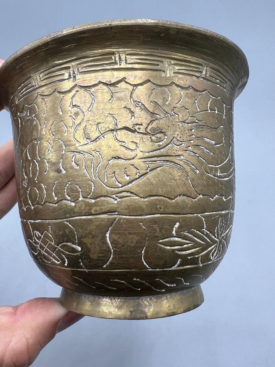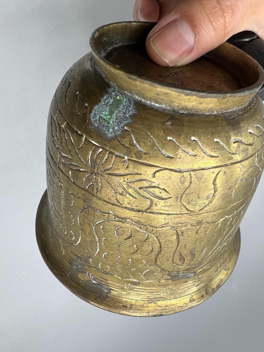 Vintage Etched Brass Artifact Mortar Grinding Bowl