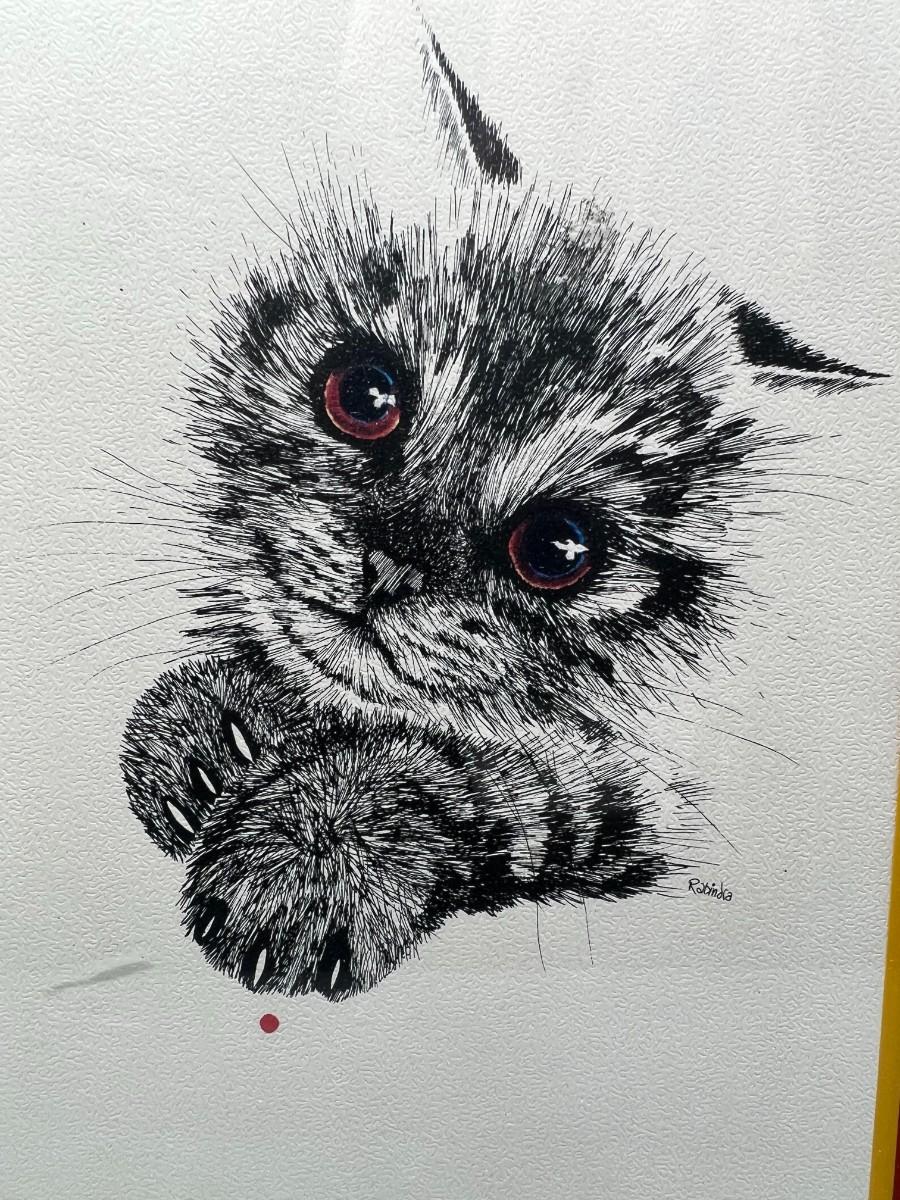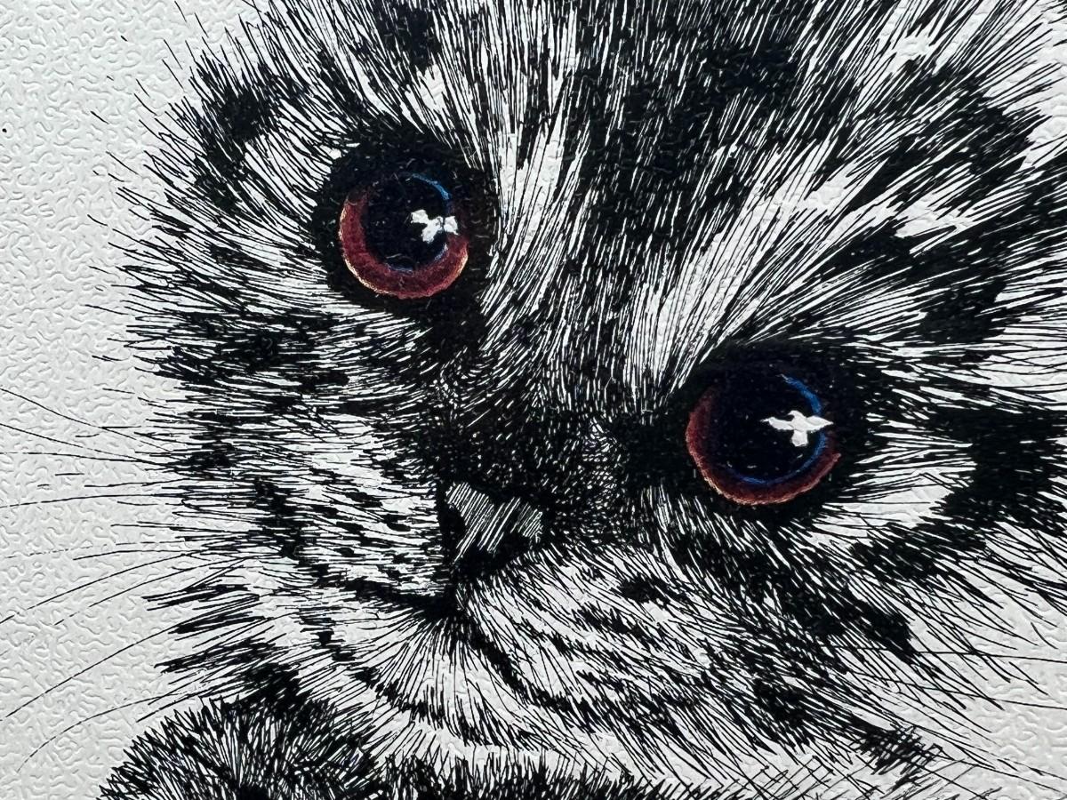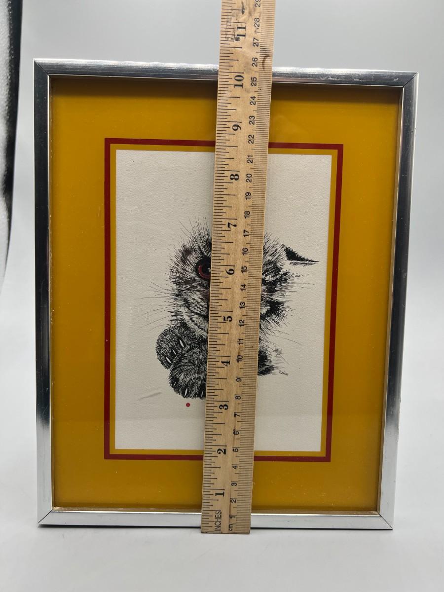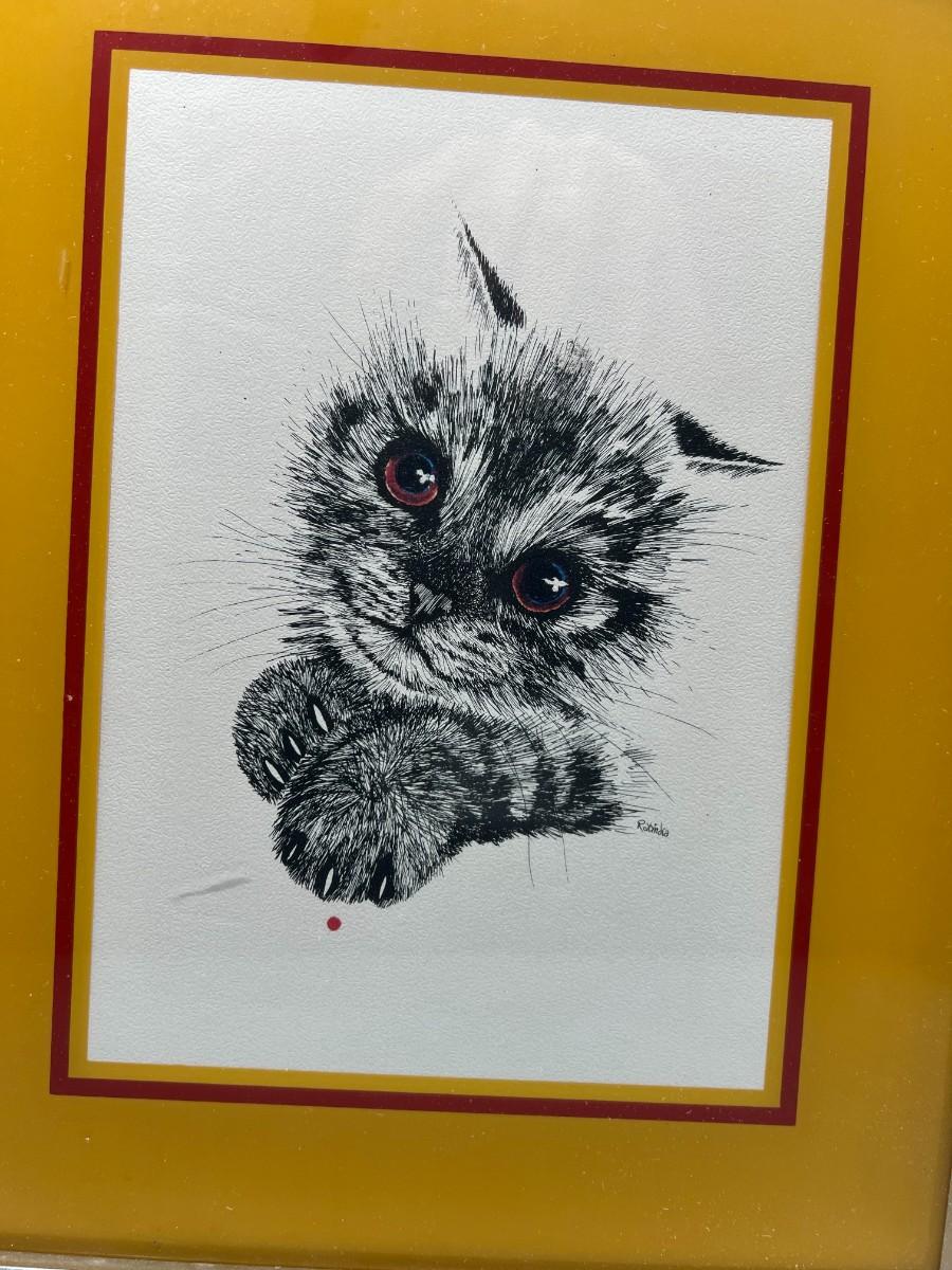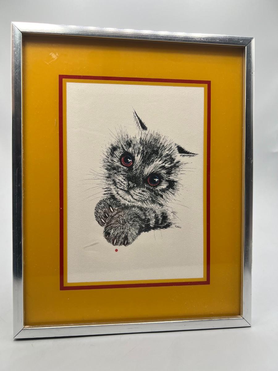 Vintage Framed Lithograph Rabindra Danks Kitten Art Print on Textured Paper