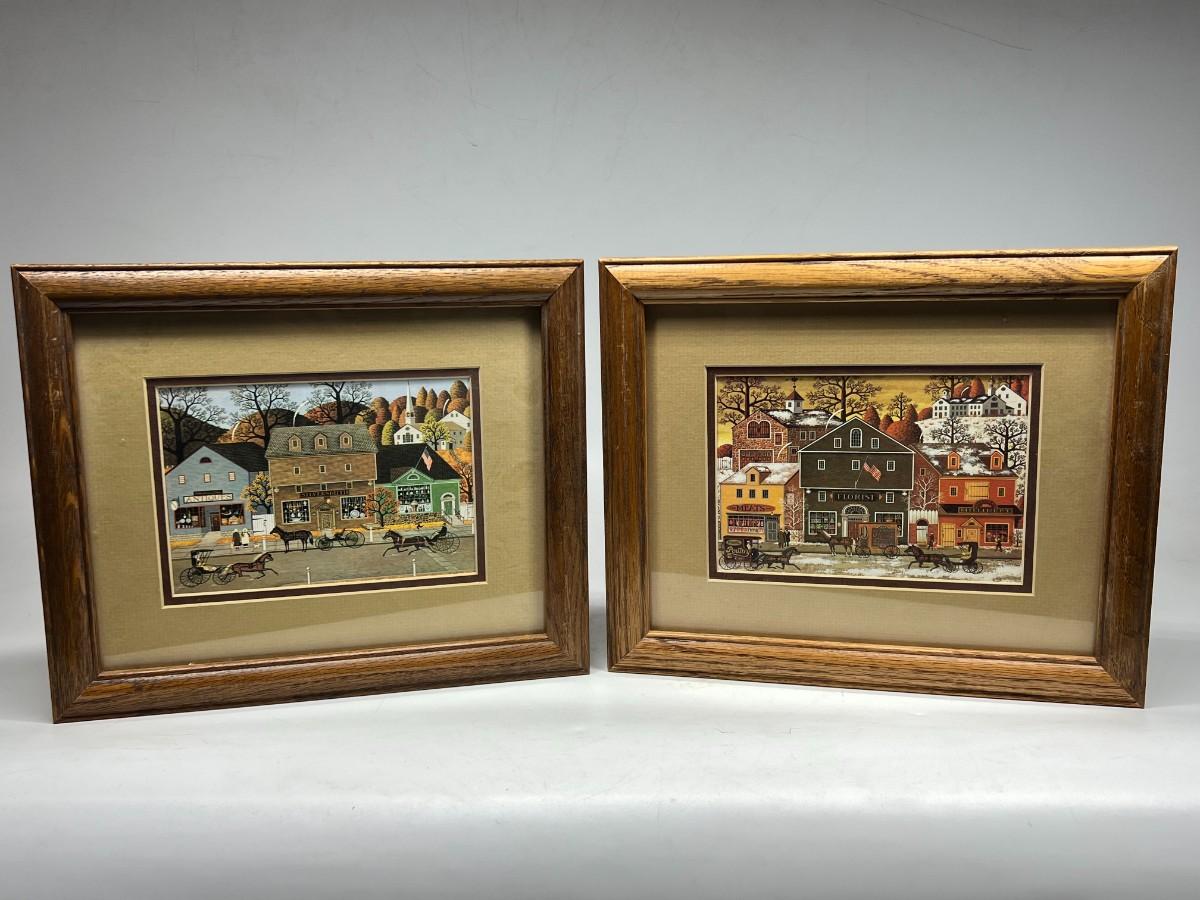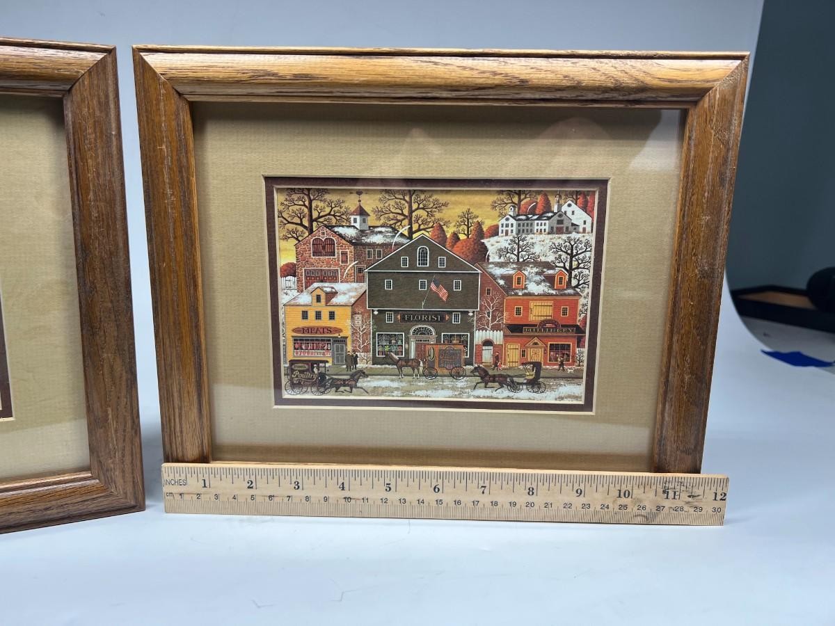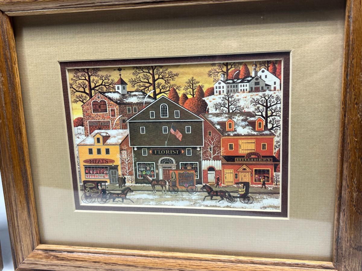 Pair of Small Retro Framed Charles Wysocki Old Americana Art Prints