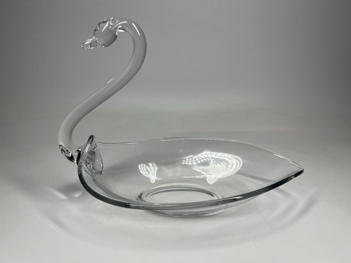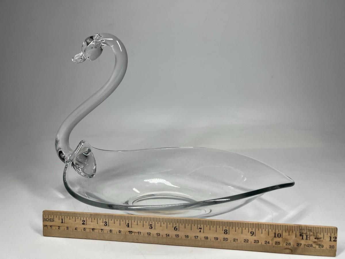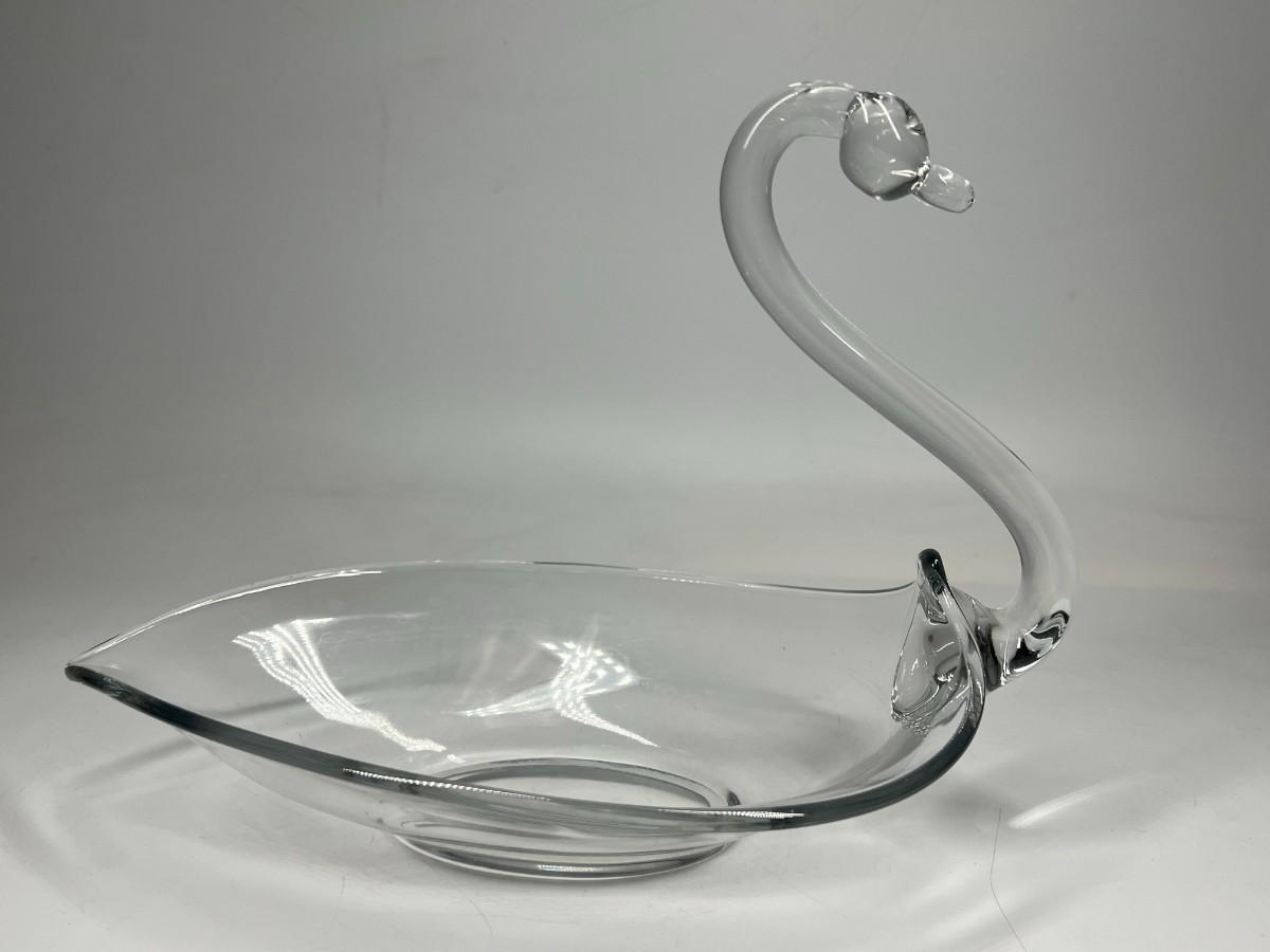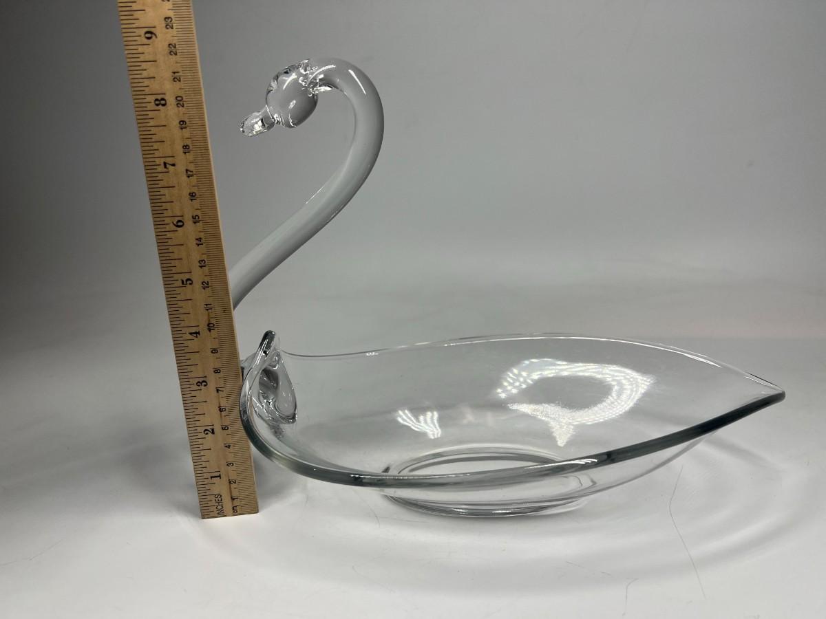 Vintage Clear Glass Swan Shaped Displayable Home Decor Bowl