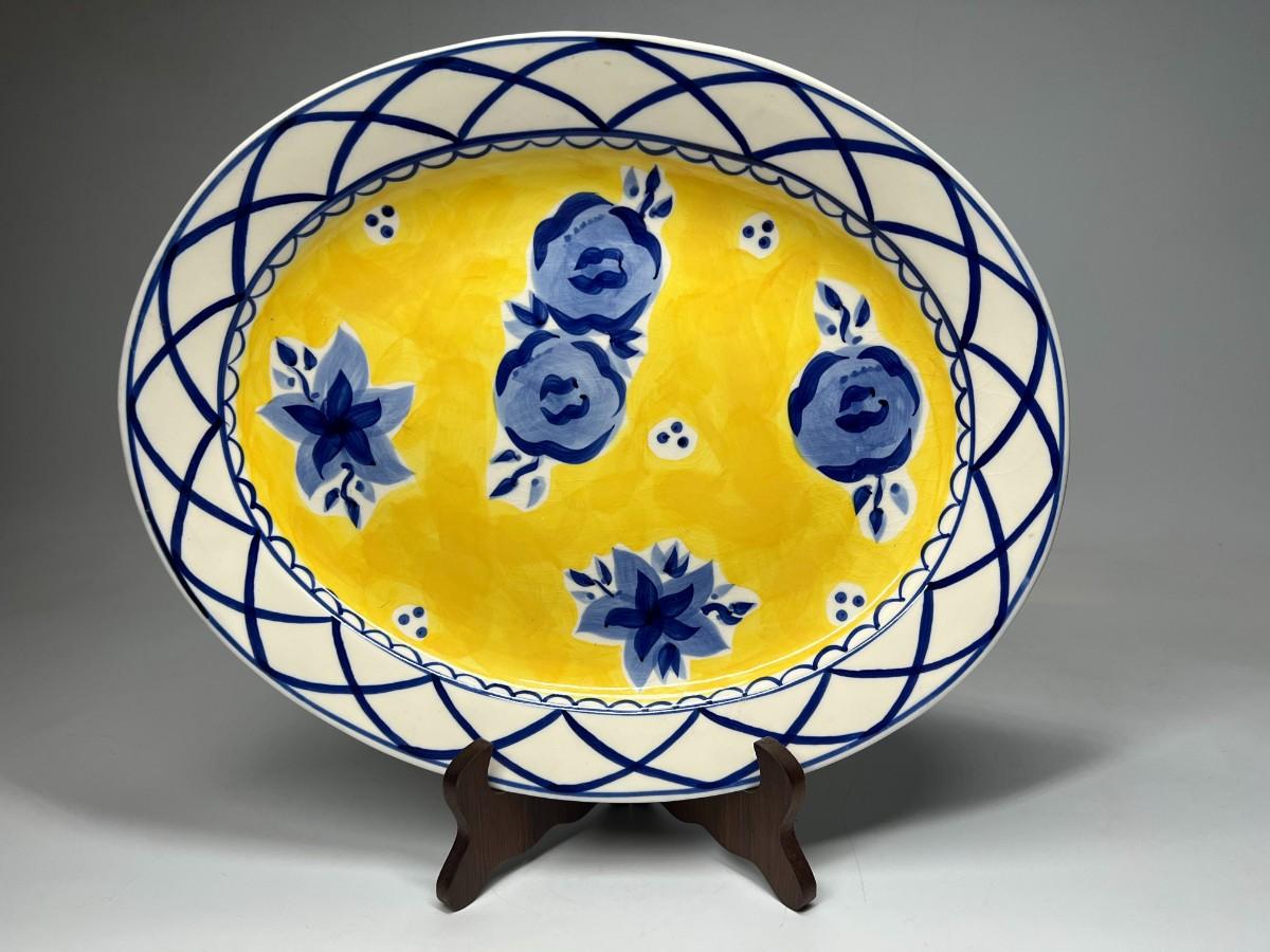 Magnolias Hand Painted Thailand Large Round Serving Plate