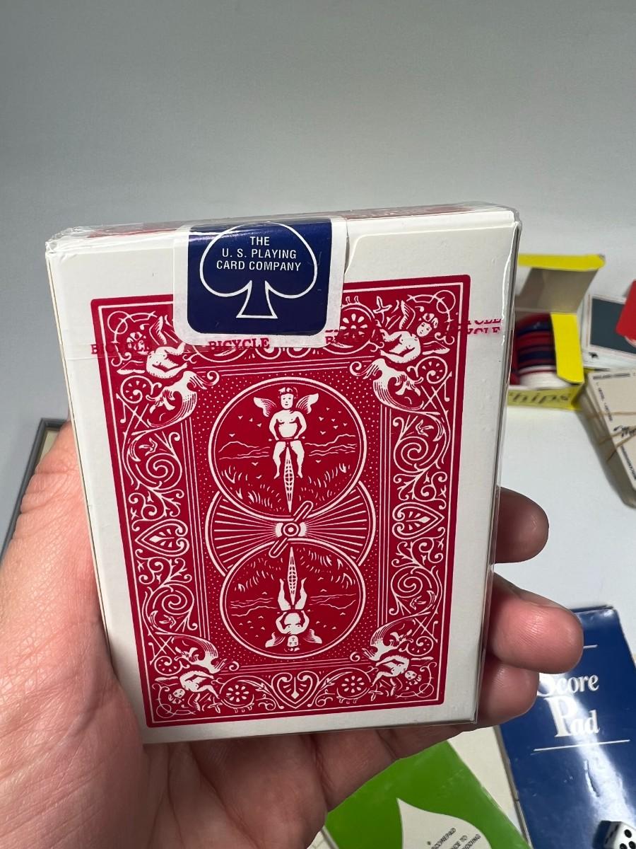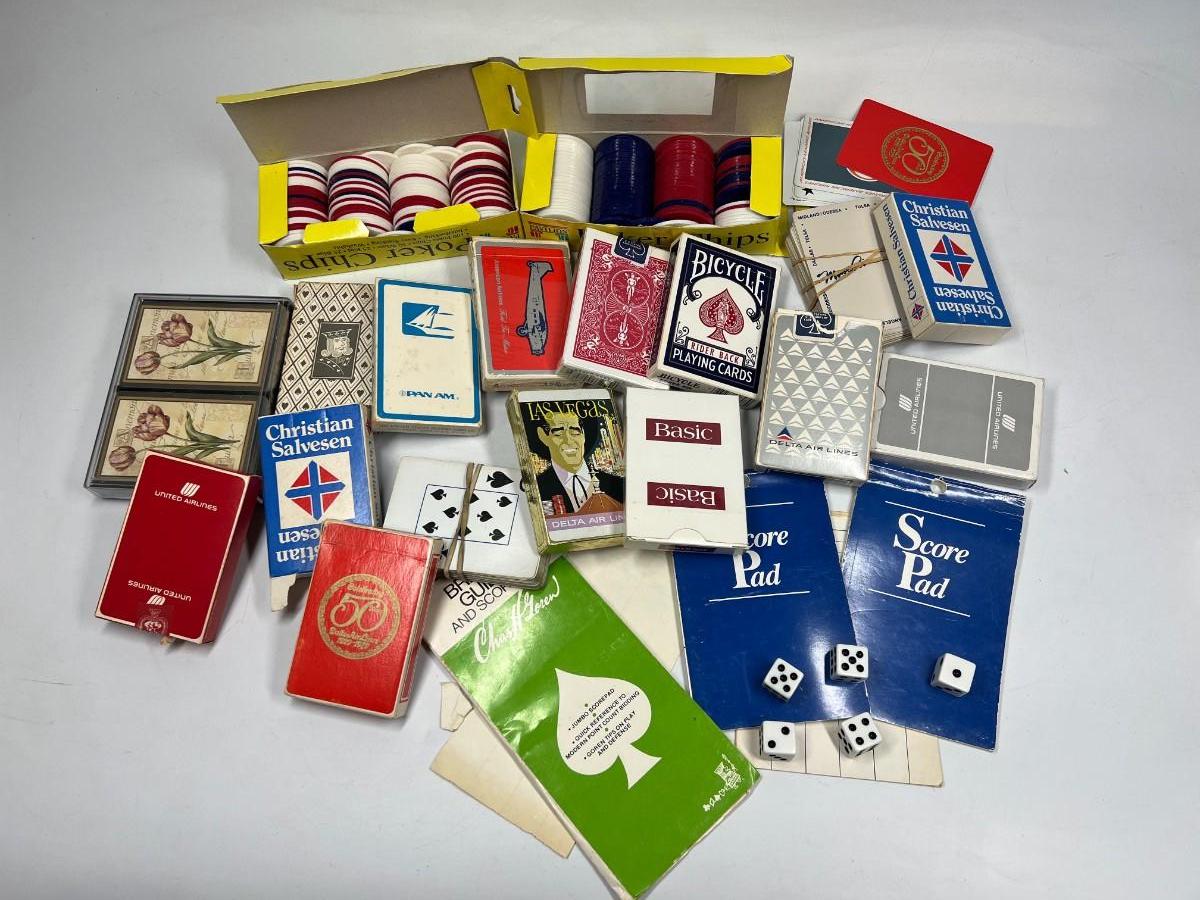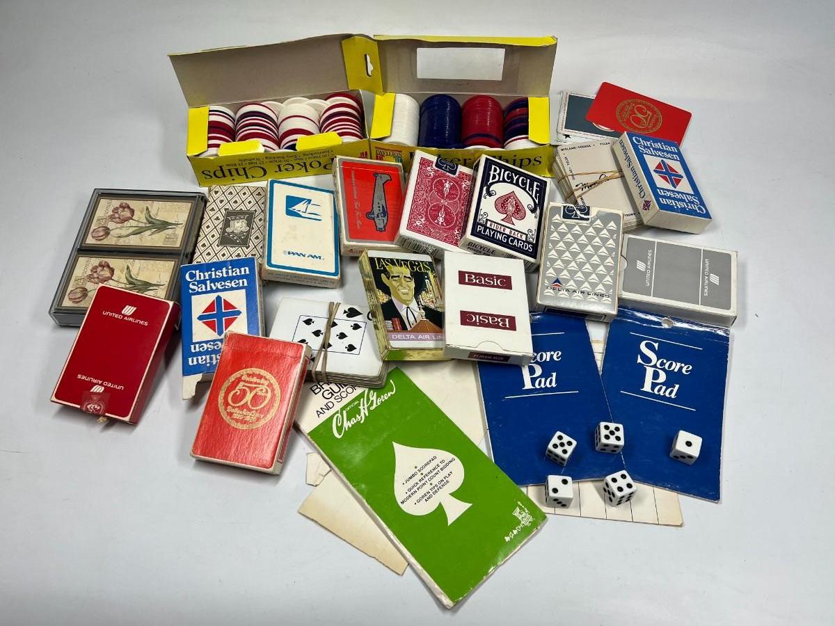 Lot of Vintage Playing Cards Poker Chips, Dice, & More