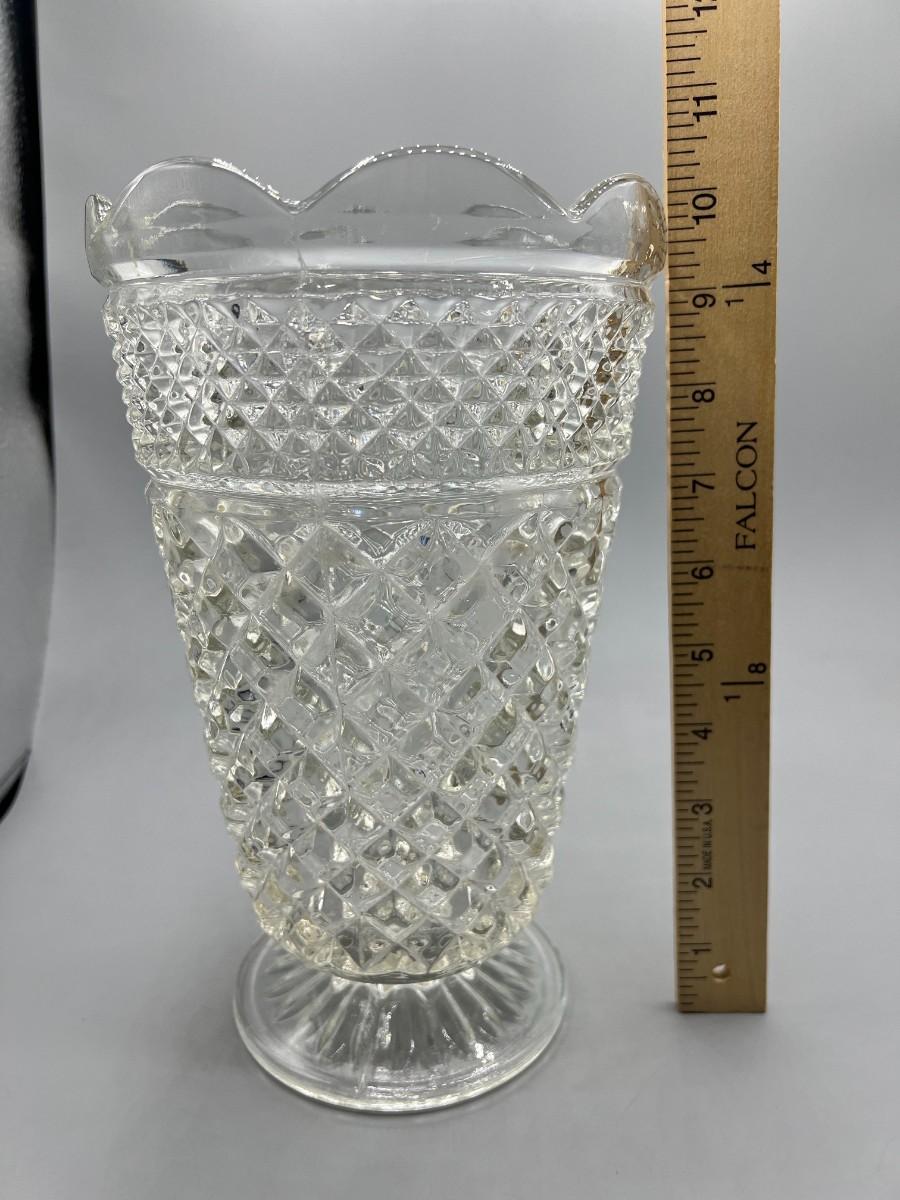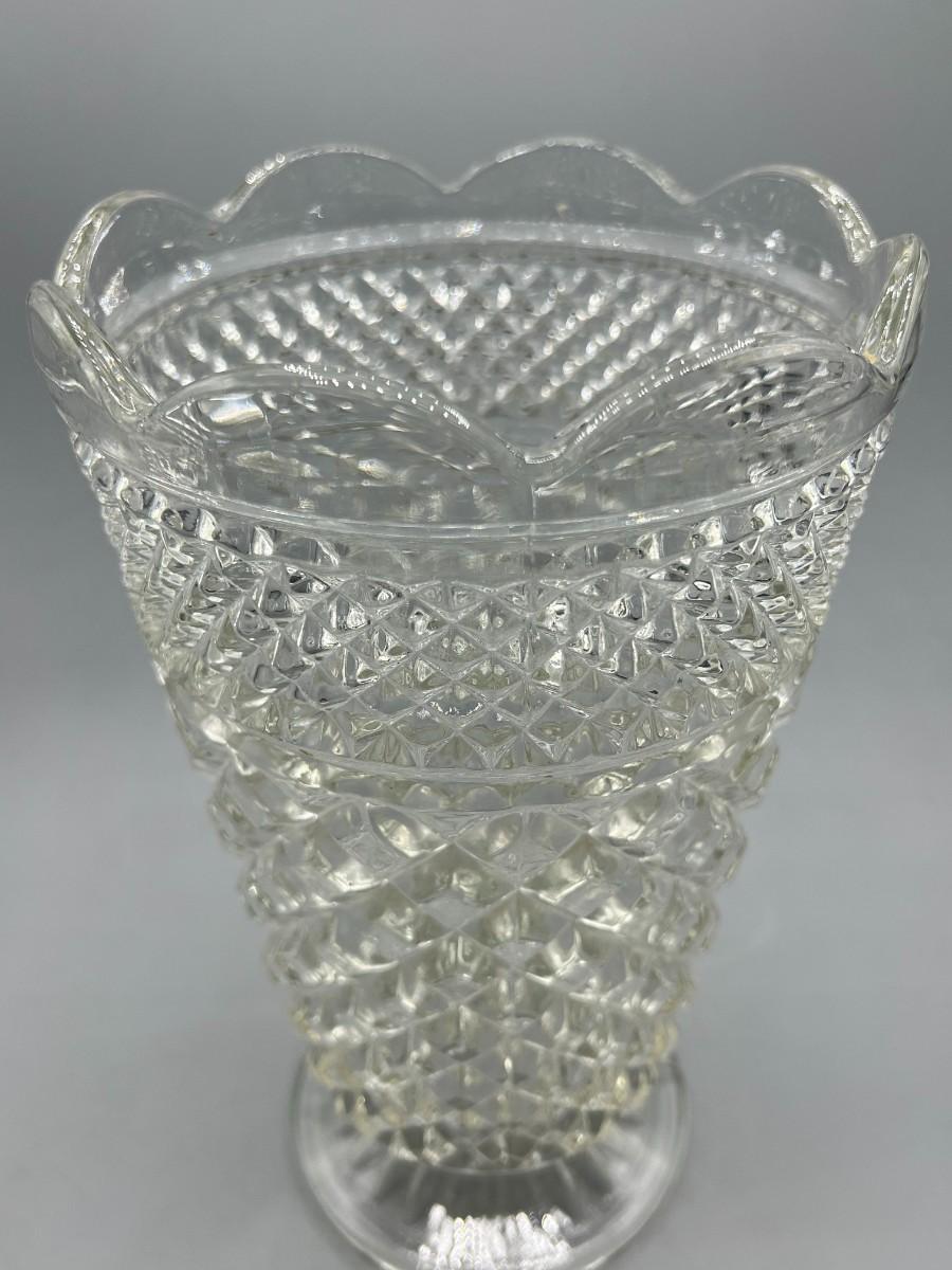 Vintage Diamond Pattern Pressed Glass Flower Vase