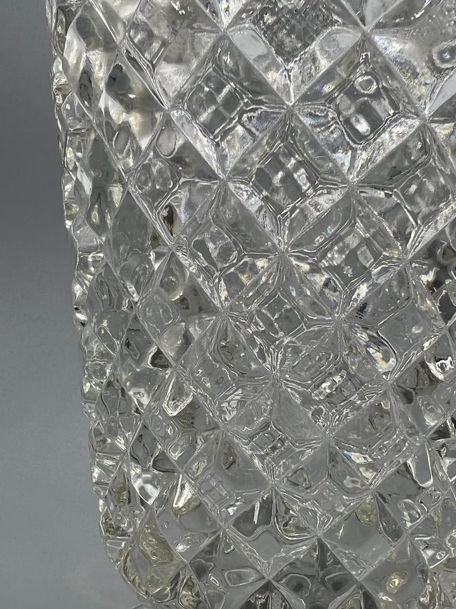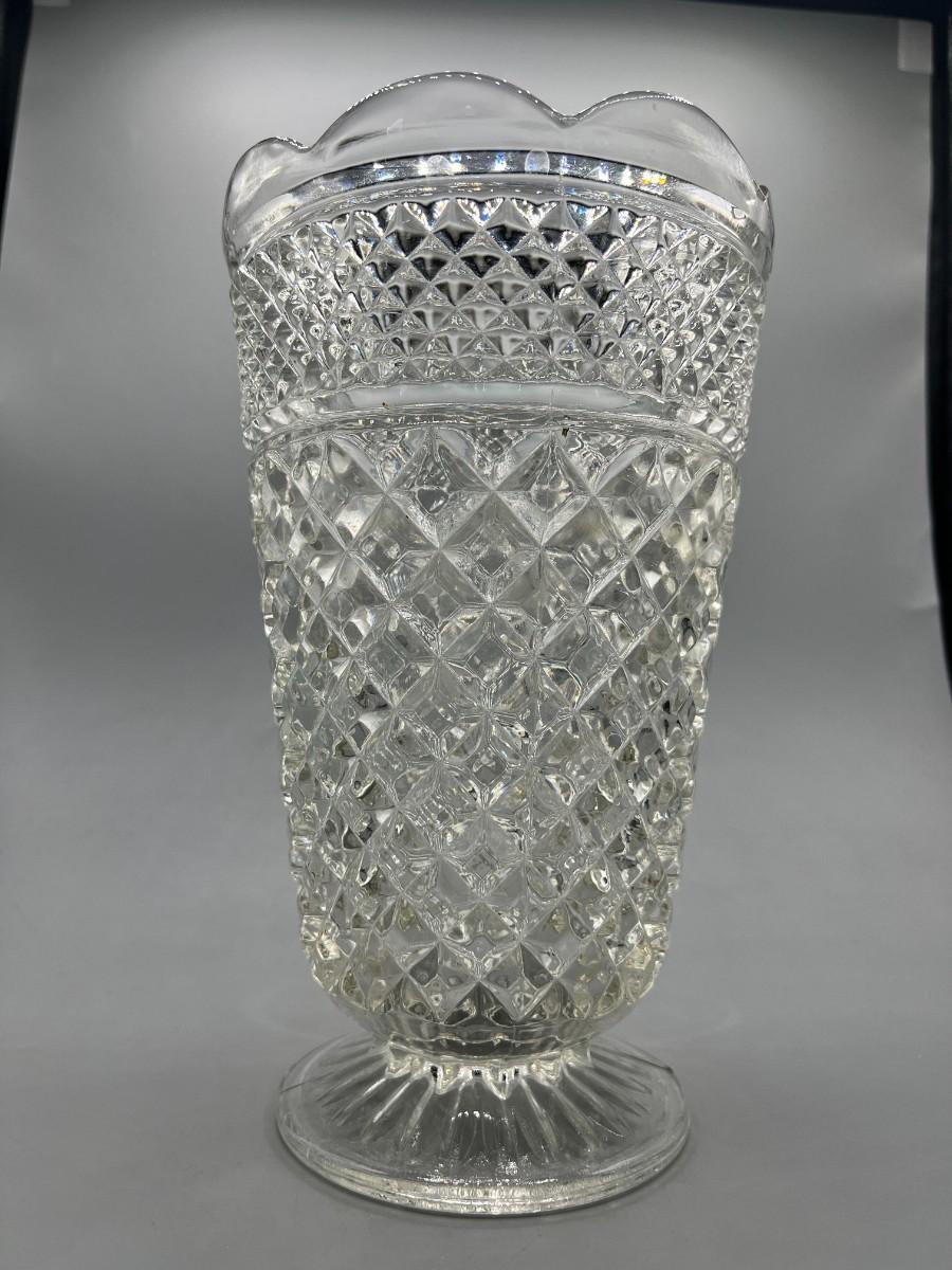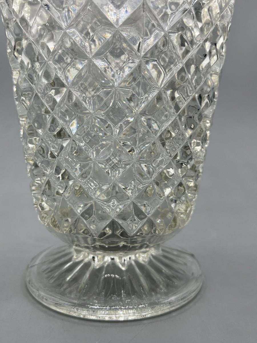 Vintage Diamond Pattern Pressed Glass Flower Vase. In good condition. About 10" size.