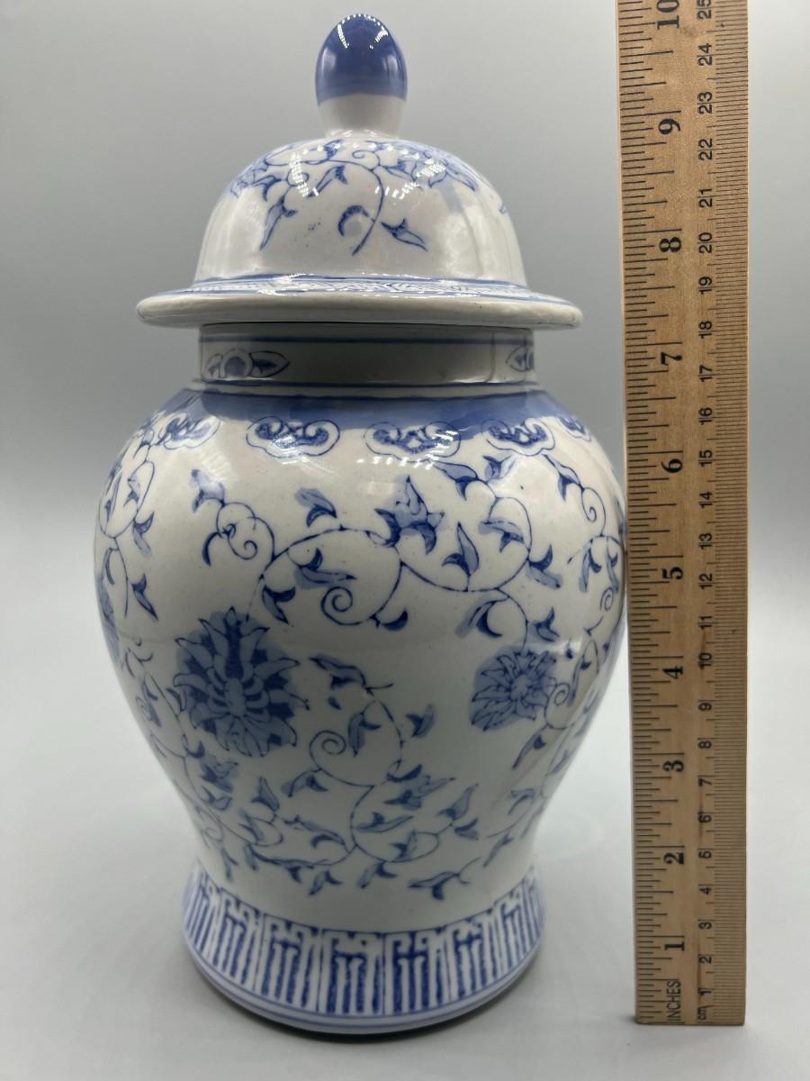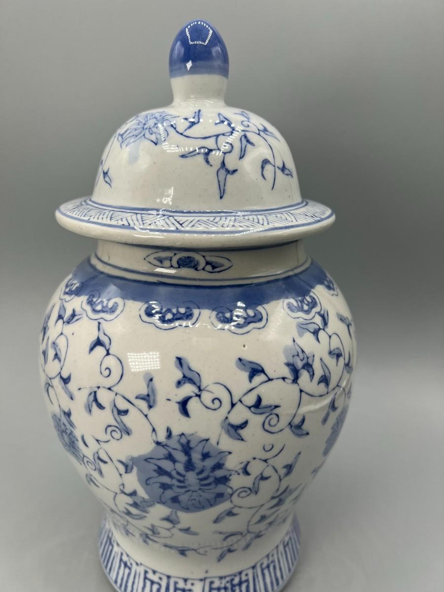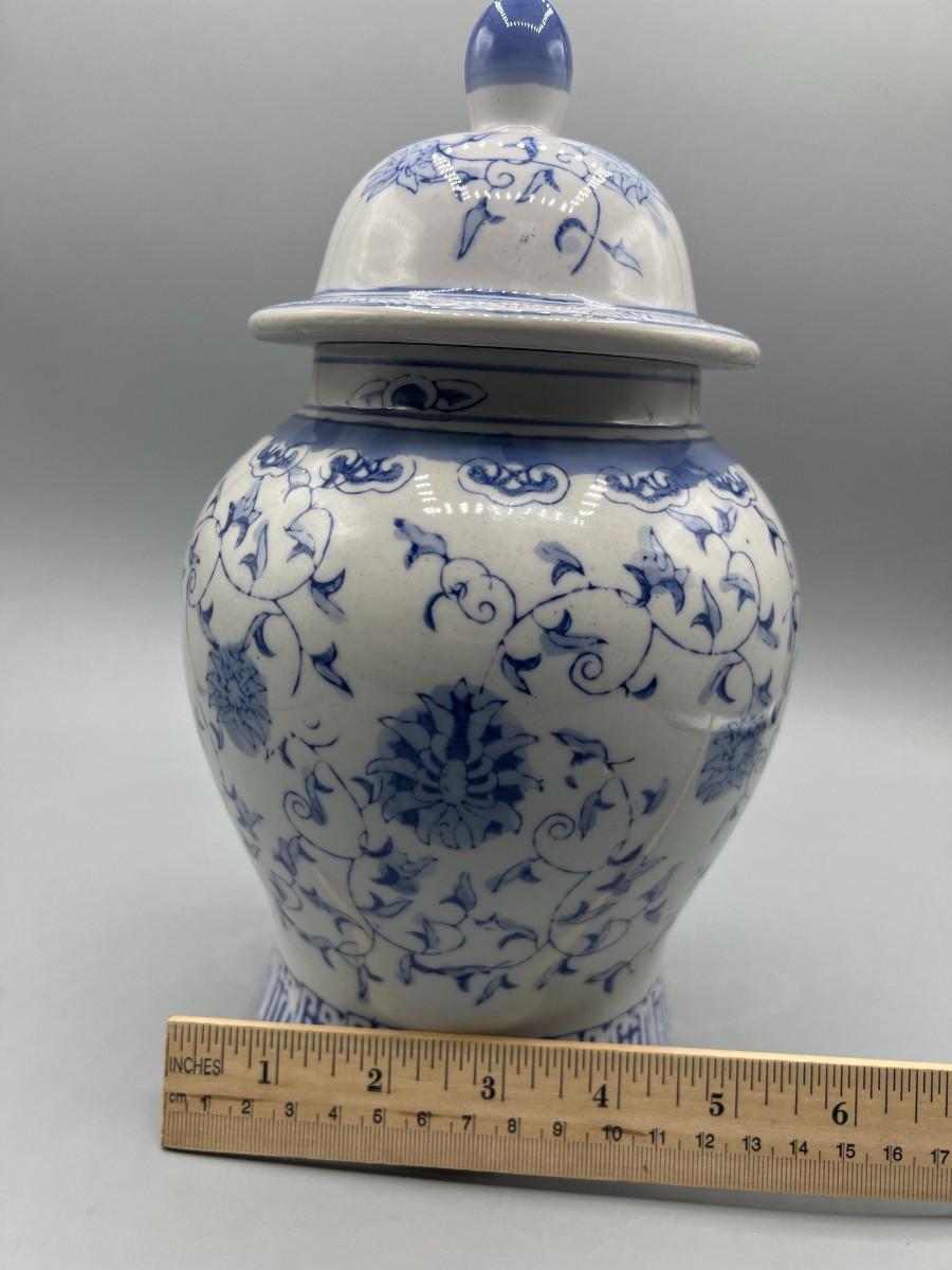 There is no significant cracks or chips to the ginger jar and is in overall good collectible or useable condition. Check pictures for more details and for sizing.