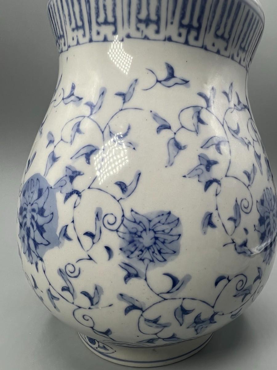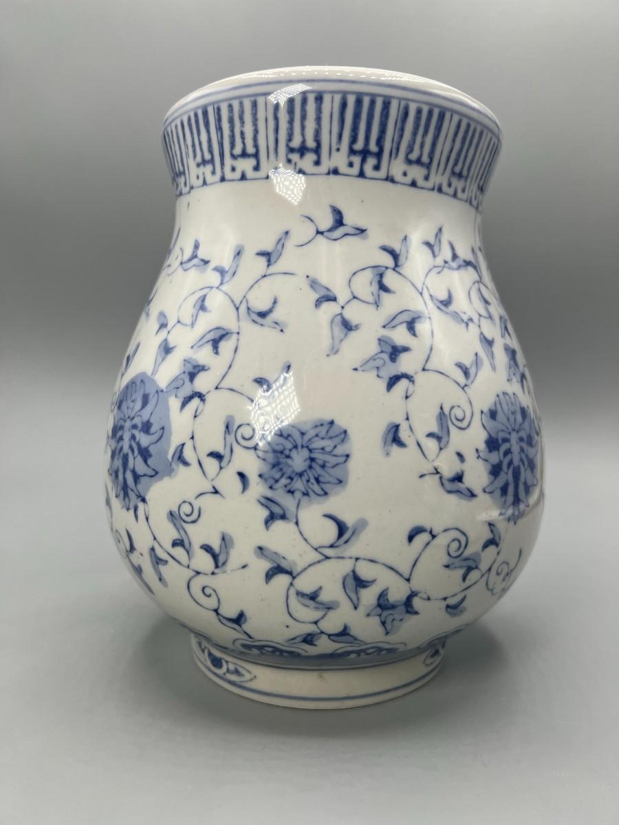Vintage Blue & White Ceramic Thin Floral Design Motif Ginger Jar