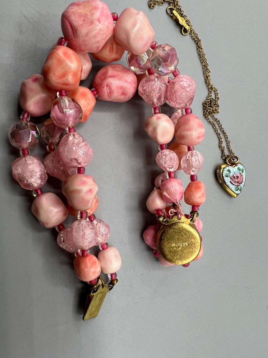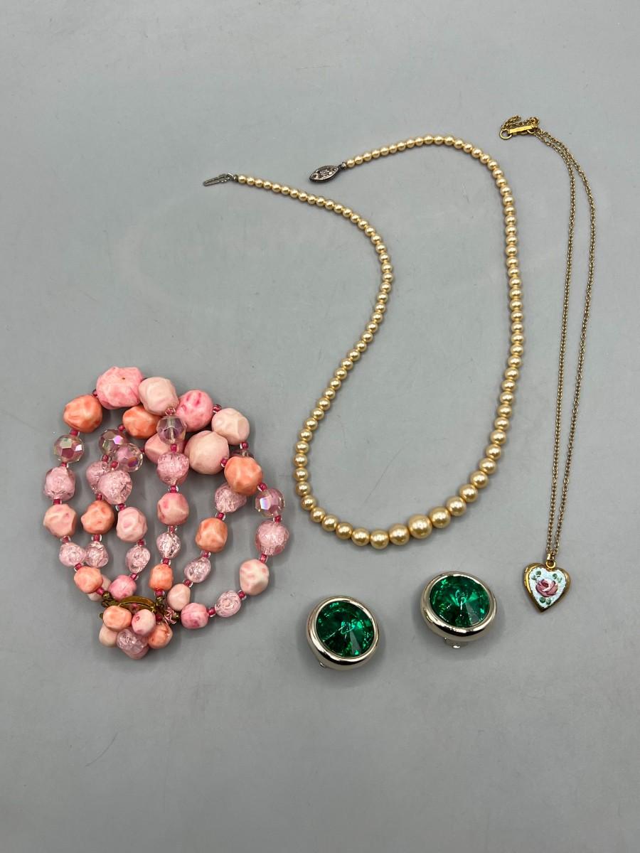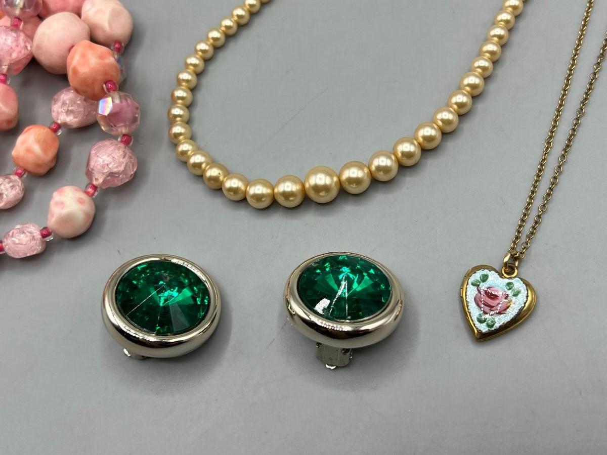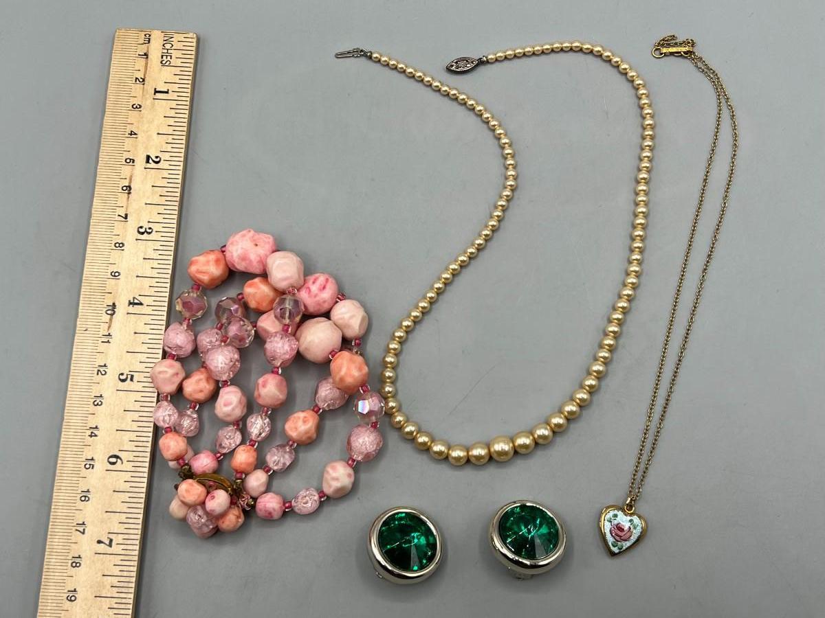 Vintage Costume Jewelry Marvella Faux White Pearl Necklace, Clip On Earrings, Heart Locket, & More