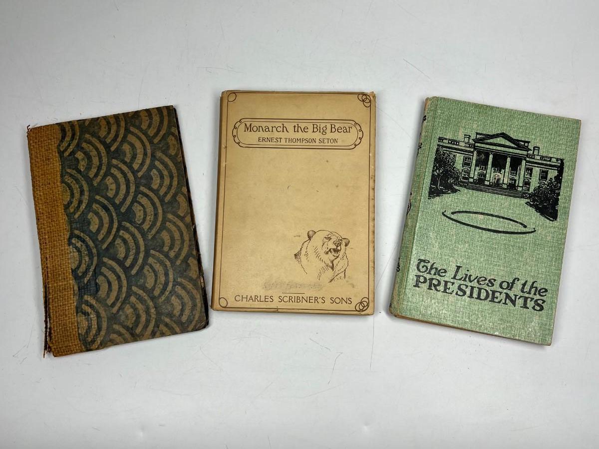 Lot of Vintage Antique Books Monarch the Big Bear, The Lives of the Presidents, & Pass the Torch