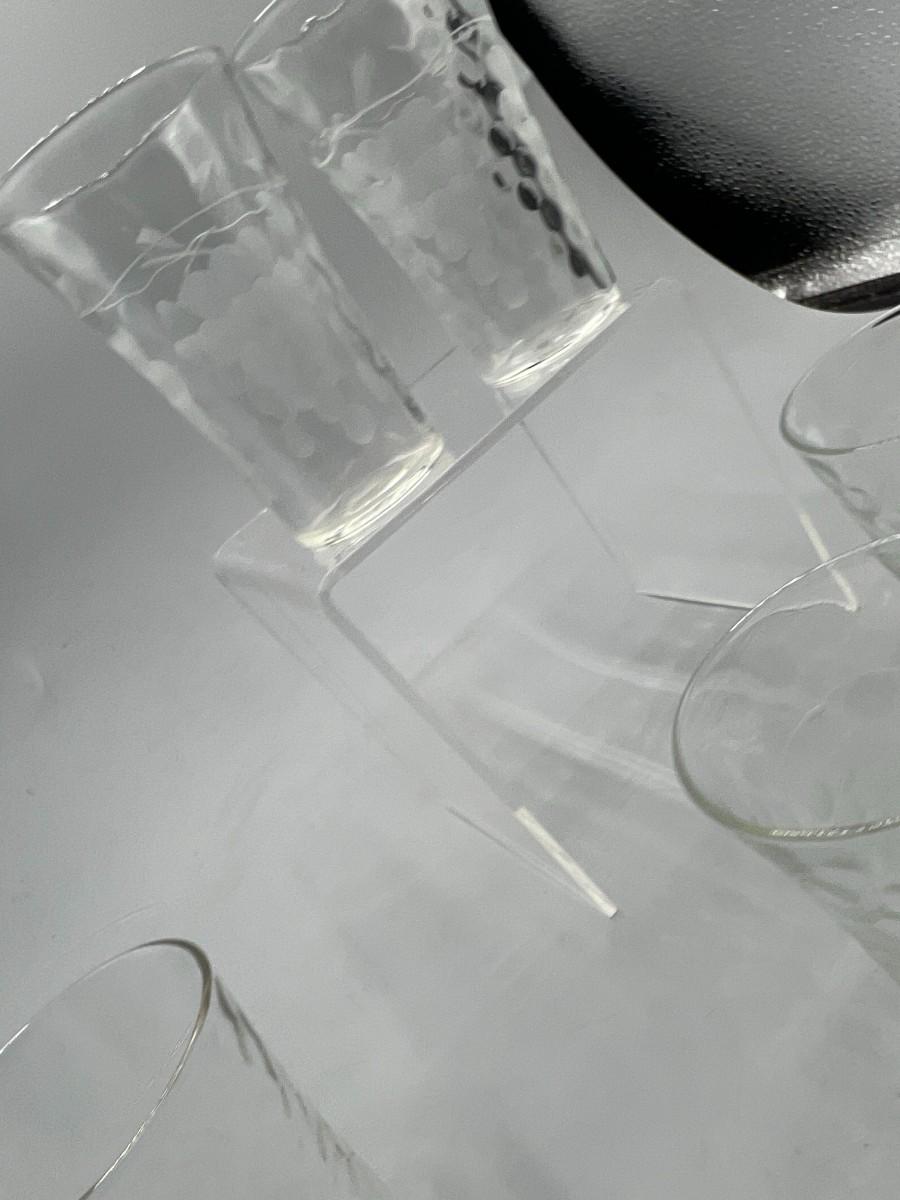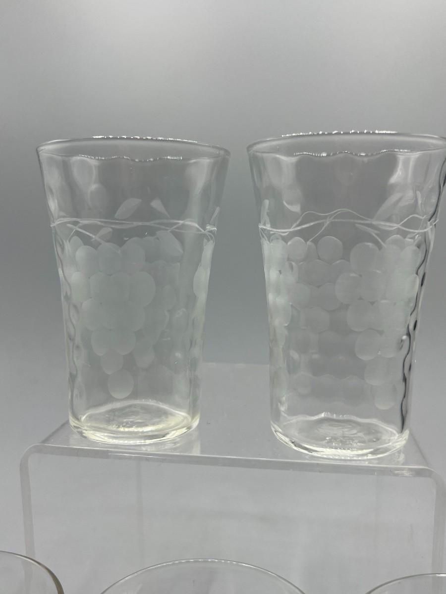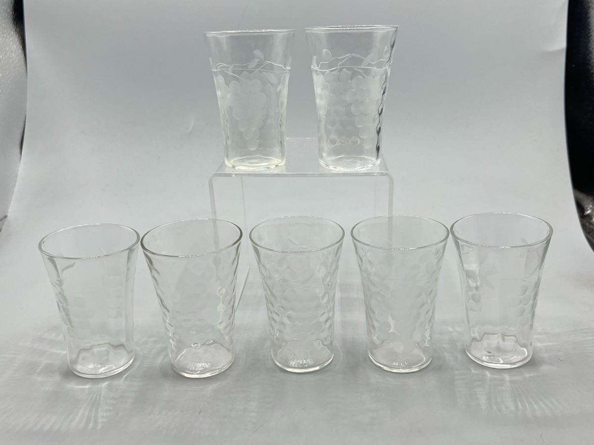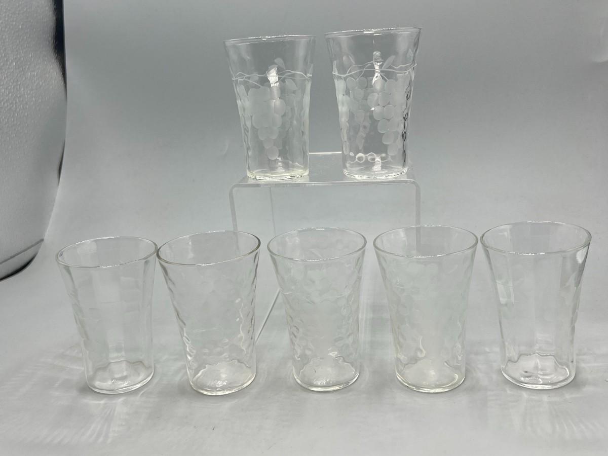 Vintage Dimpled & Grapevine Etched Juice Glasses. Set of 7, one of is only dimpled not etched. Vintage condition.