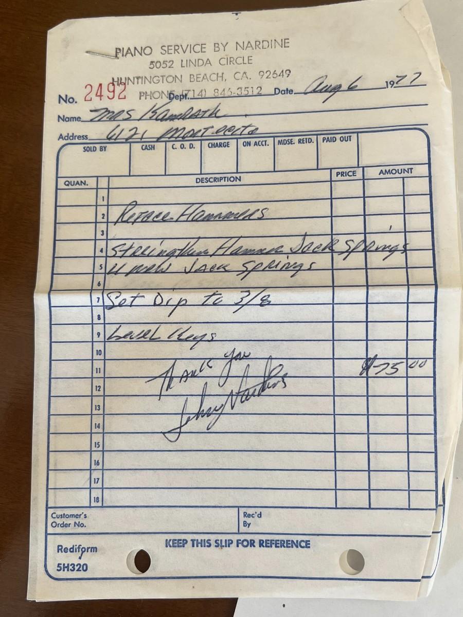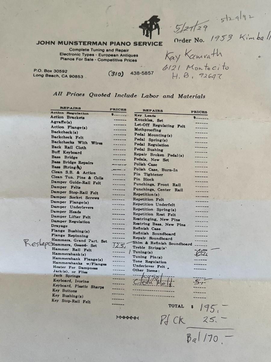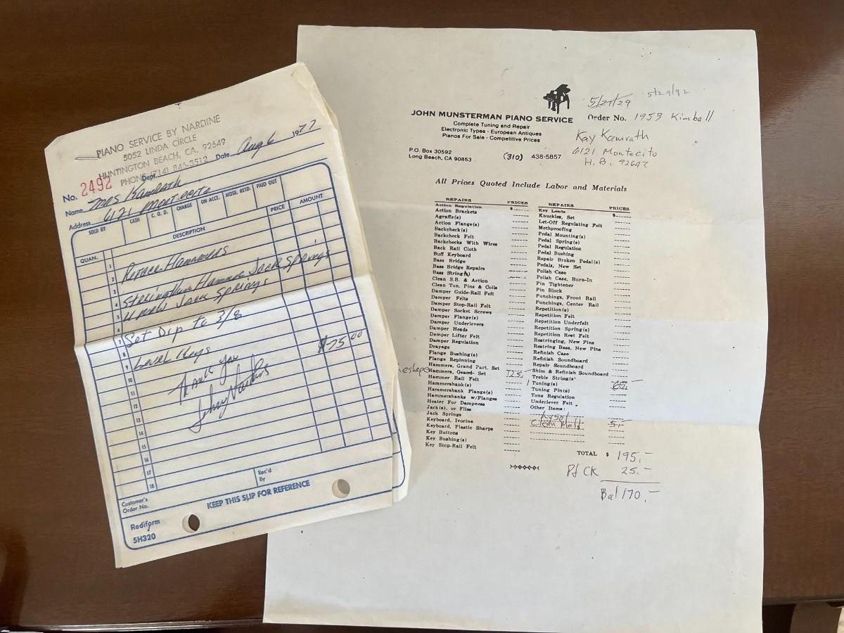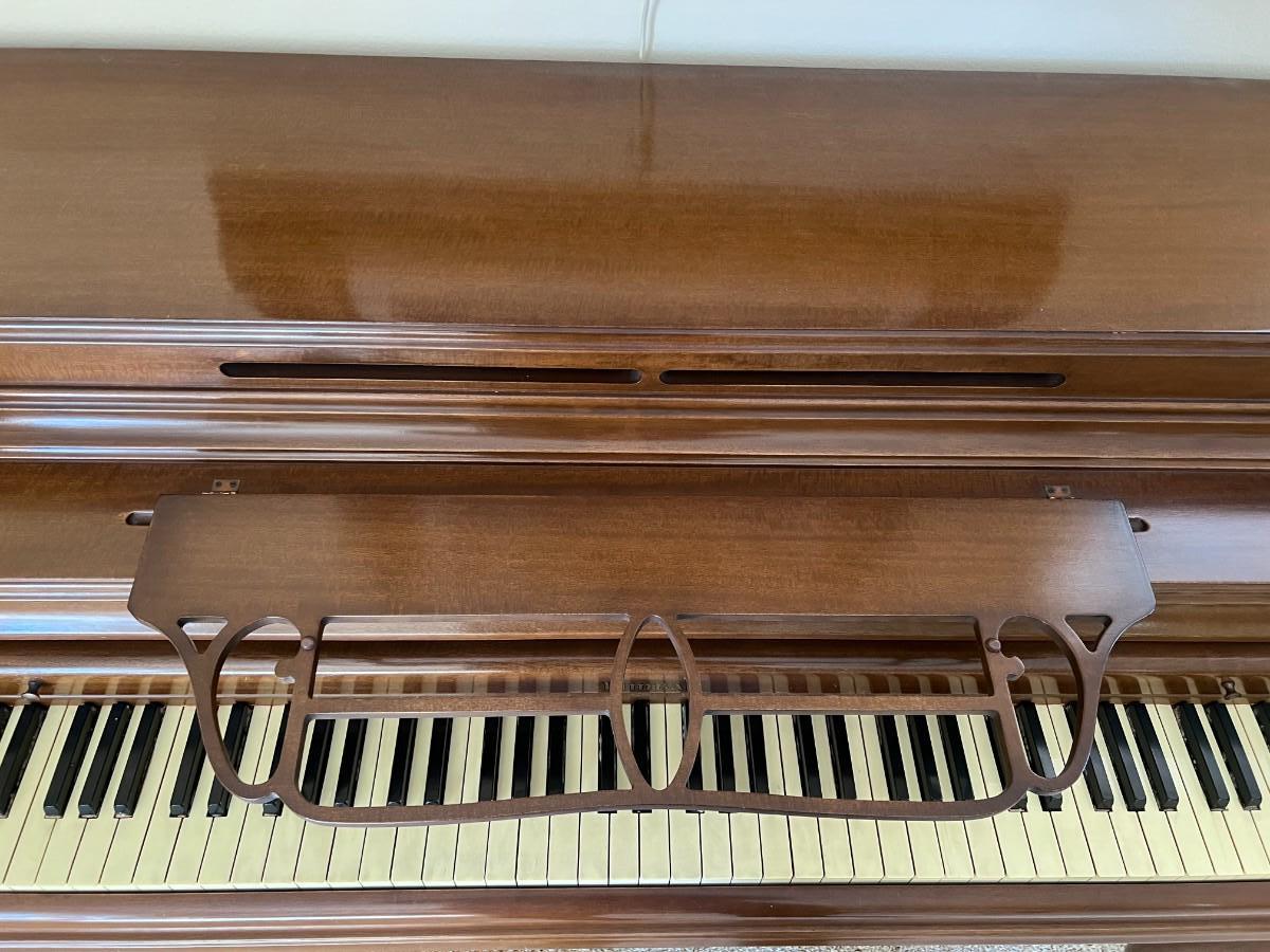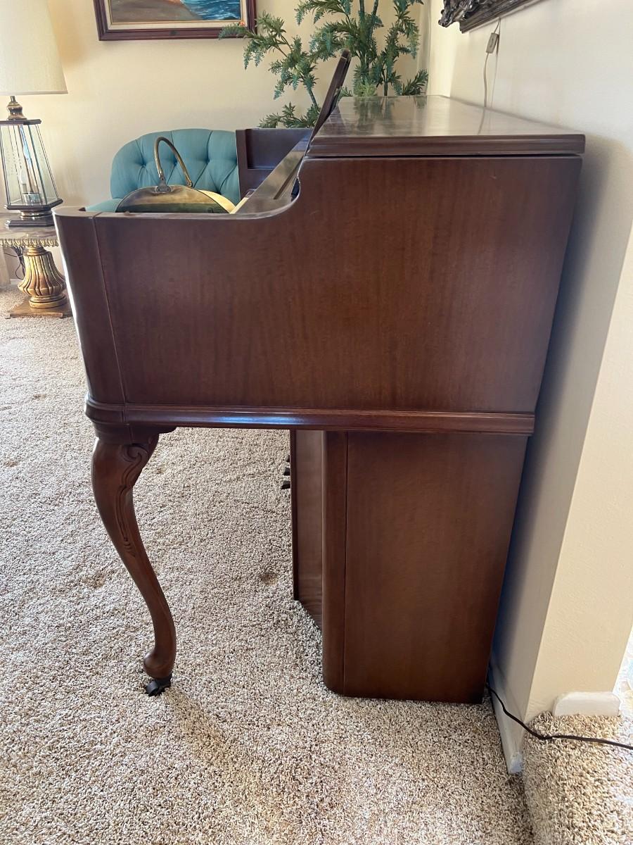There is some light vintage wear to the piano, but there is no significant damage and is in overall good collectible or displayable condition. There are some repair receipts, the piano sounds good and plays well. Check pictures for more details and for sizing.