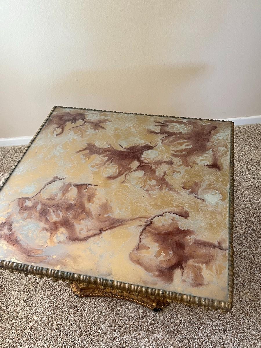There is no significant damage to the side table and is in overall good collectible or displayable condition. Check pictures for more details and for sizing.