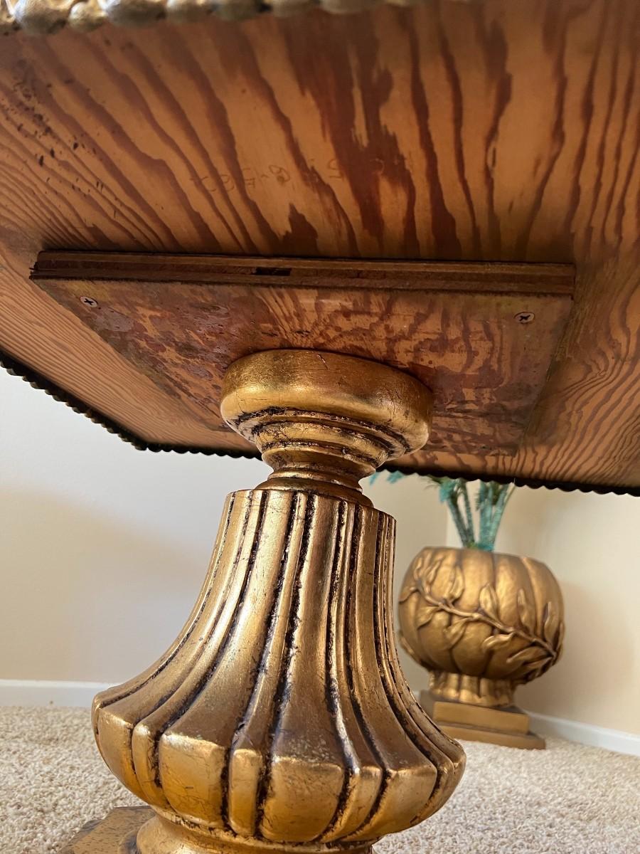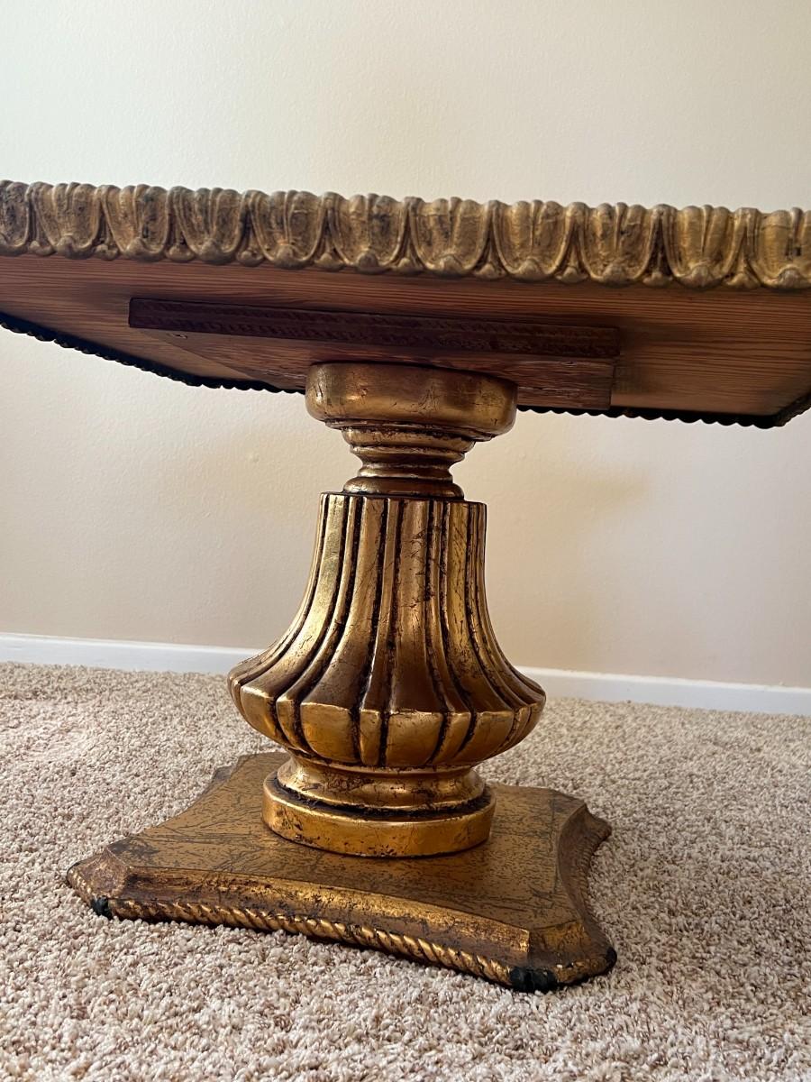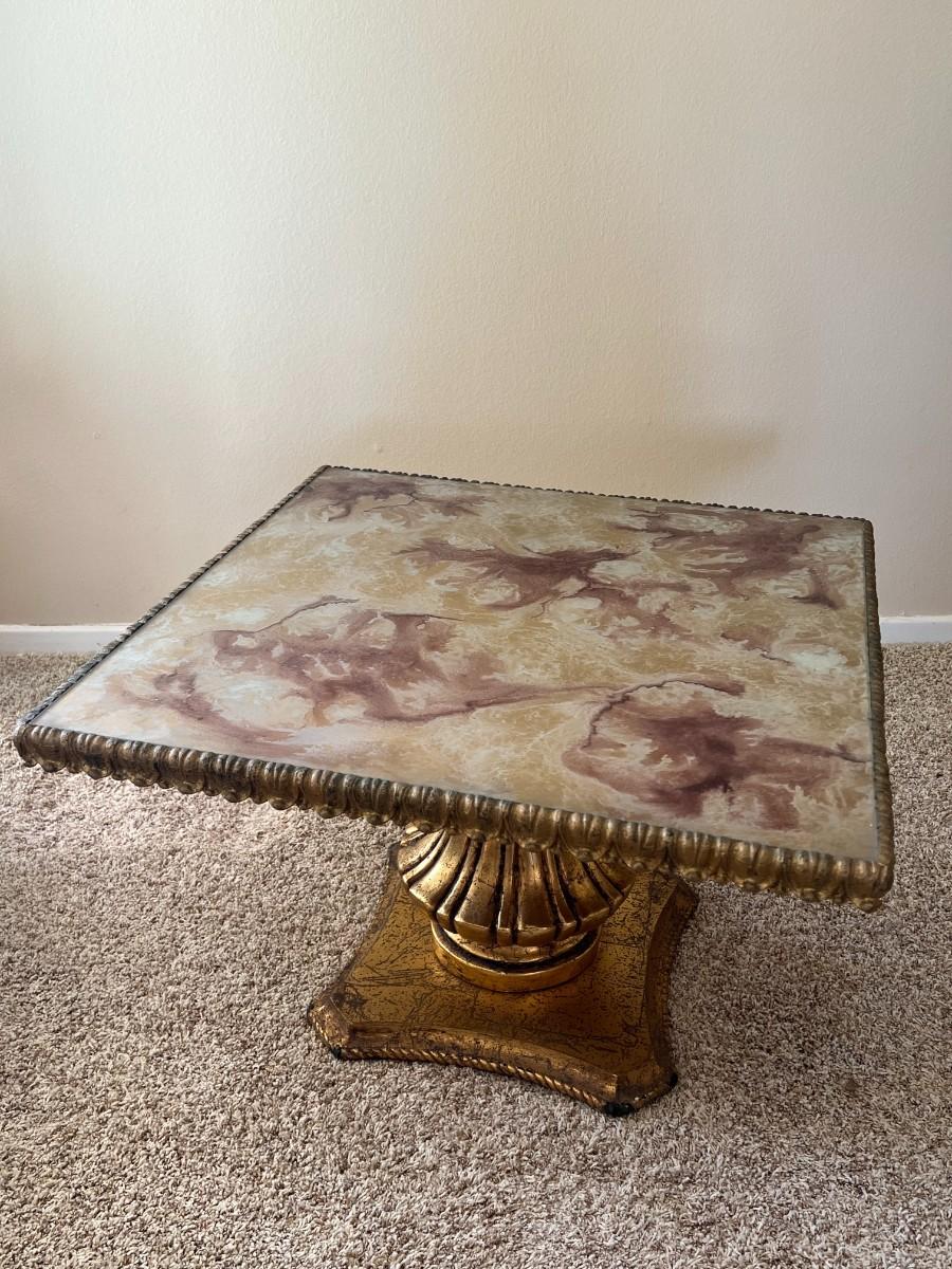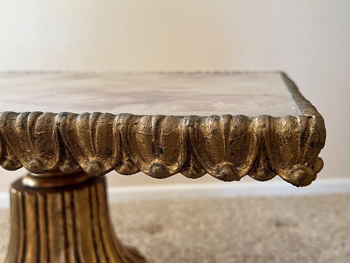 Vintage Hollywood Regency Side Table with Gilt Pedestal Base and Marble Top