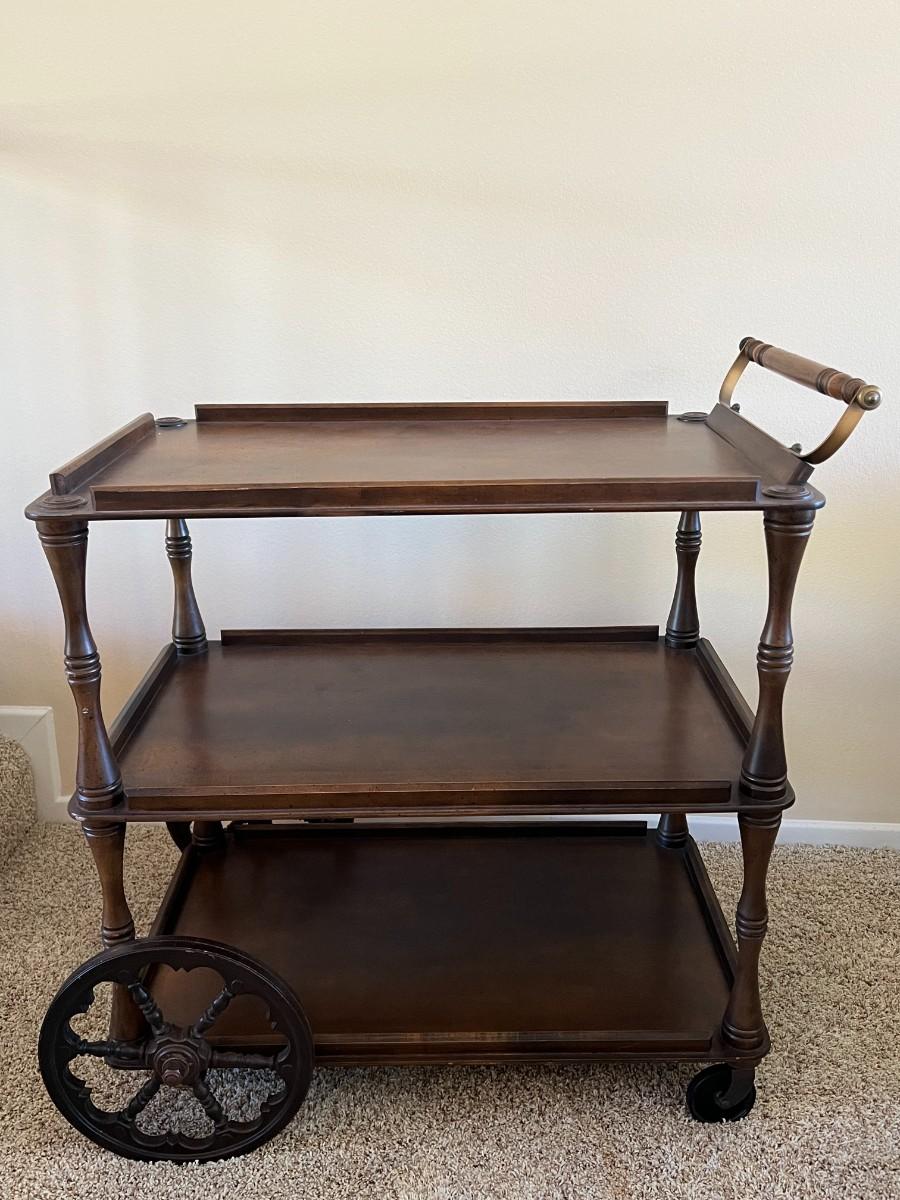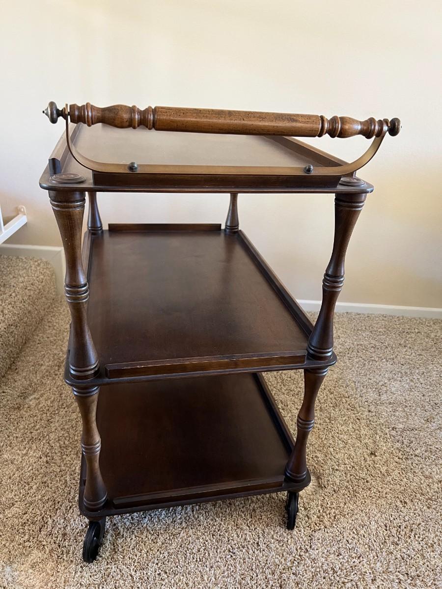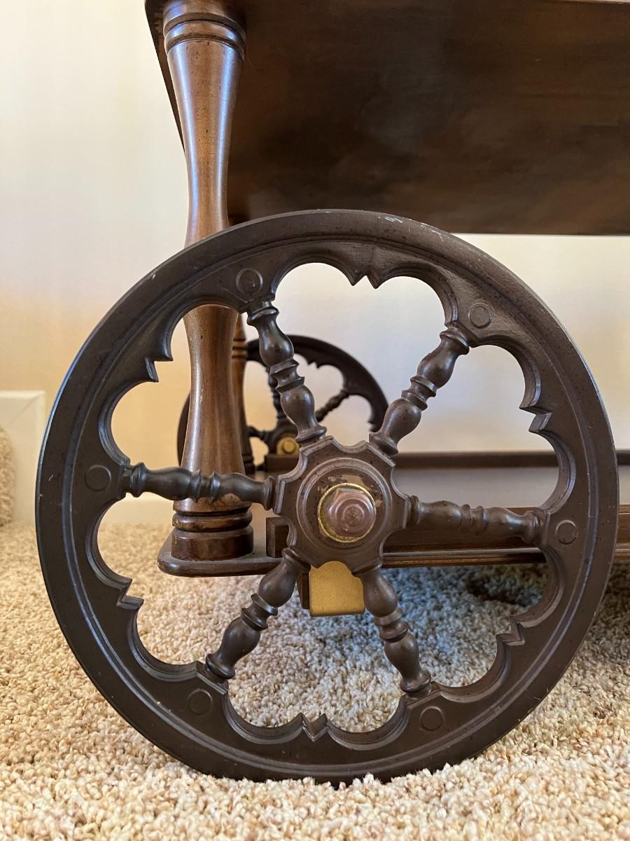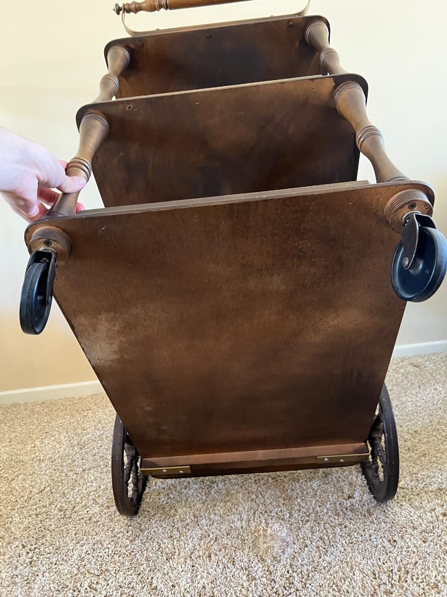 Antique 3 Tier Mahogany Wood Serving Tea Bar Cart Tea Wagon