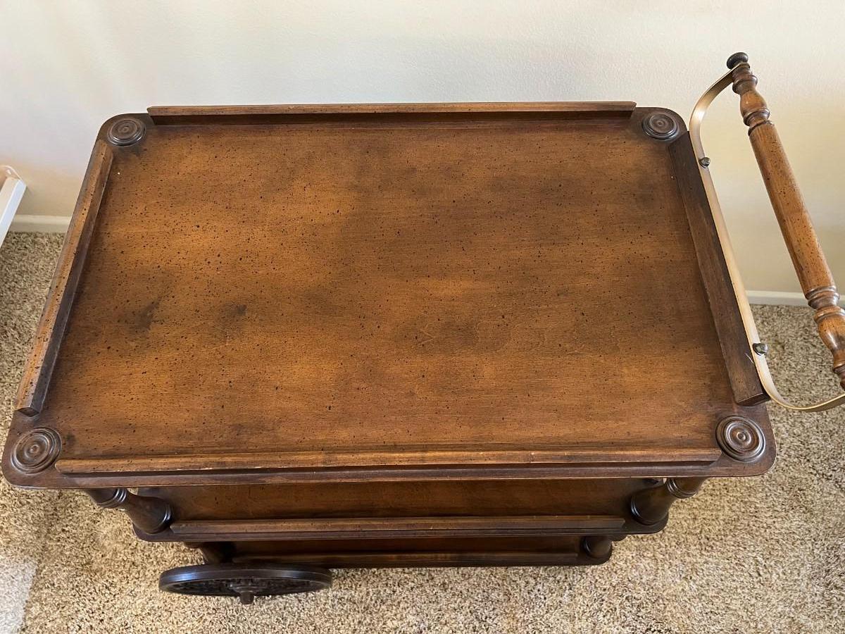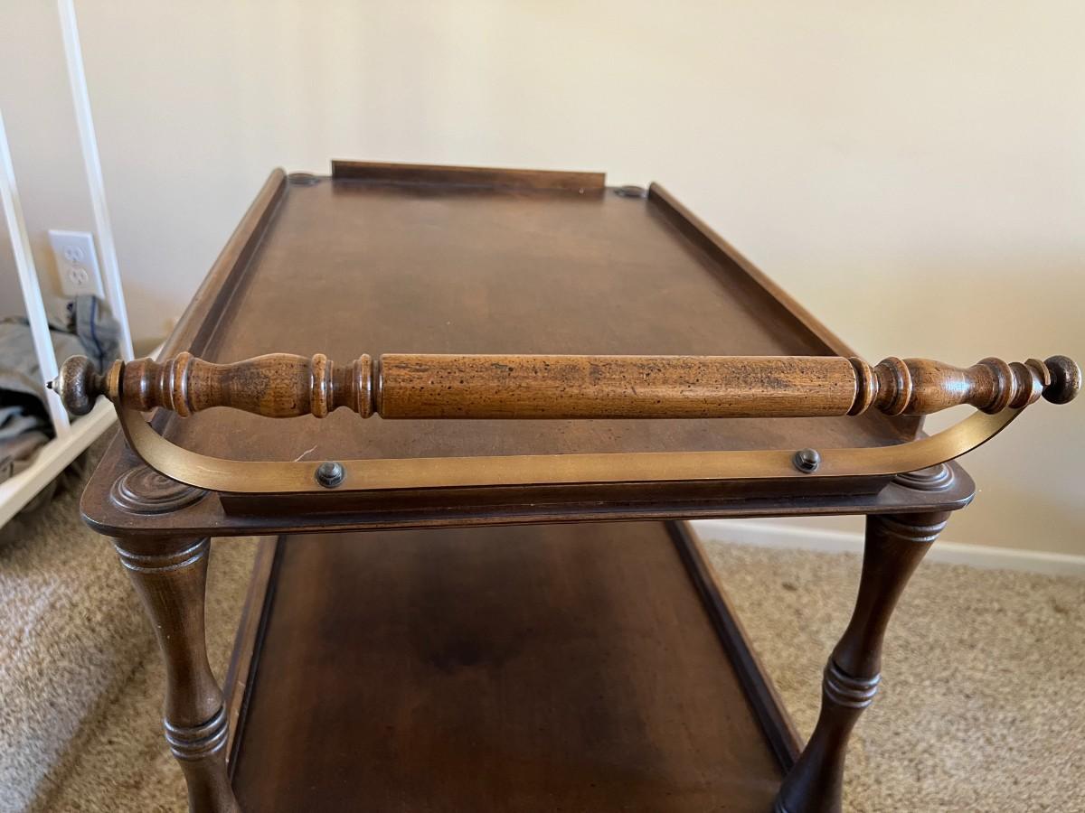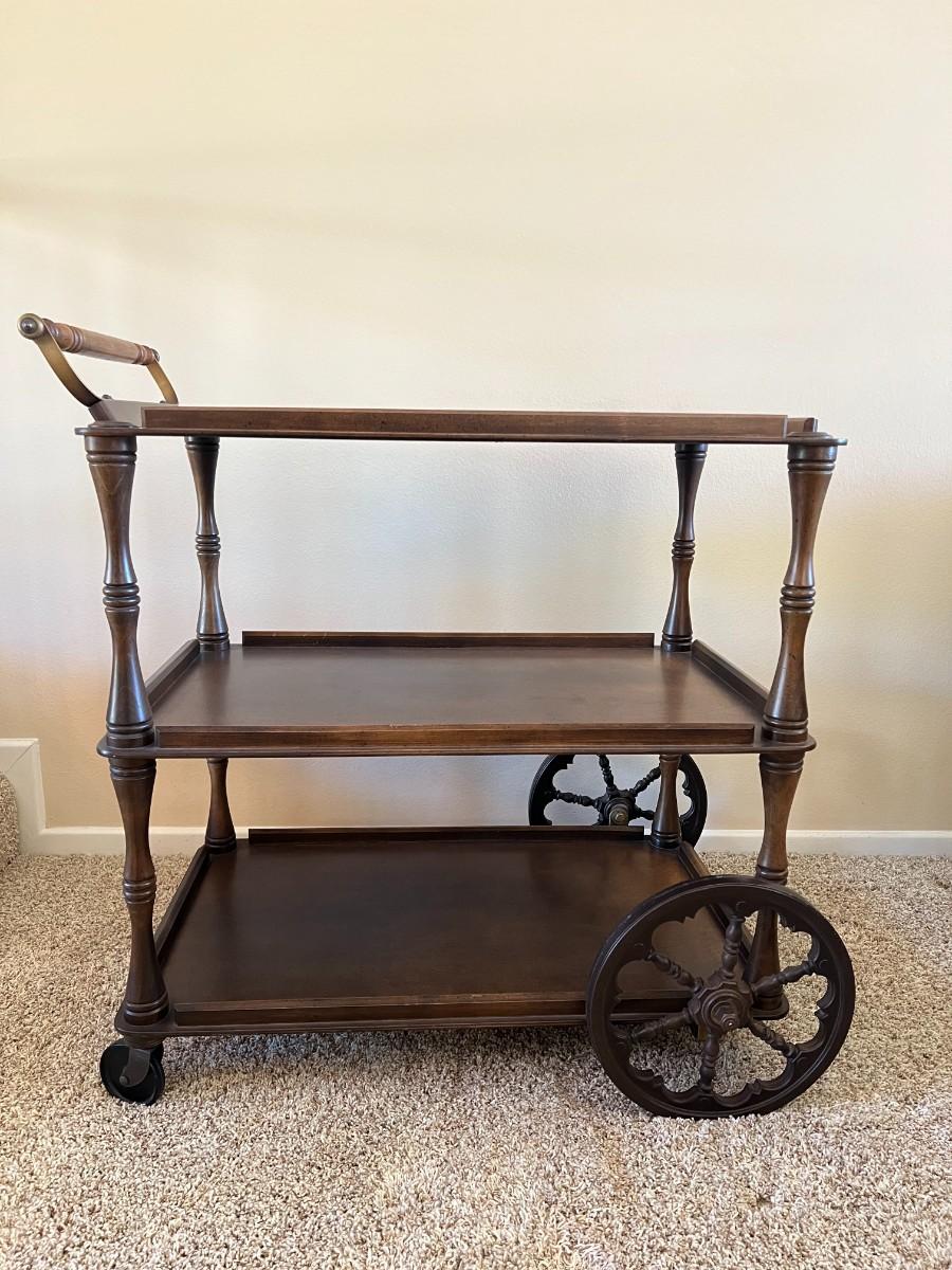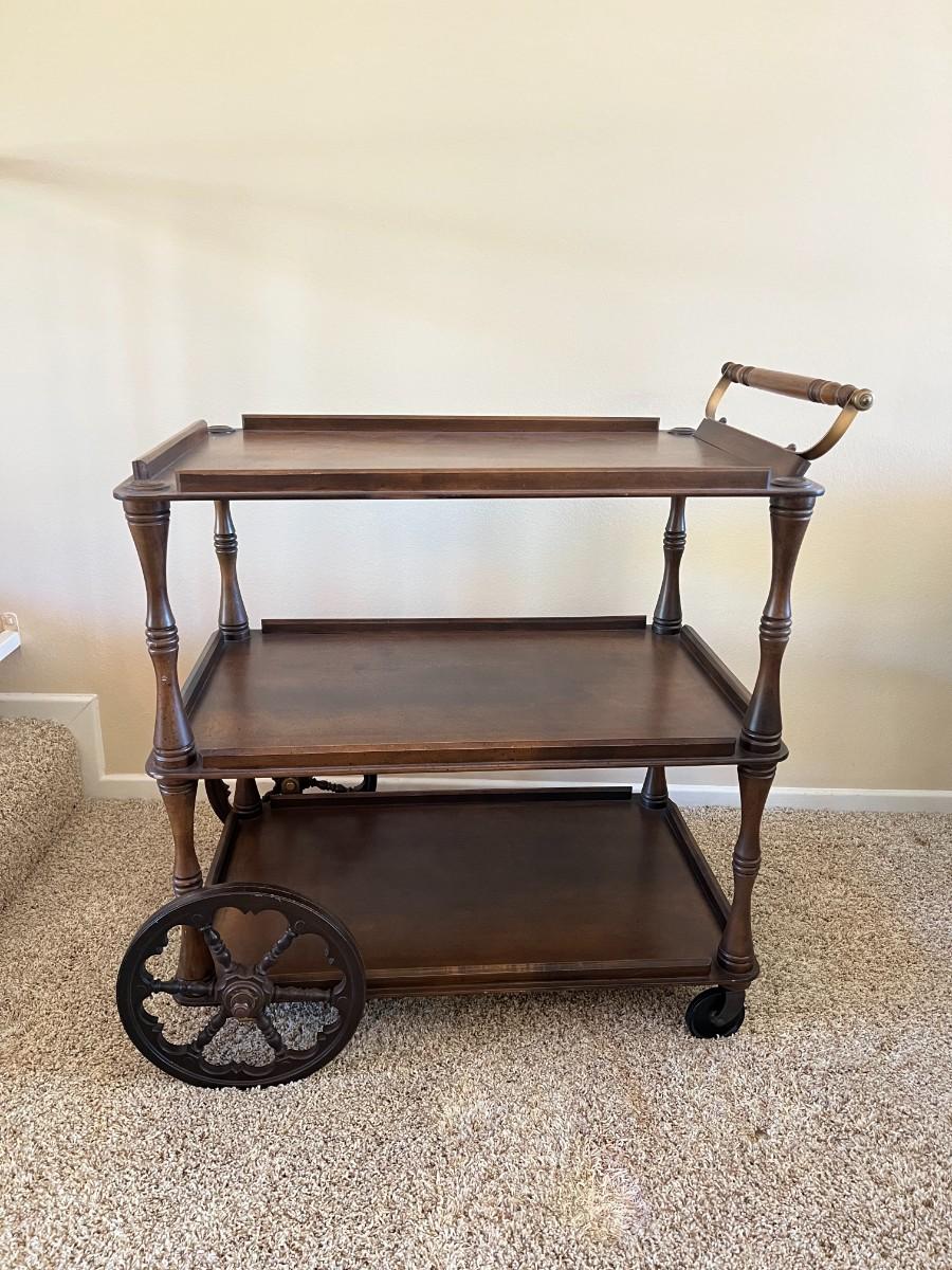 Antique 3 Tier Mahogany Wood Serving Tea Bar Cart Tea Wagon