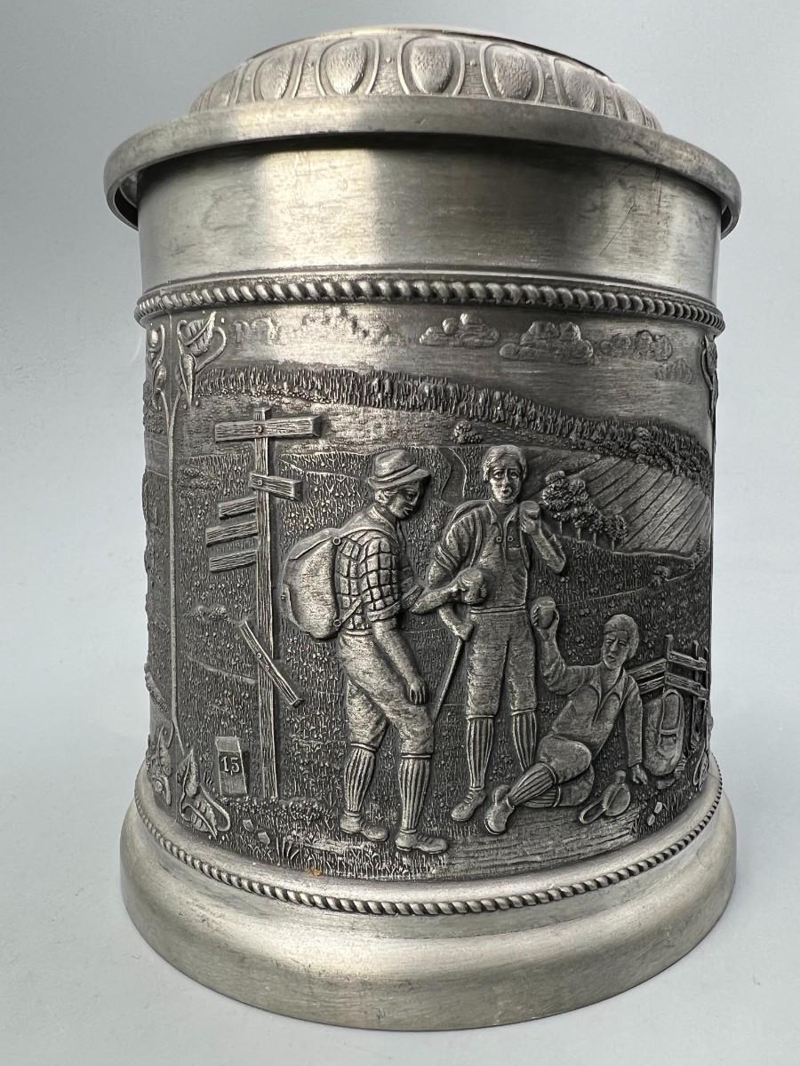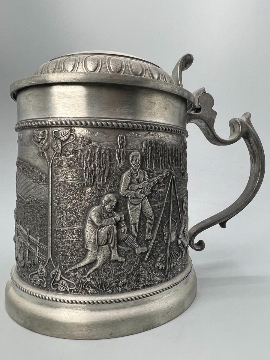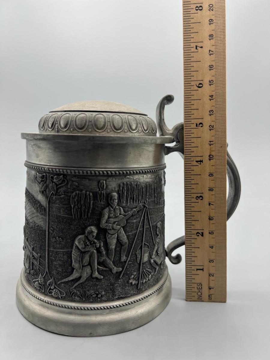 Vintage Zinn Pewter Stein Mug Germany Lidded Beer Stein