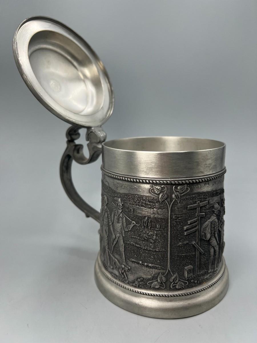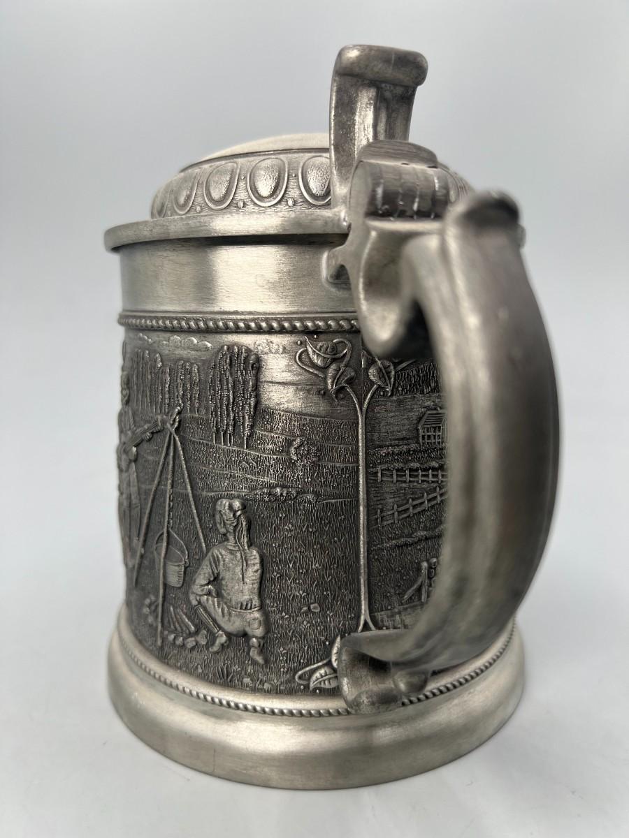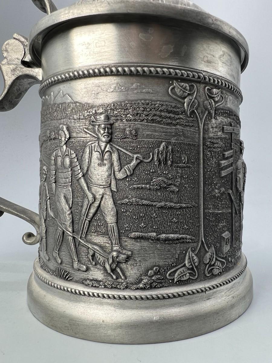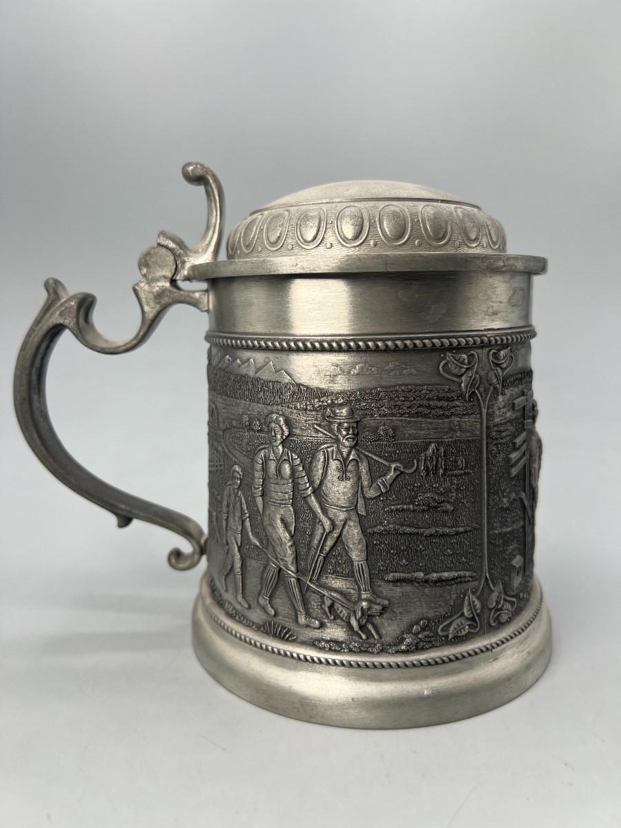 Vintage Zinn Pewter Stein Mug Germany Lidded Beer Stein