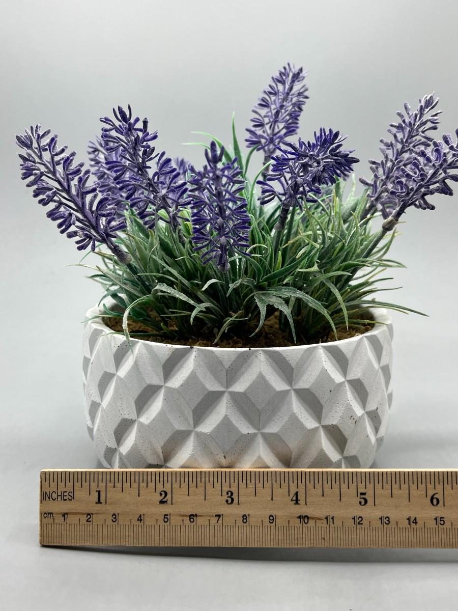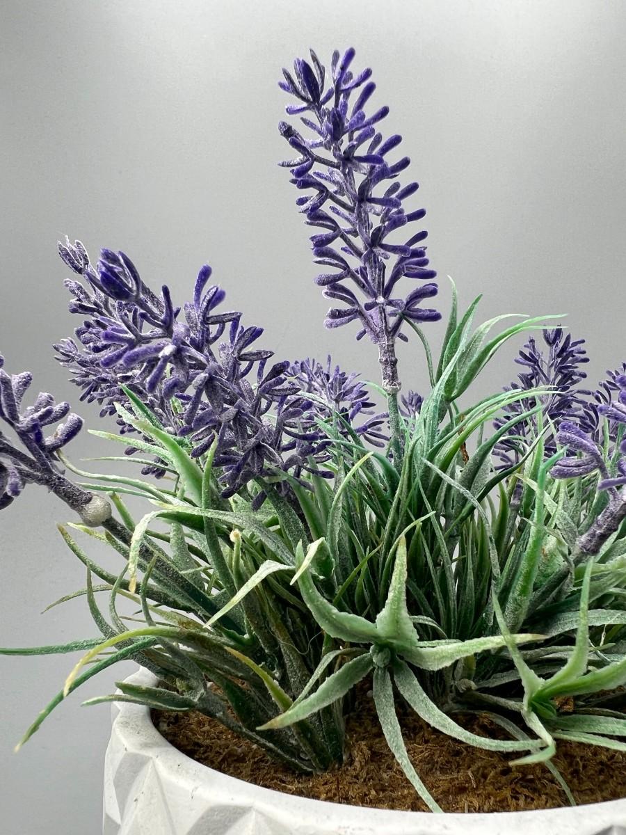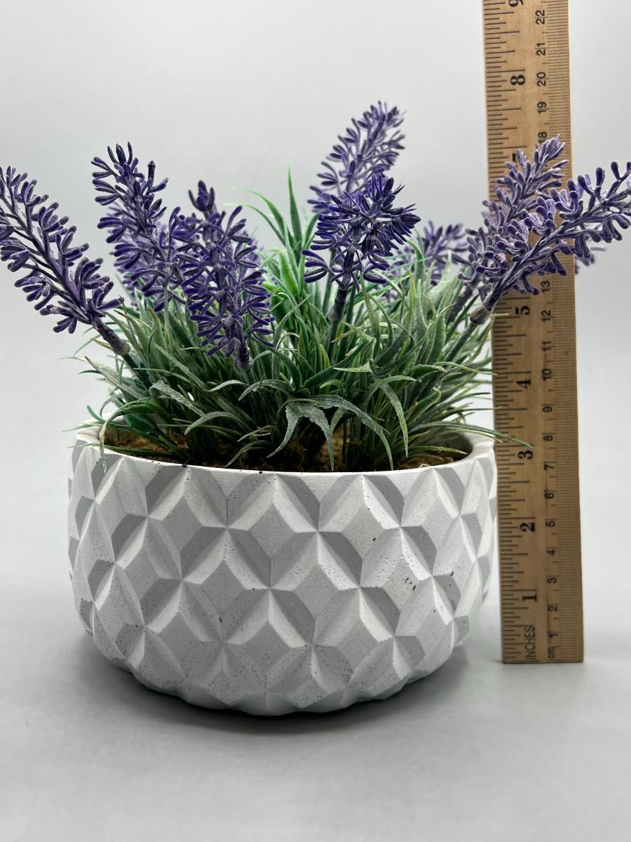 Small Artificial Faux Lavendar Plant in Geometric White Planter Pot