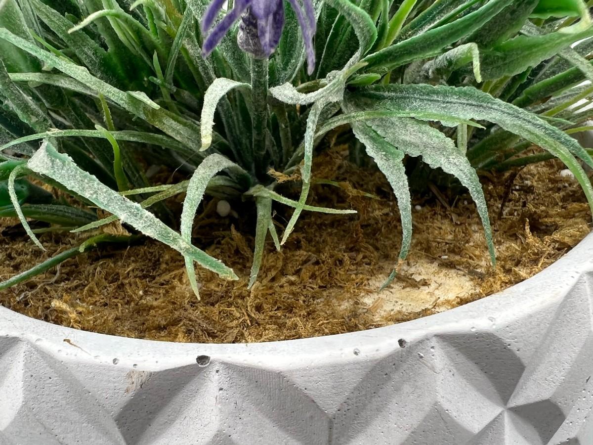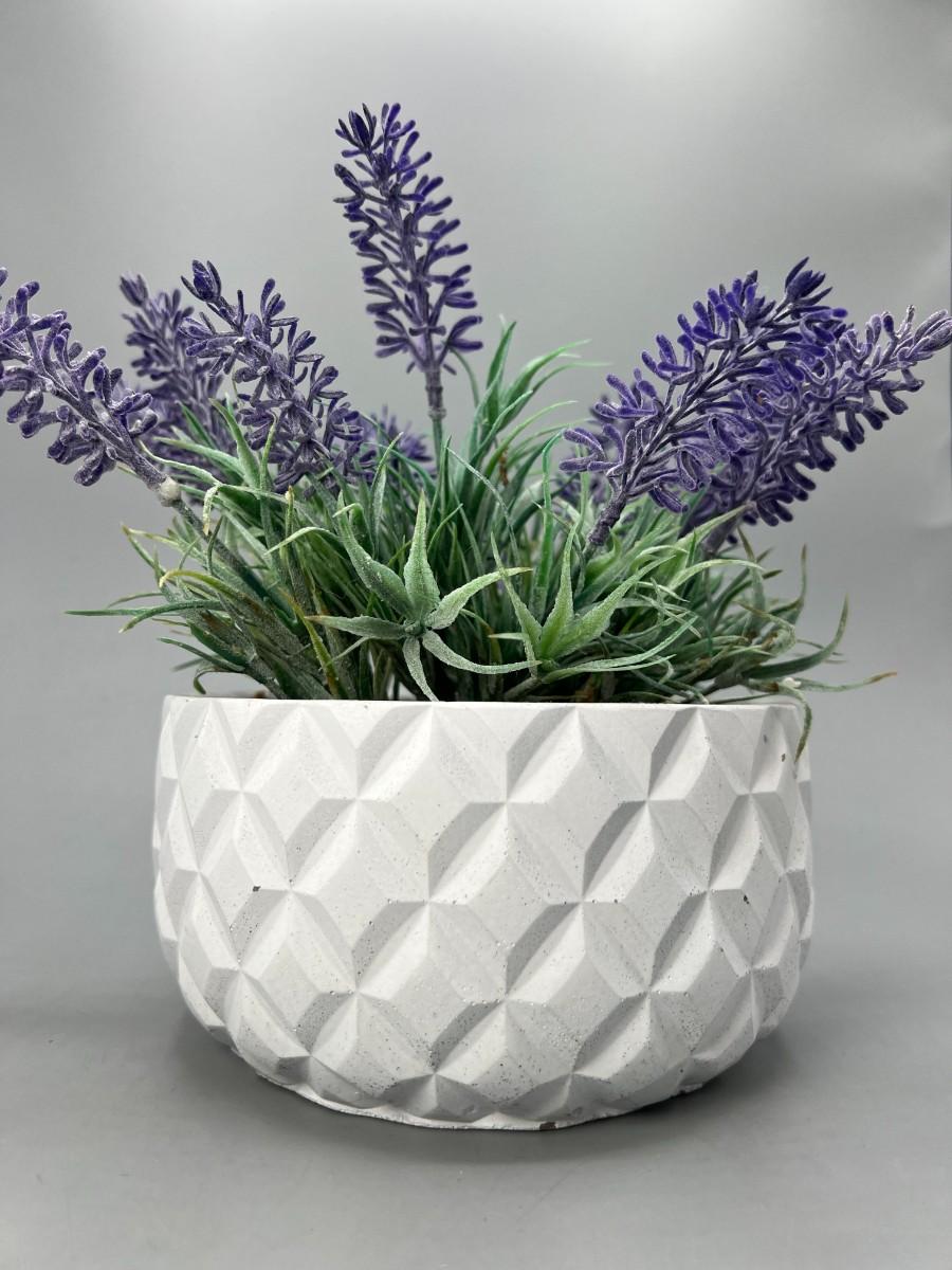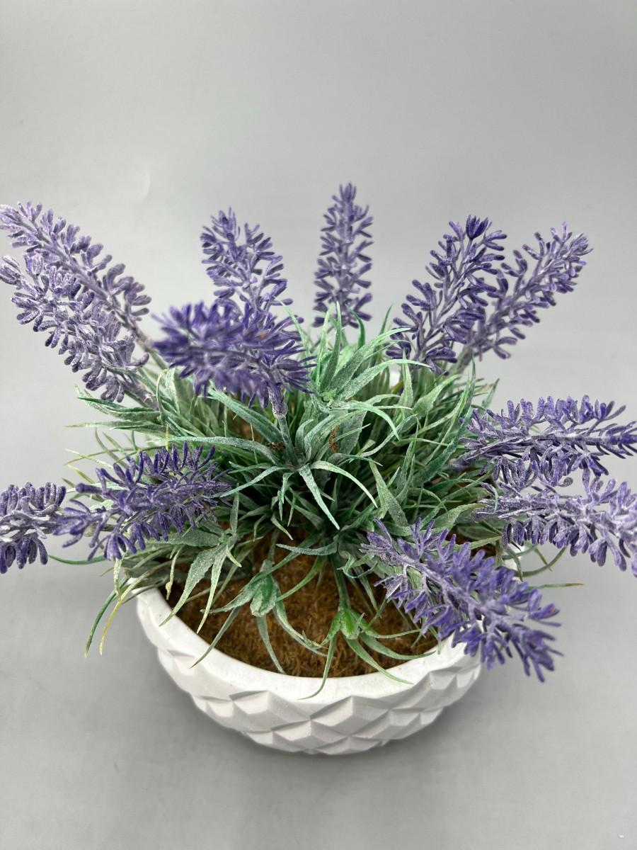 Small Artificial Faux Lavendar Plant in Geometric White Planter Pot