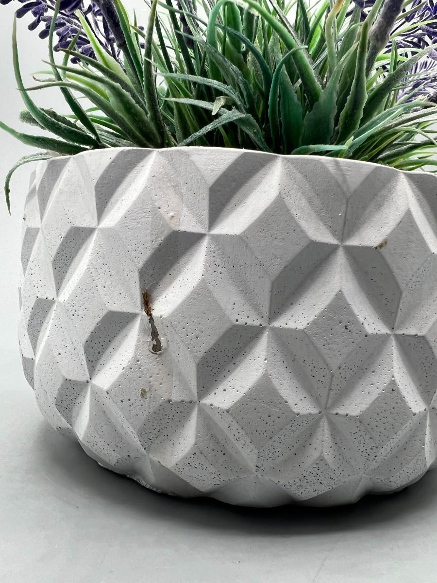 Small Artificial Faux Lavendar Plant in Geometric White Planter Pot. May be dusty but great decor for any room.