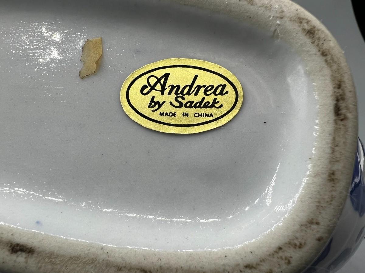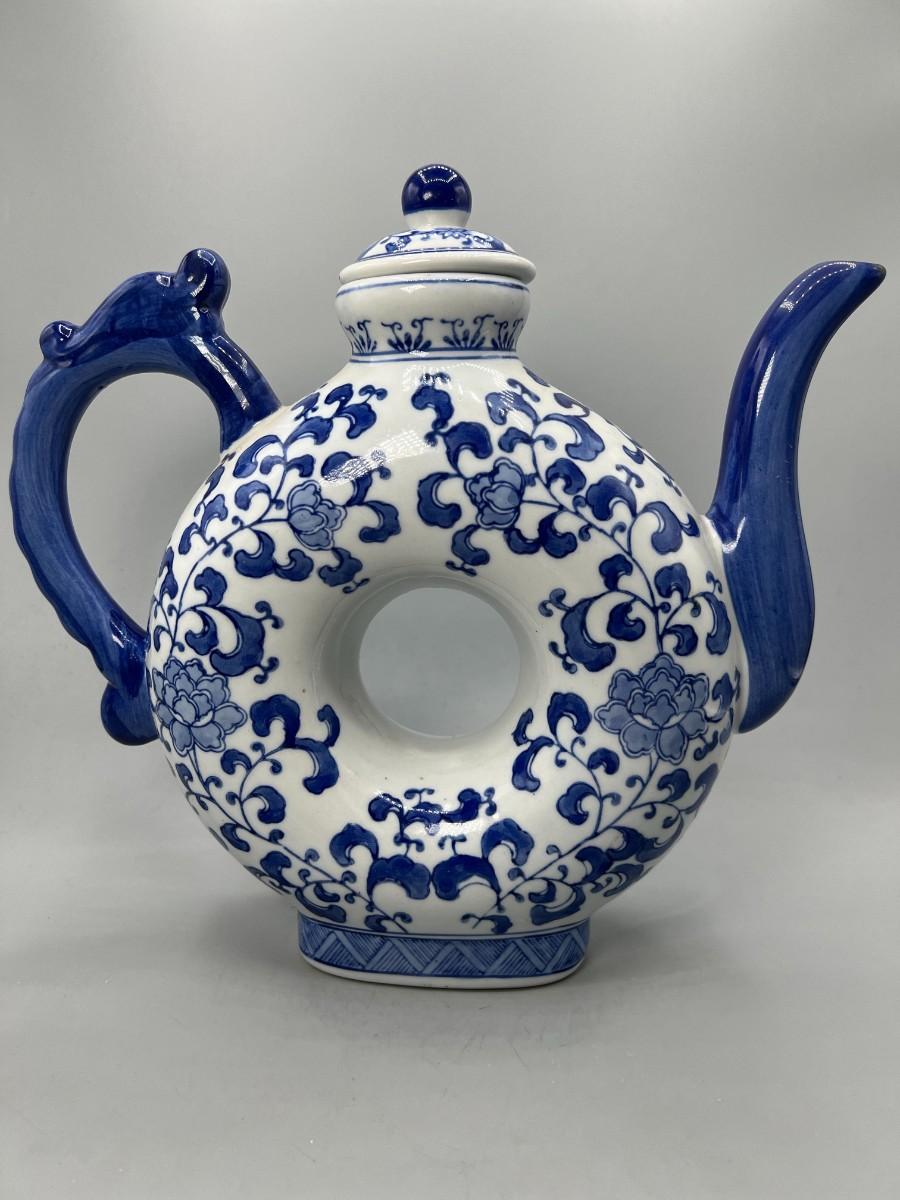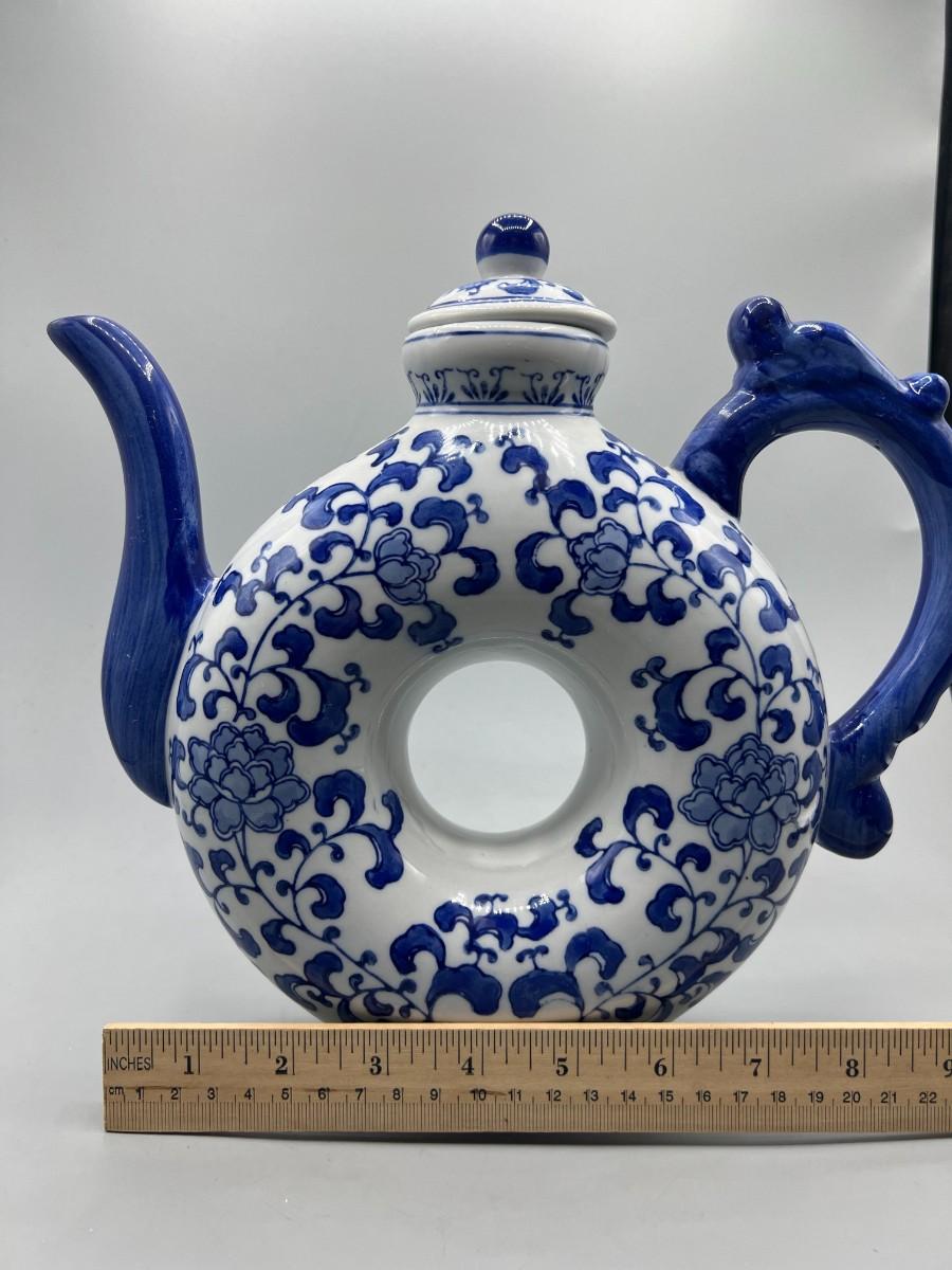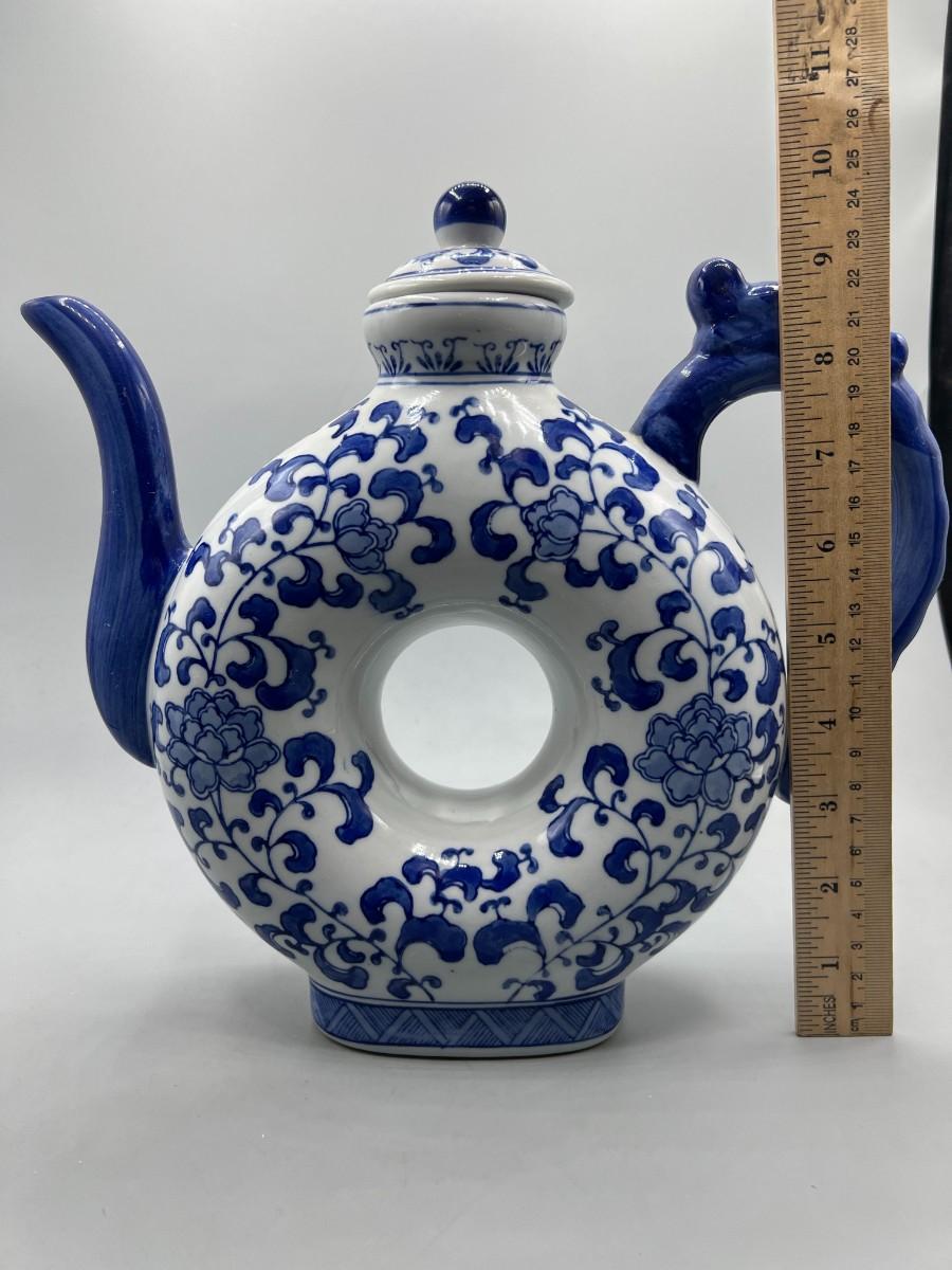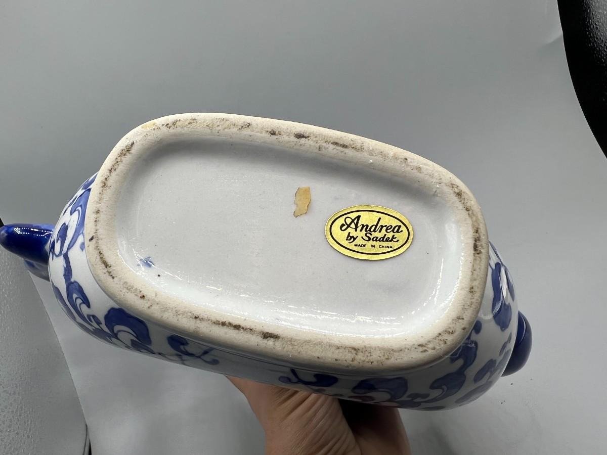 White & Blue Asian Style Floral Teapot Andrea by Sadak. Good vintage condition, displays nice. About 10" size.