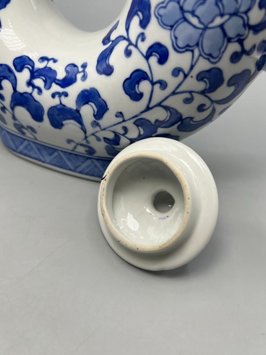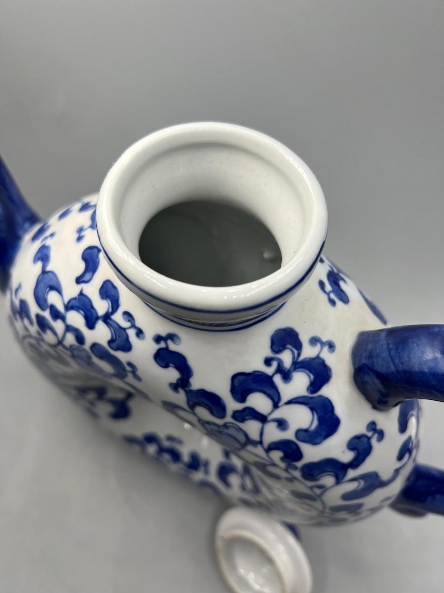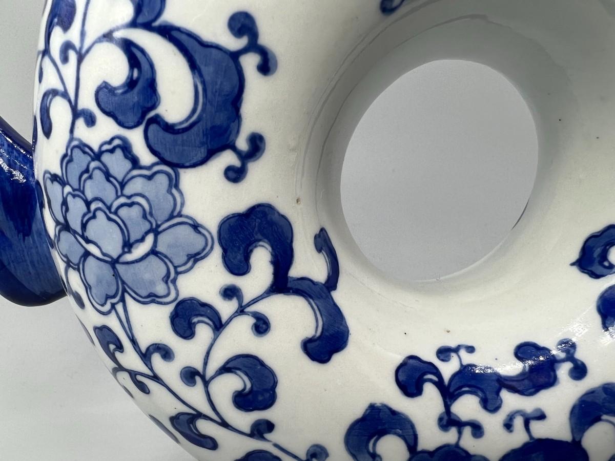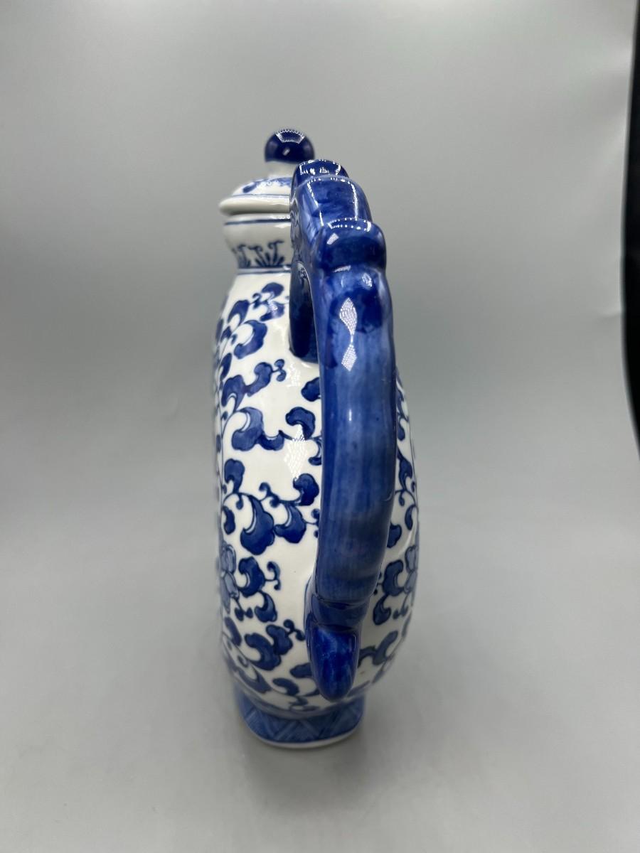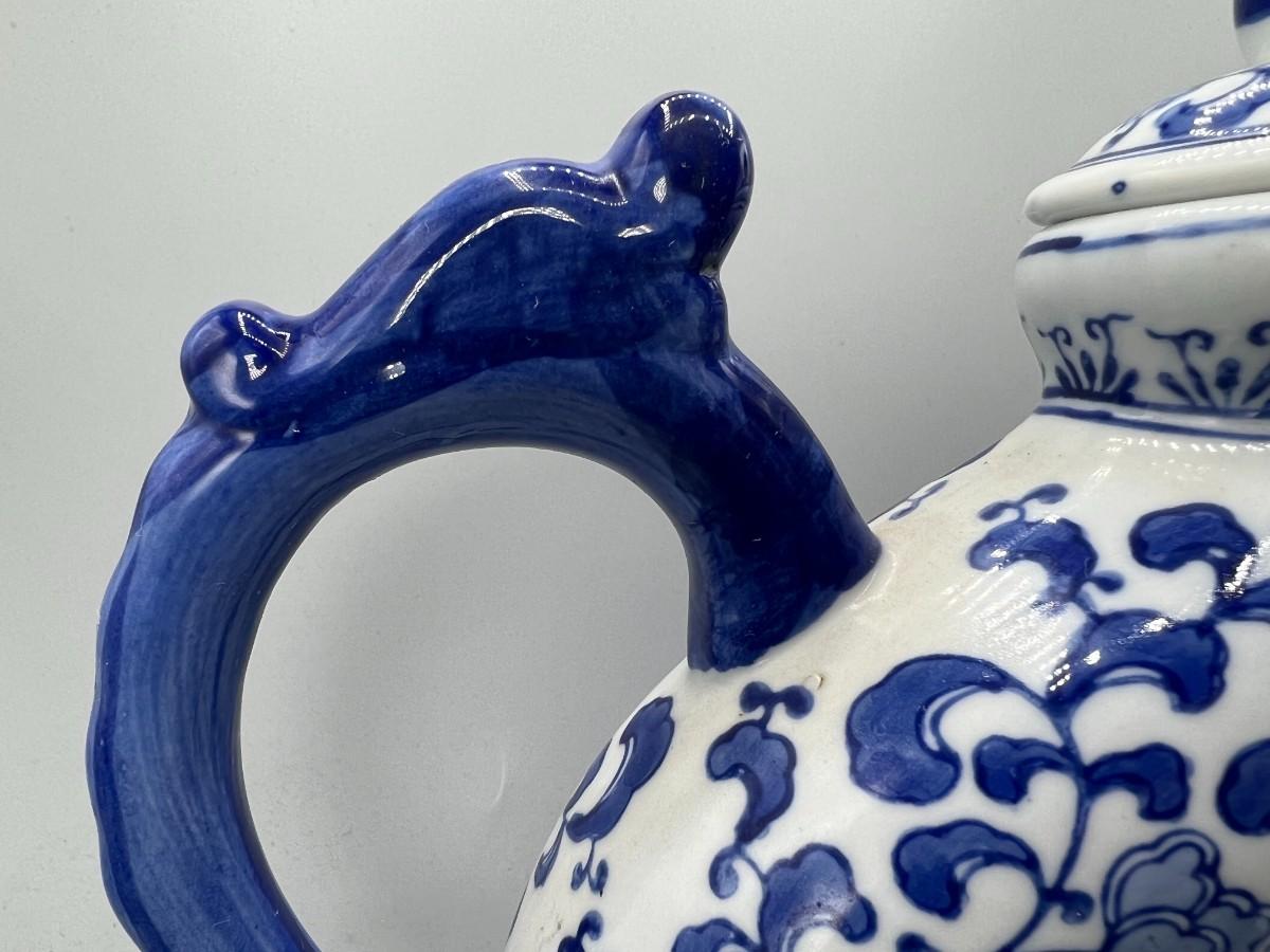 White & Blue Asian Style Floral Teapot Andrea by Sadak. Good vintage condition, displays nice. About 10" size.