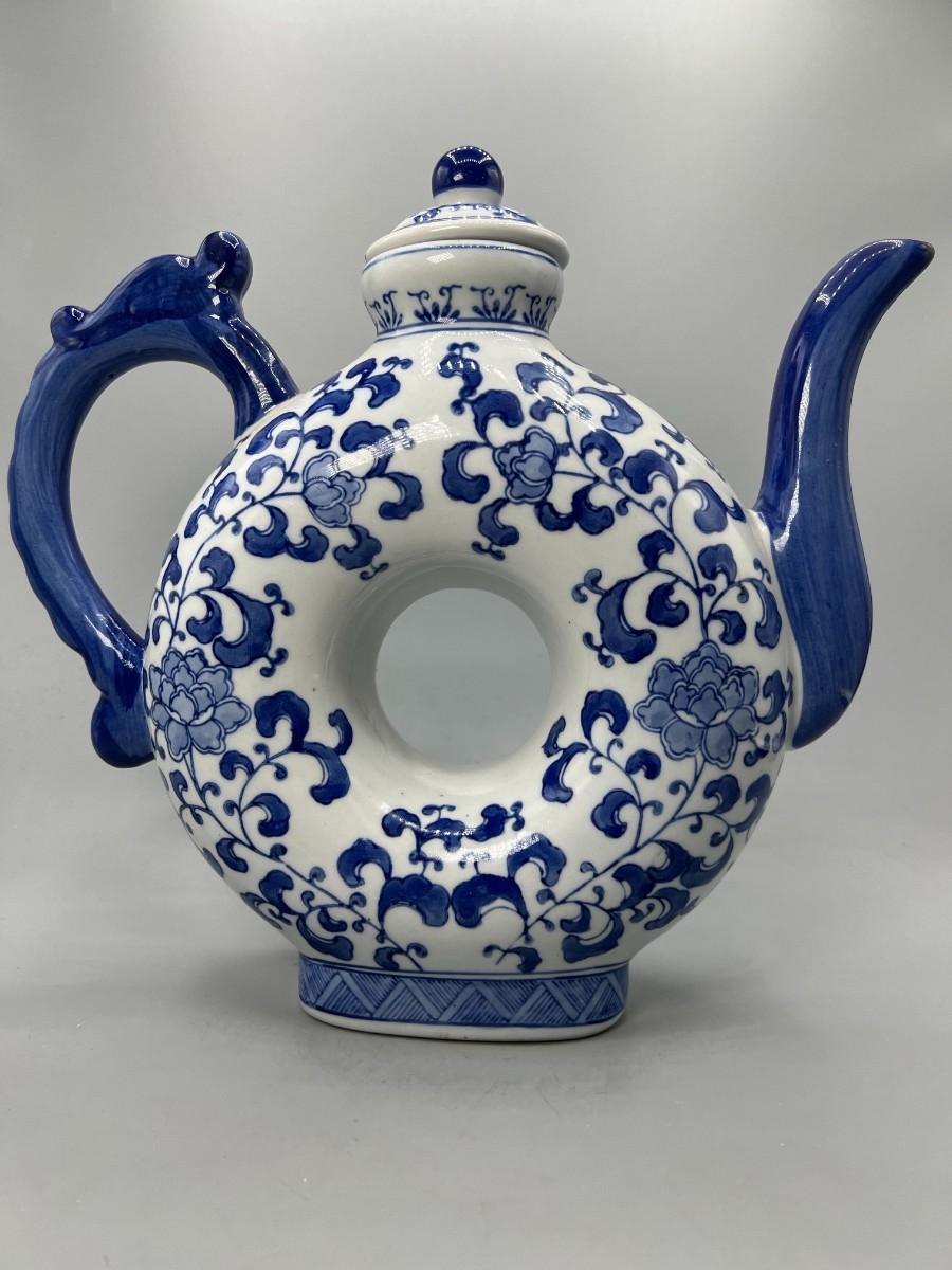 White & Blue Asian Style Floral Teapot Andrea by Sadak