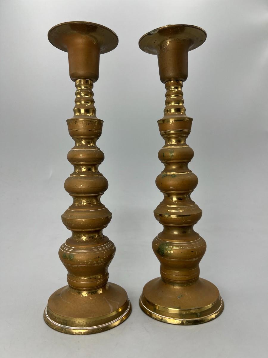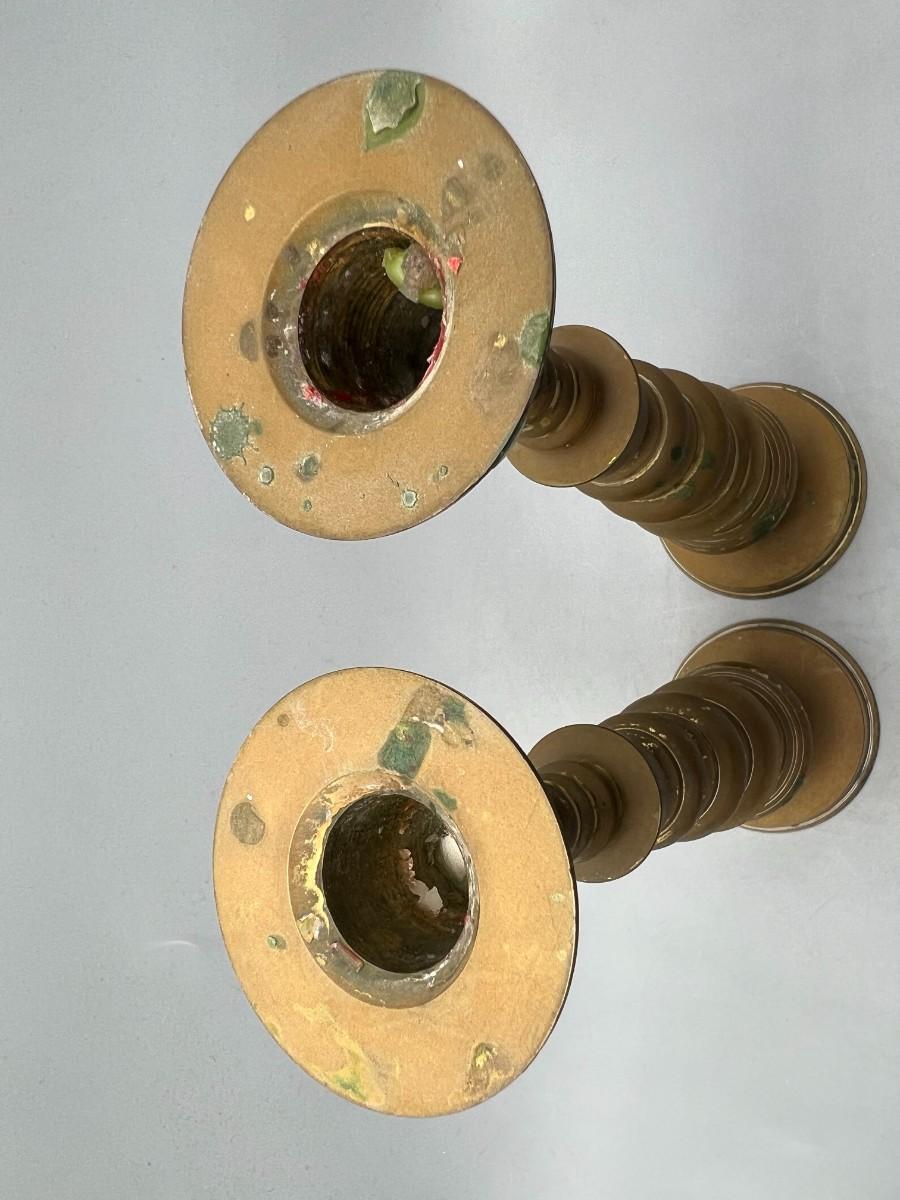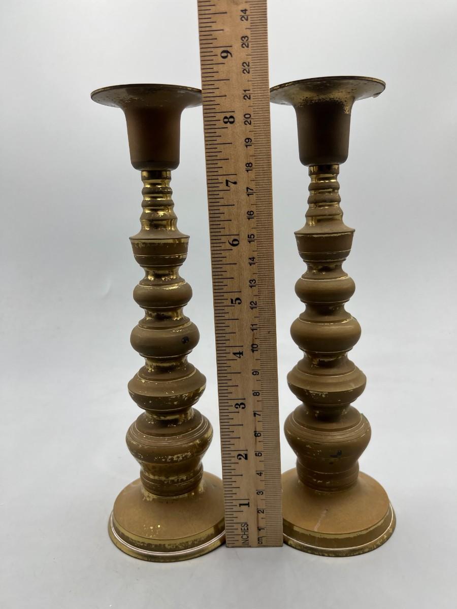 Pair of Vintage Brass Candlestick Holders. About 8" tall. Vintage condition.