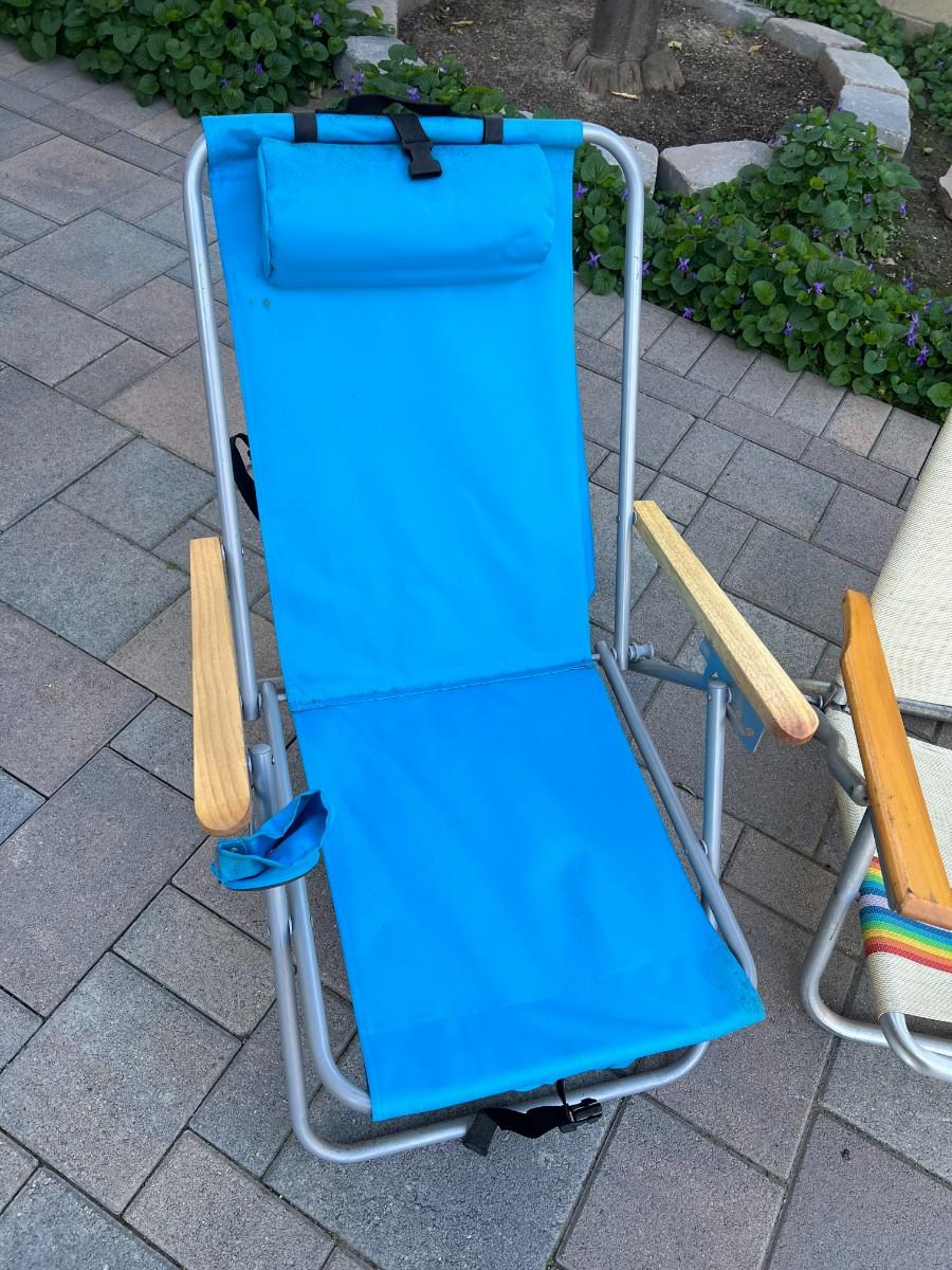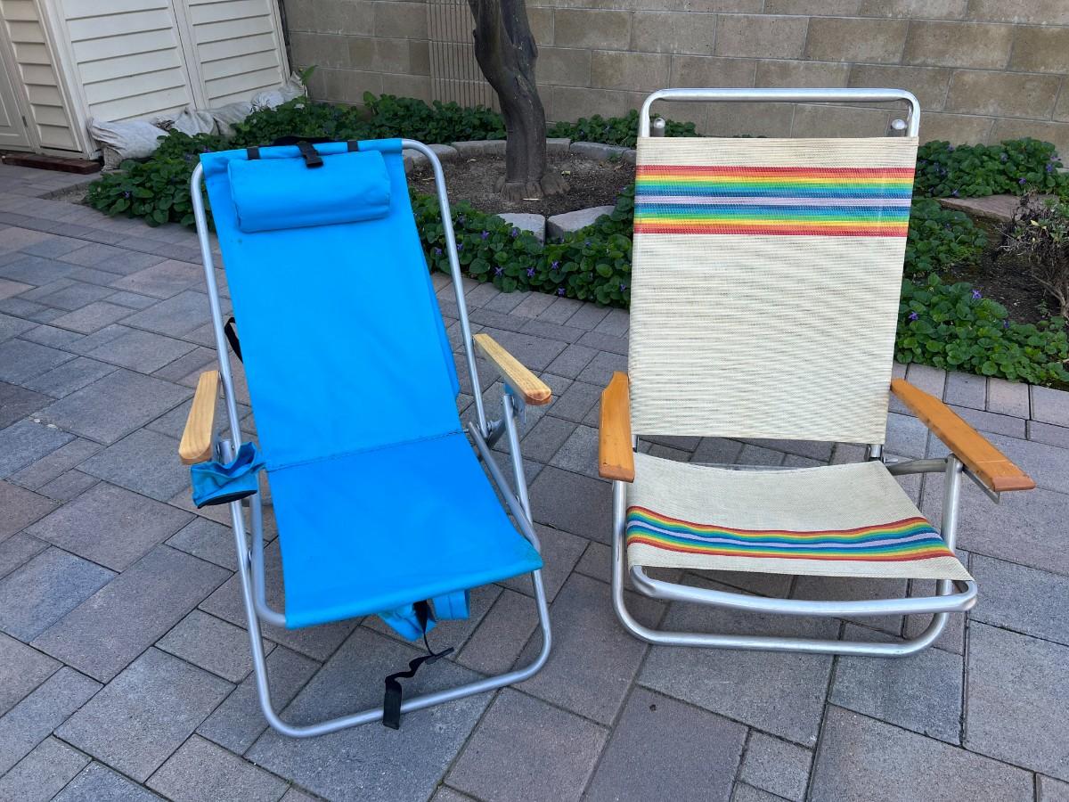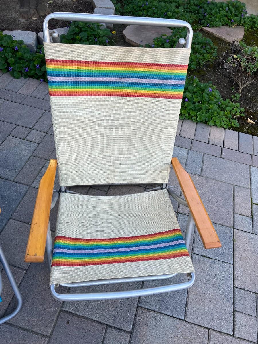 Pair of Retro Sunbathing Beach Lounge Folding Chairs