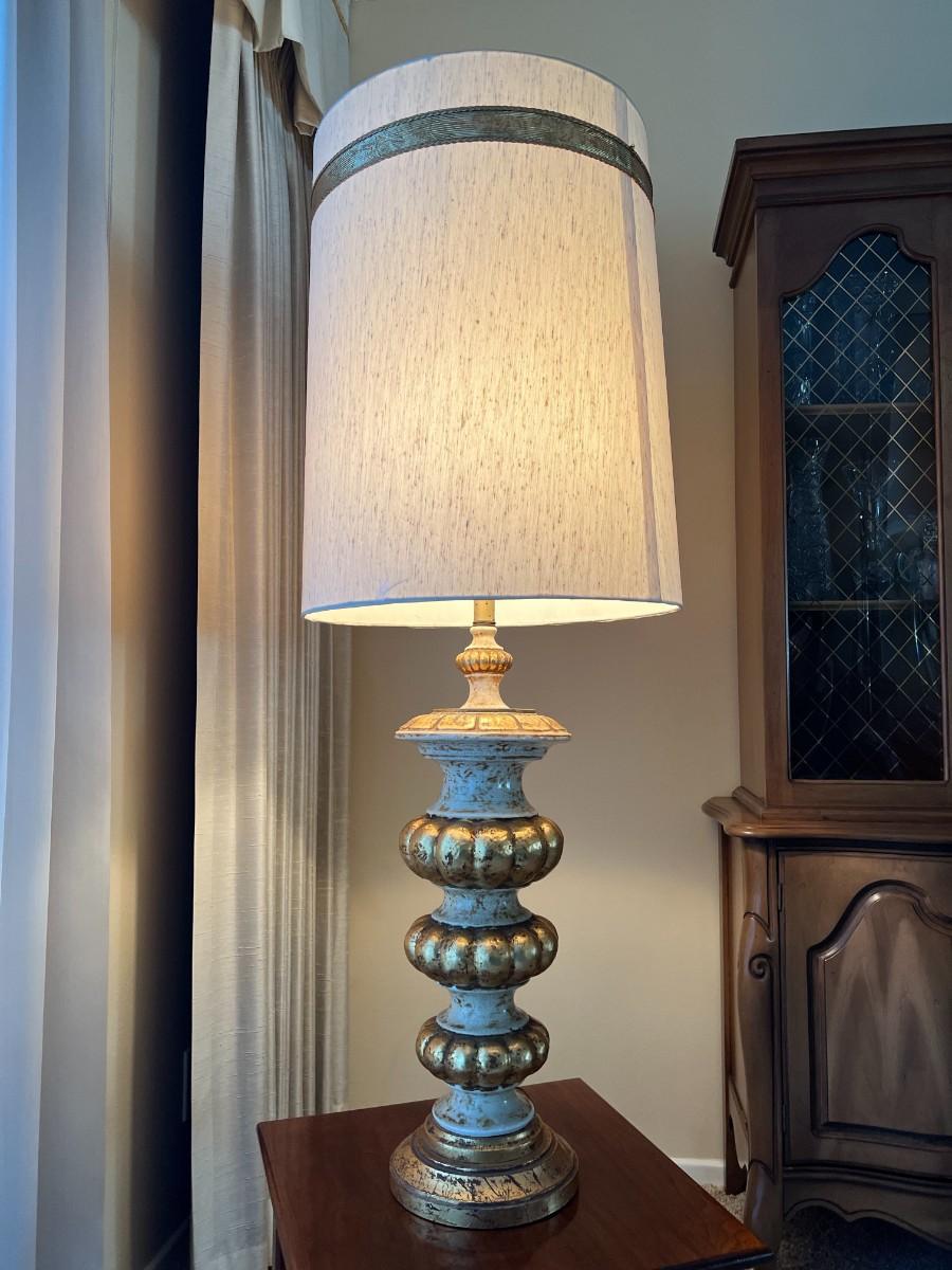 Vintage Large Modern Mid Century Hollywood Regency Style Lamp with Large Shade