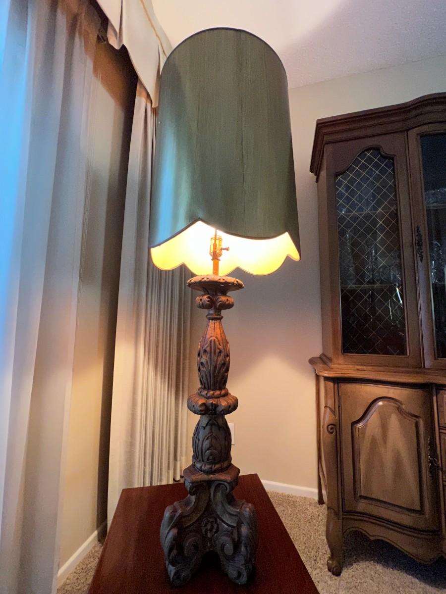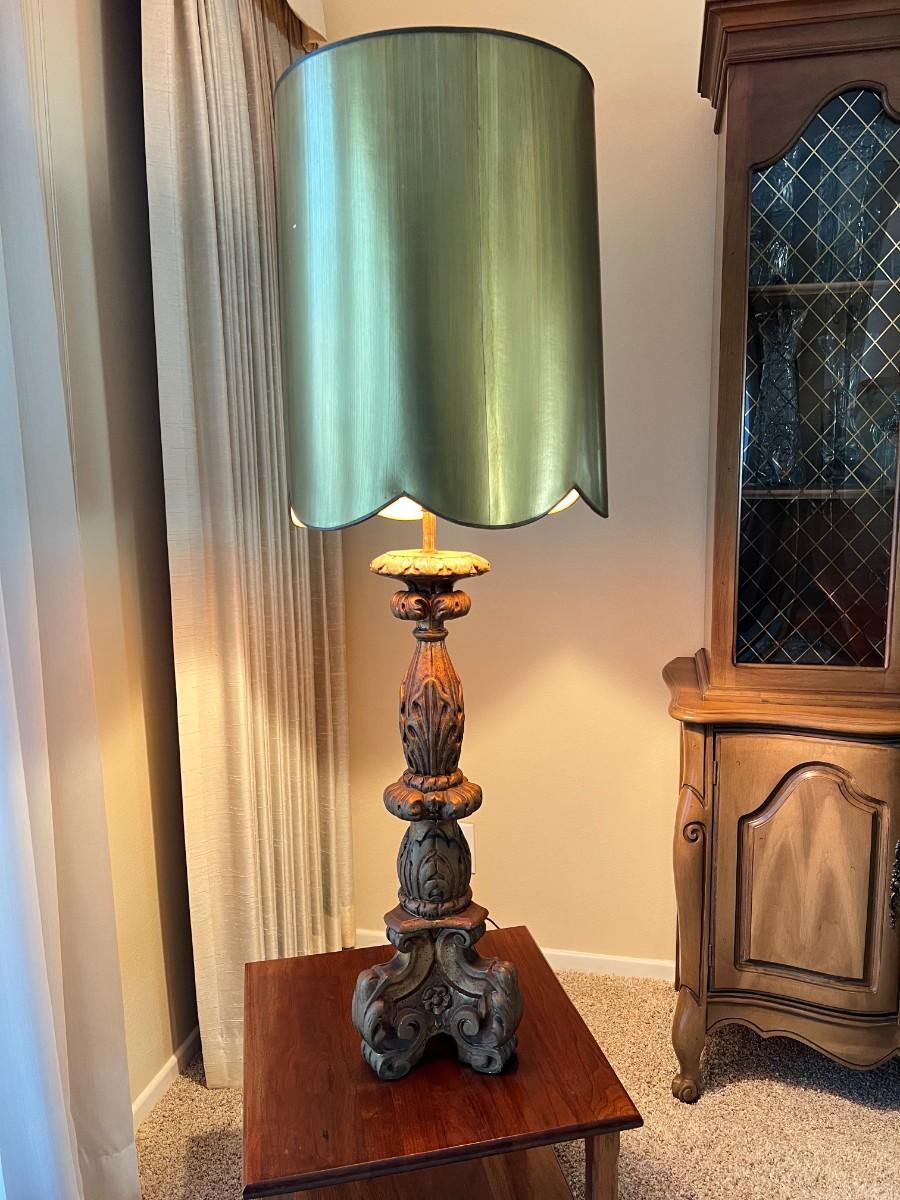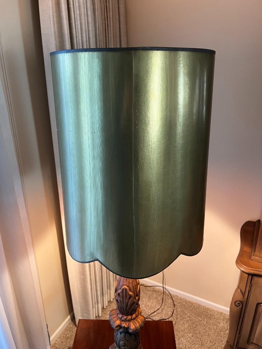 Large Vintage Cottage Core Mid Century Modern Style Lamp with Green Shade