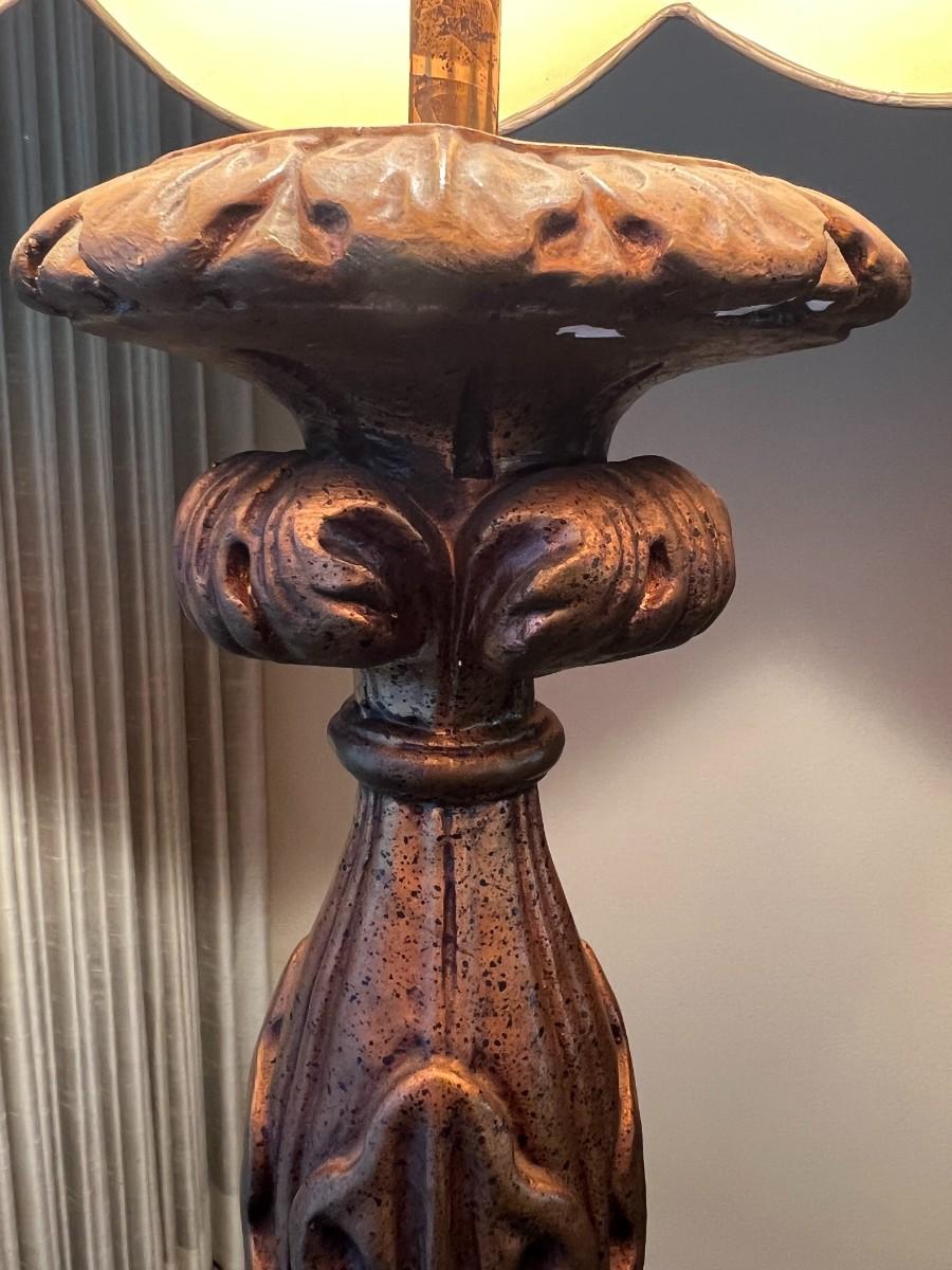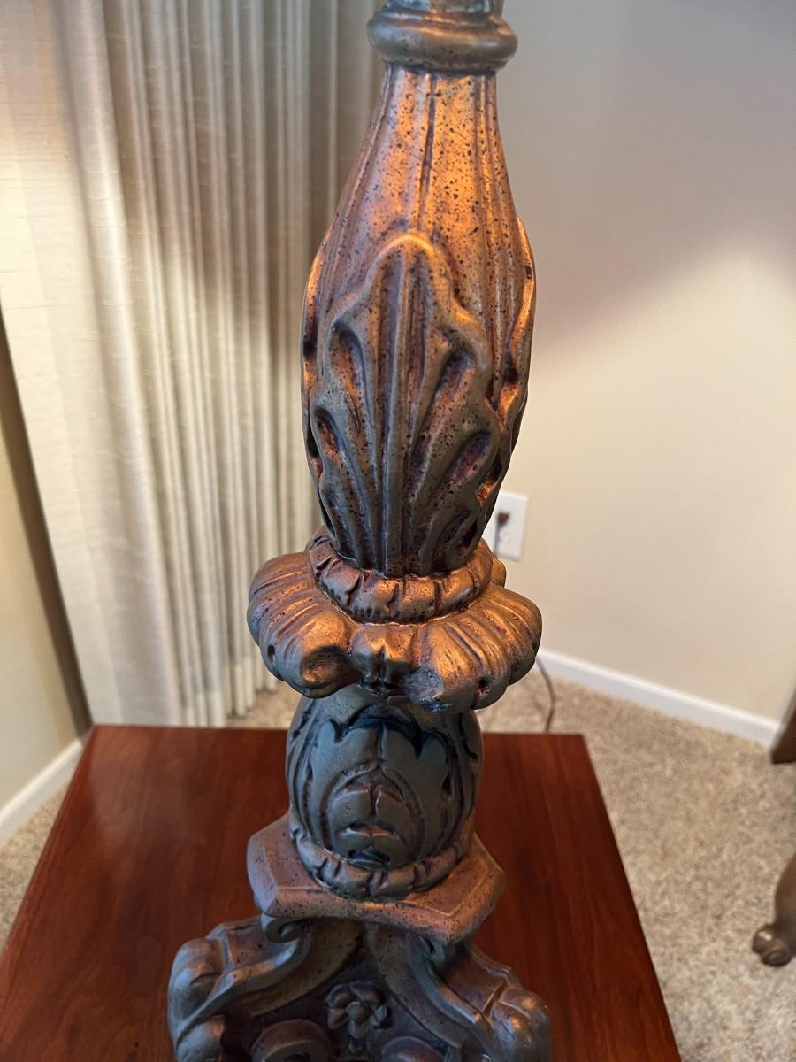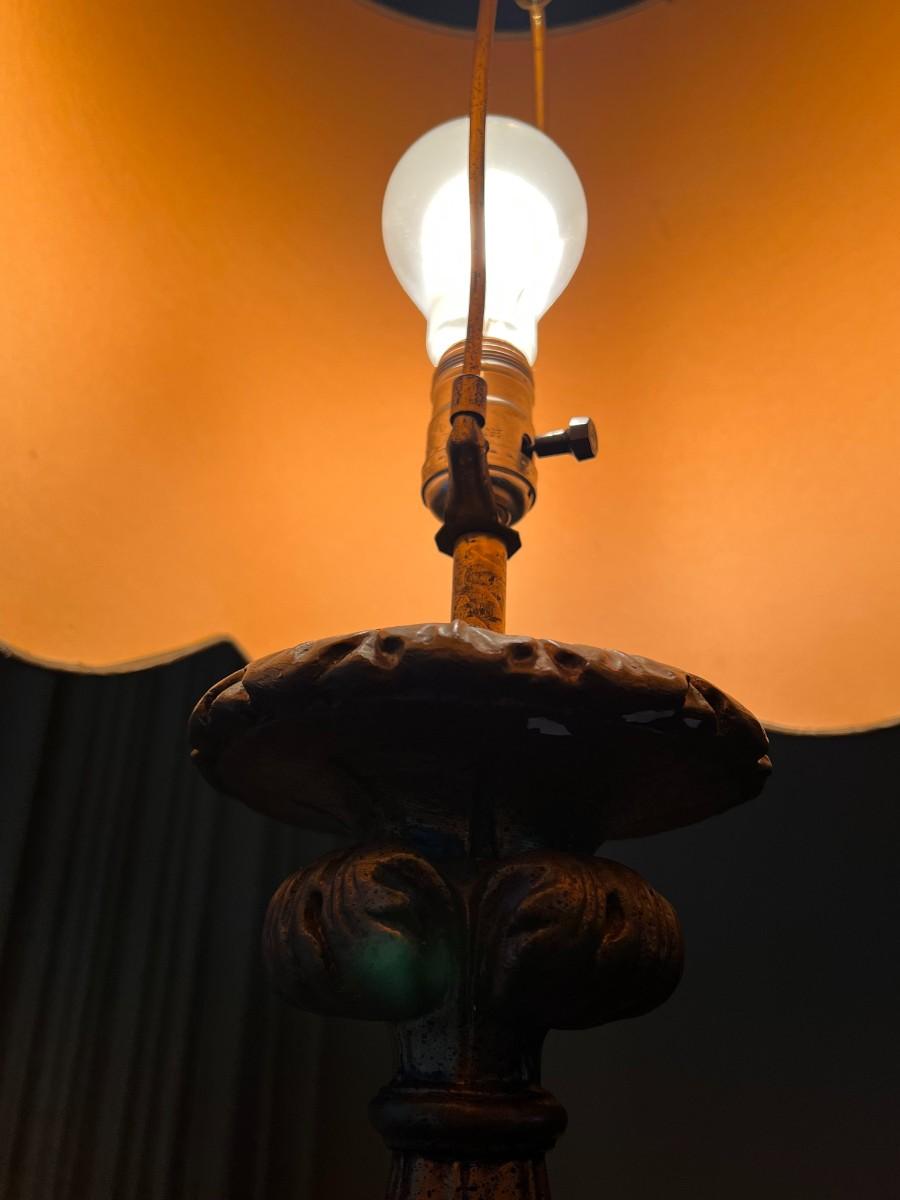 There is some light vintage wear to the shade, but there is no significant damage to the lamp and is in overall good displayable condition. Has been tested and works perfectly, check pictures for more details and for sizing.