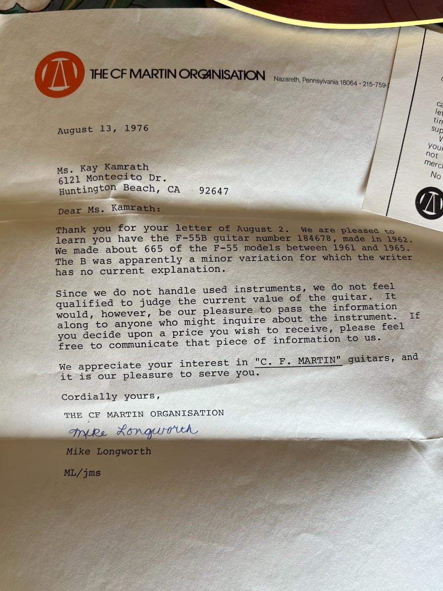 Vintage Martin & Co. F-55B Hollow Body Sunburst Electric Guitar with Case & Documented Provenance